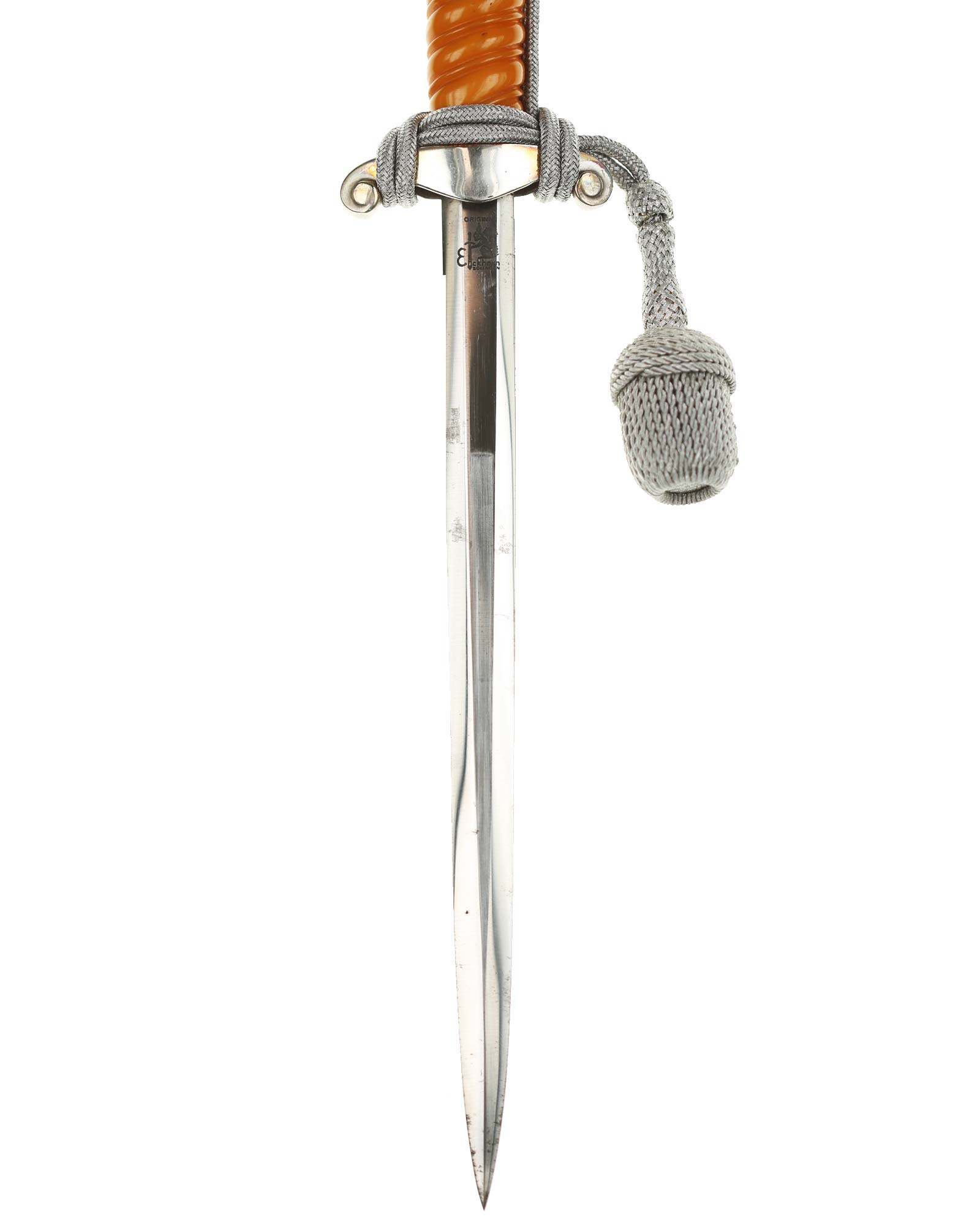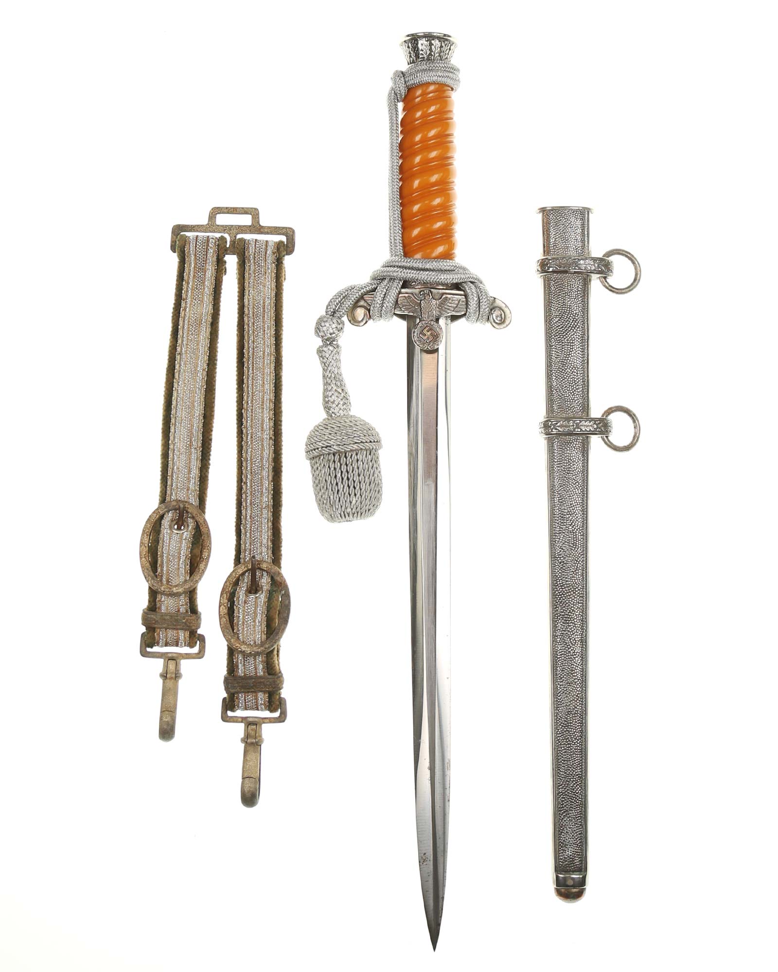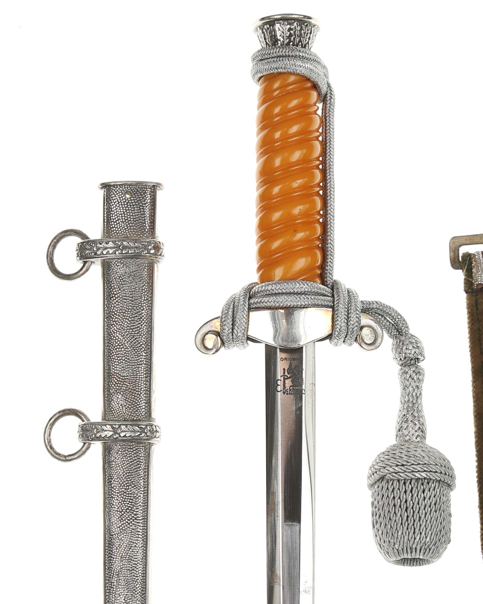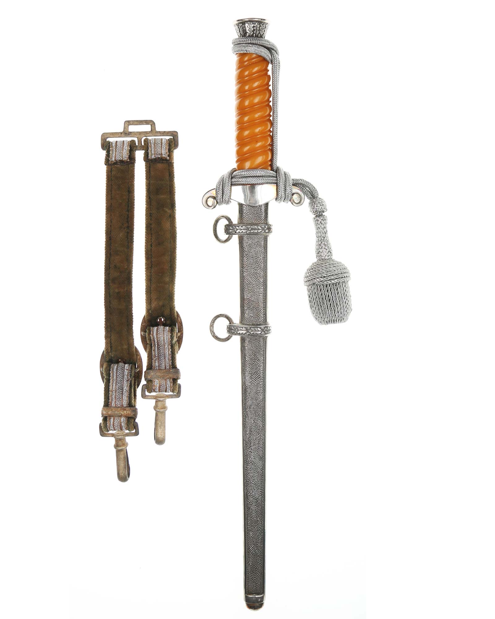 This Army Officer's Dagger is in mint condition. Model 1935. The total length is 40.0 cm. The Dagger has the maker mark on the blade: Carl Eickhorn Solingen. Dagger with Hangers and Portepee.