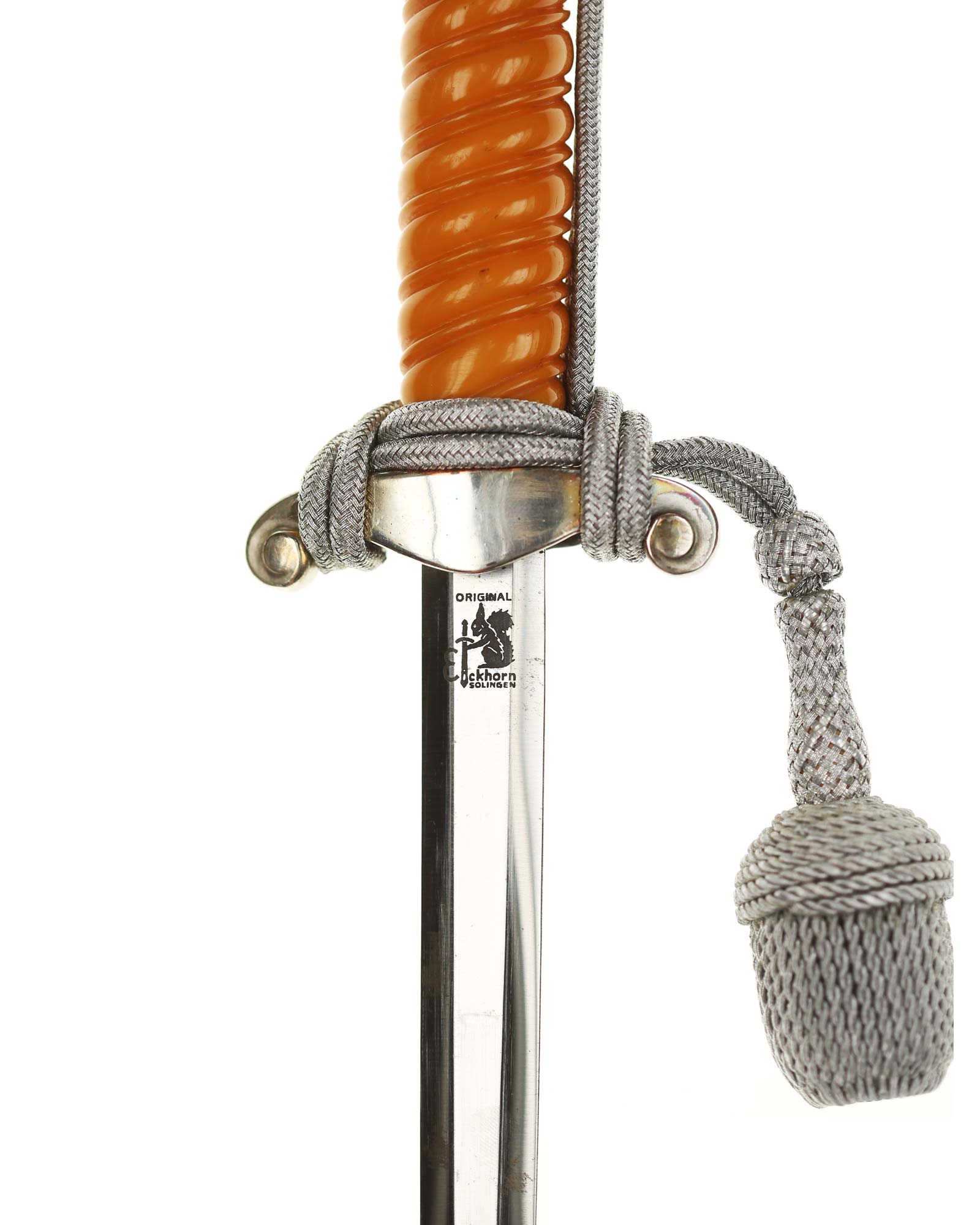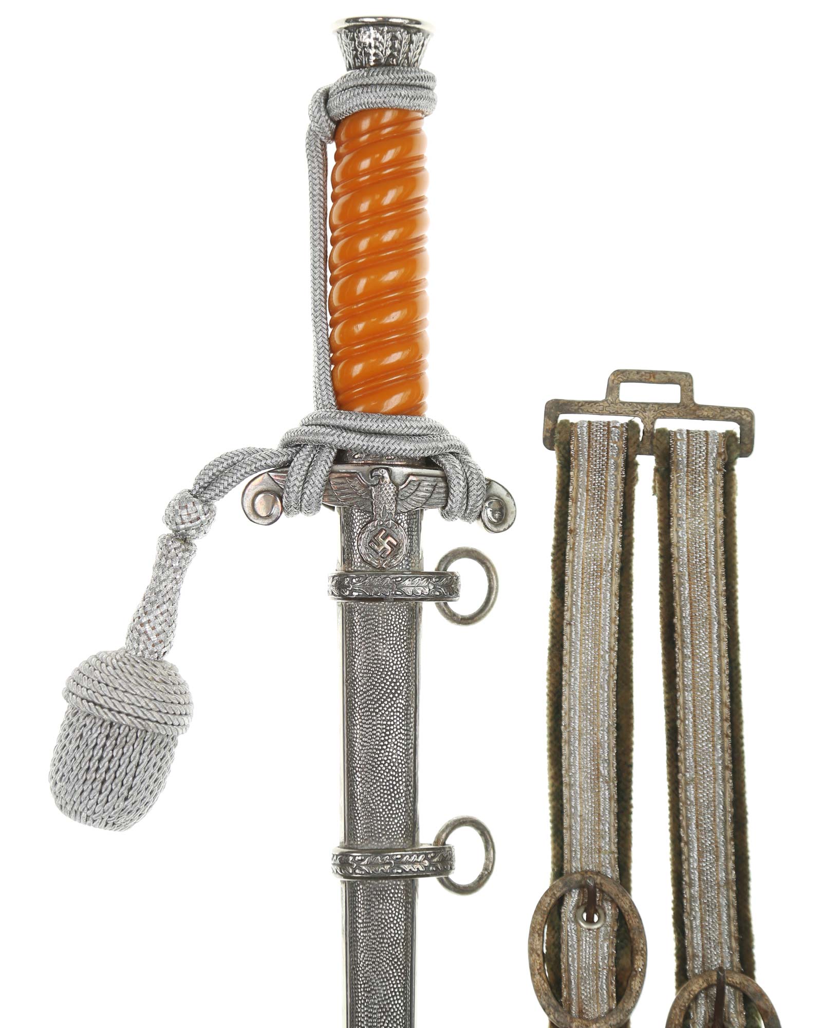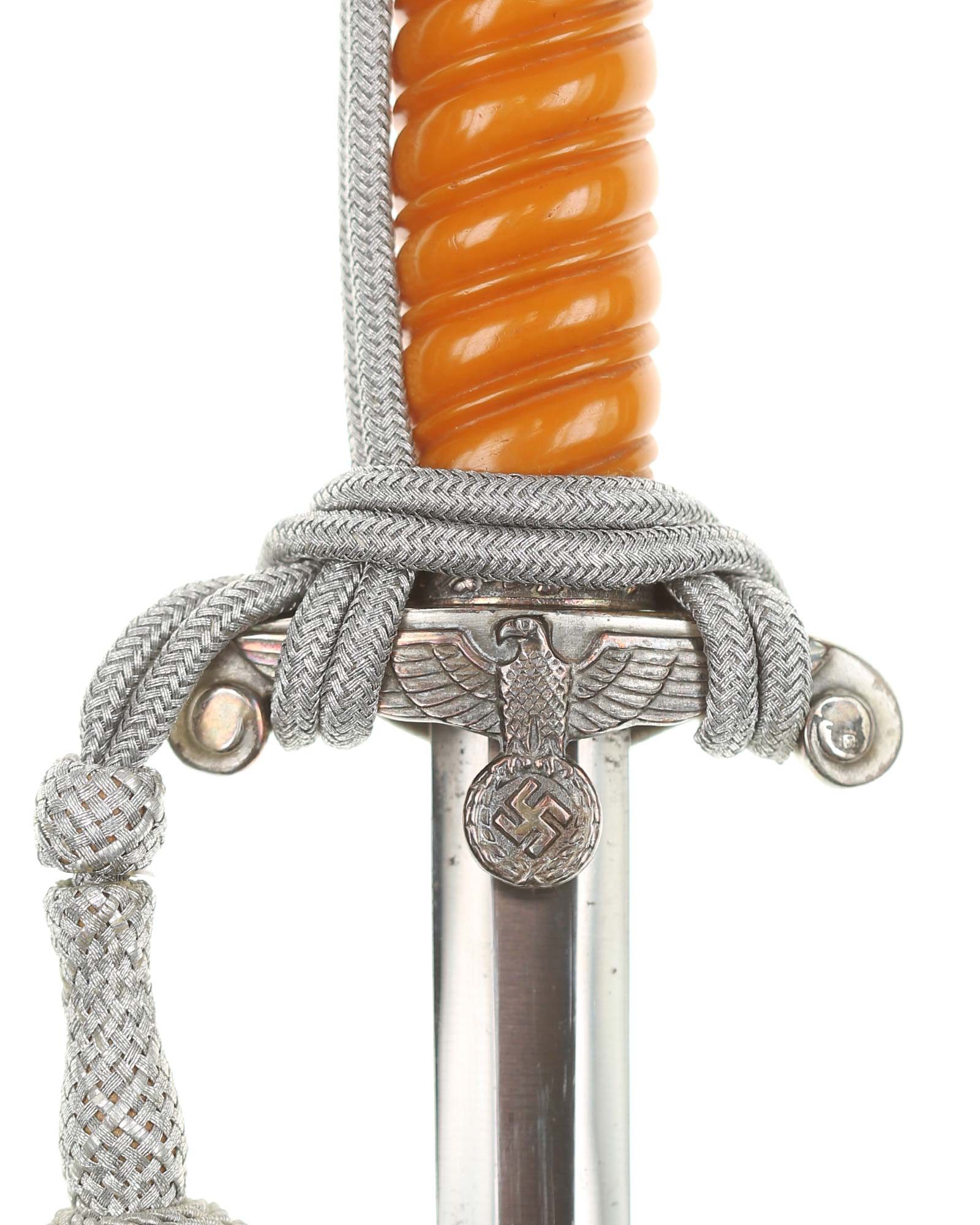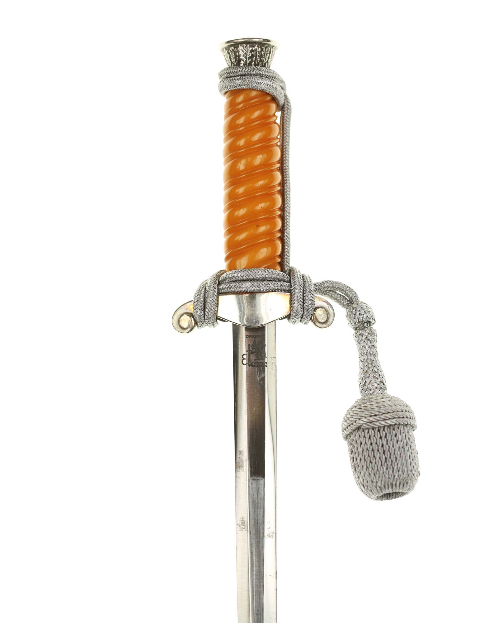 This Army Officer's Dagger is in mint condition. Model 1935. The total length is 40.0 cm. The Dagger has the maker mark on the blade: Carl Eickhorn Solingen. Dagger with Hangers and Portepee.