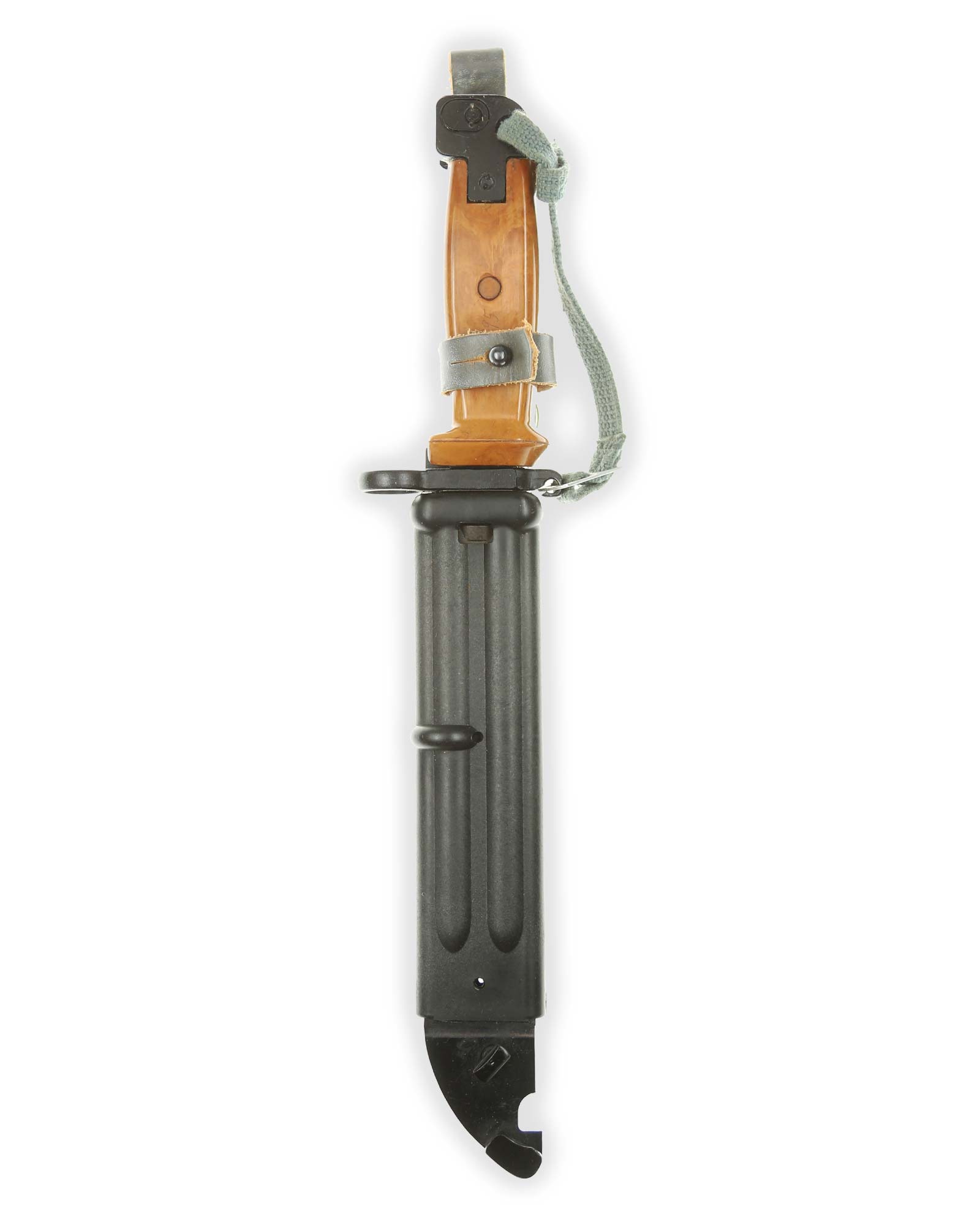 AK Bayonet type 6Ch4 (brown) with scabbard. Overall length 33.2 cm. Single-edged blade. The bayonet is marked (#226995). Total weight 471 g. Overall length: 332 mm. Condition Near Mint.