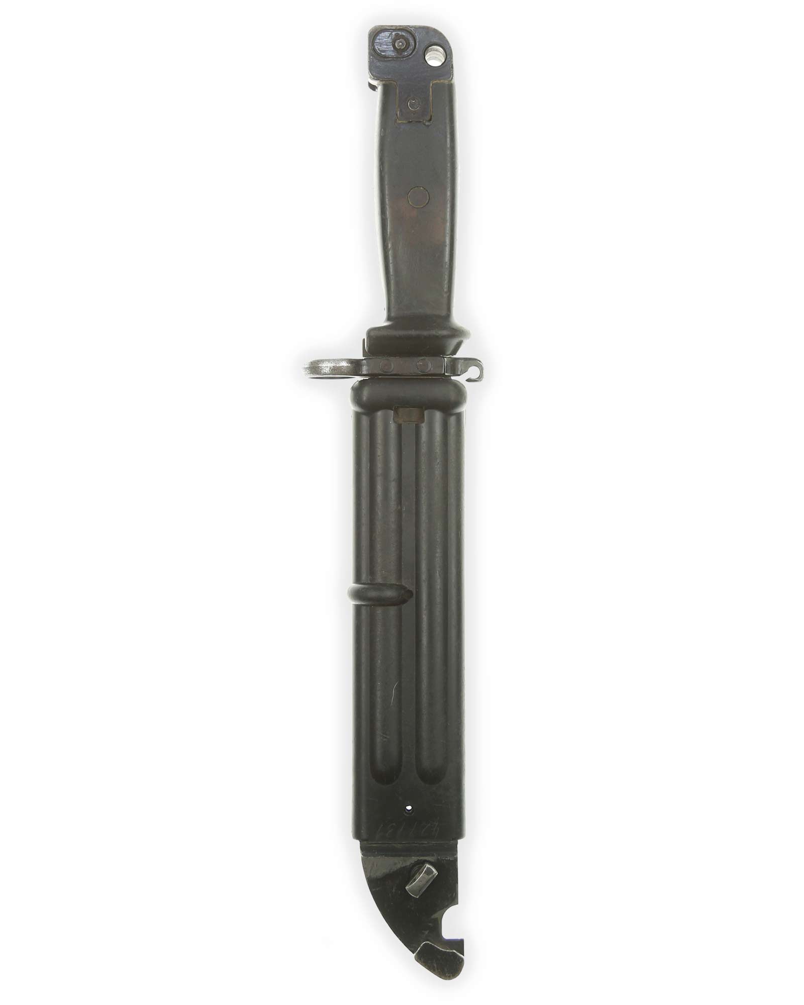 AK Bayonet type 6Ch4 (black) with scabbard. Plastic handle. Overall length 33.2 cm. Single-edged blade. The bayonet is marked (#427731). Total weight 415 g. Overall length: 332 mm. Condition EXC+.
