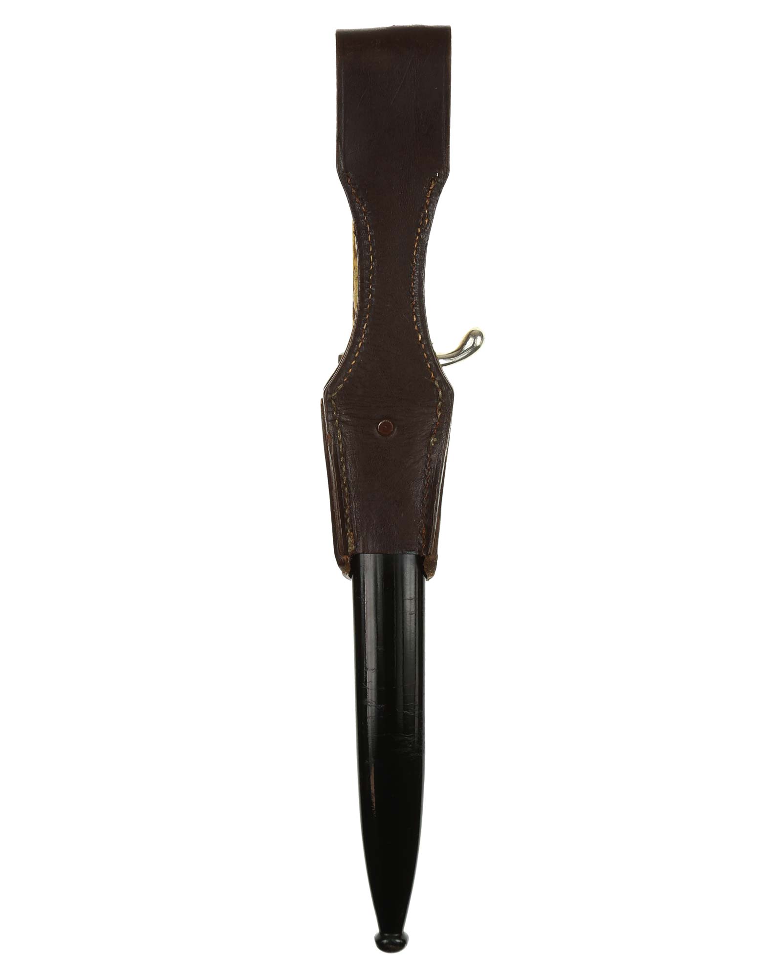 Scabbard: The scabbard is straight throughout. The paint is still excellent and nearly 100% intact, with the original factory brightness. The attached patent leather frog is in very nice condition, showing only mild attic crazing.