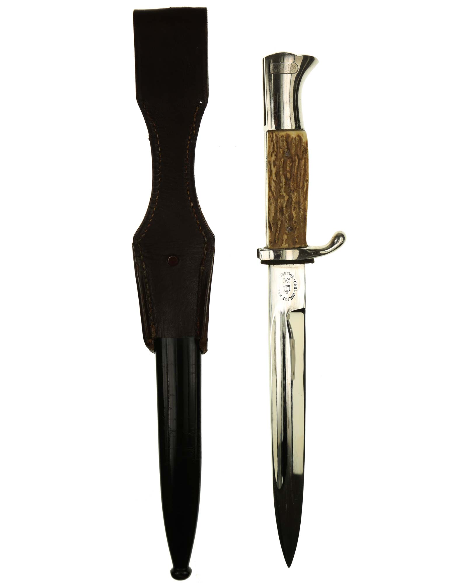Stag Gripped Short Bayonet by Carl Julius Krebs Solingen