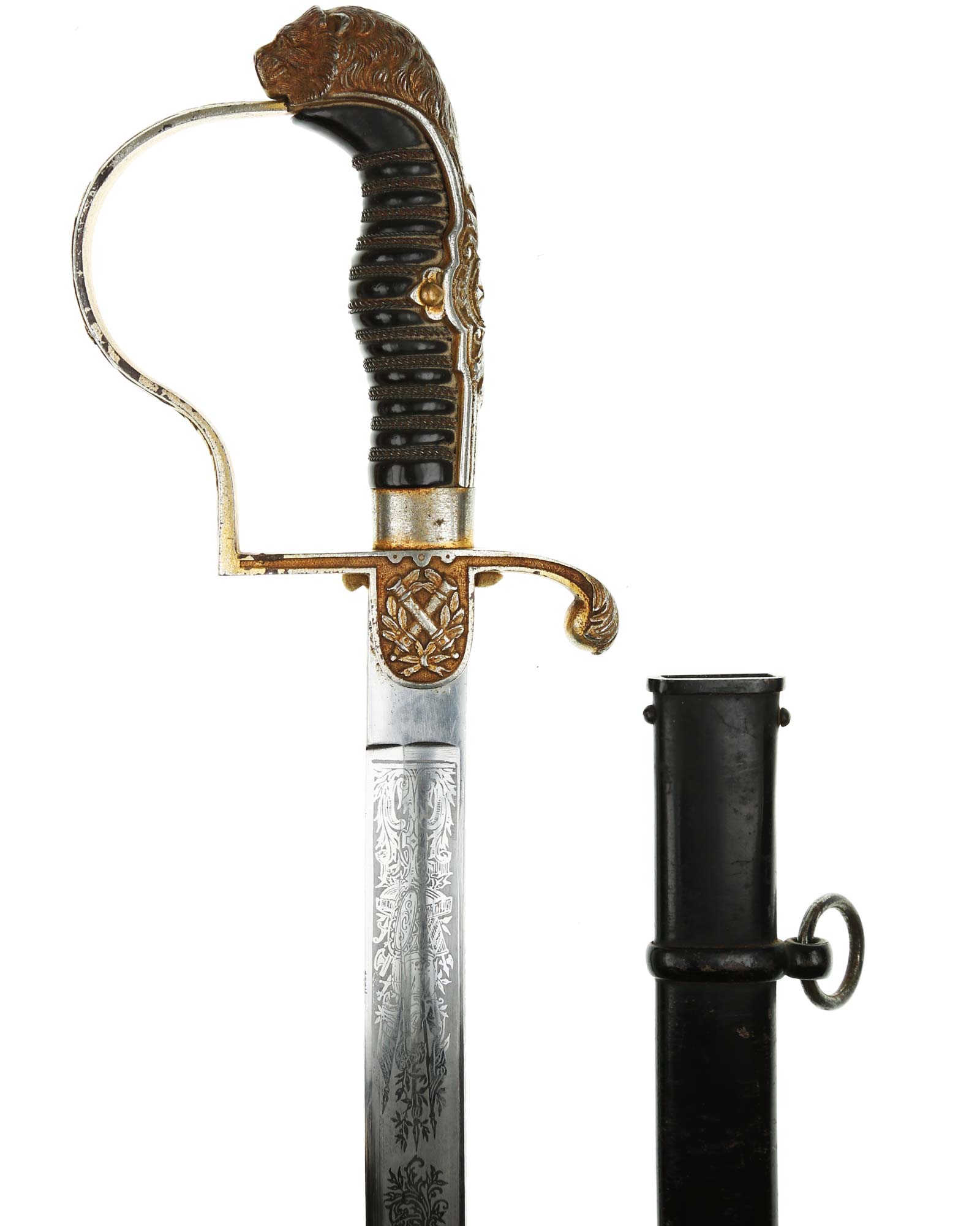 German Lion Head of the Prussian artillery Officers Sword by Ernst Pack Solingen