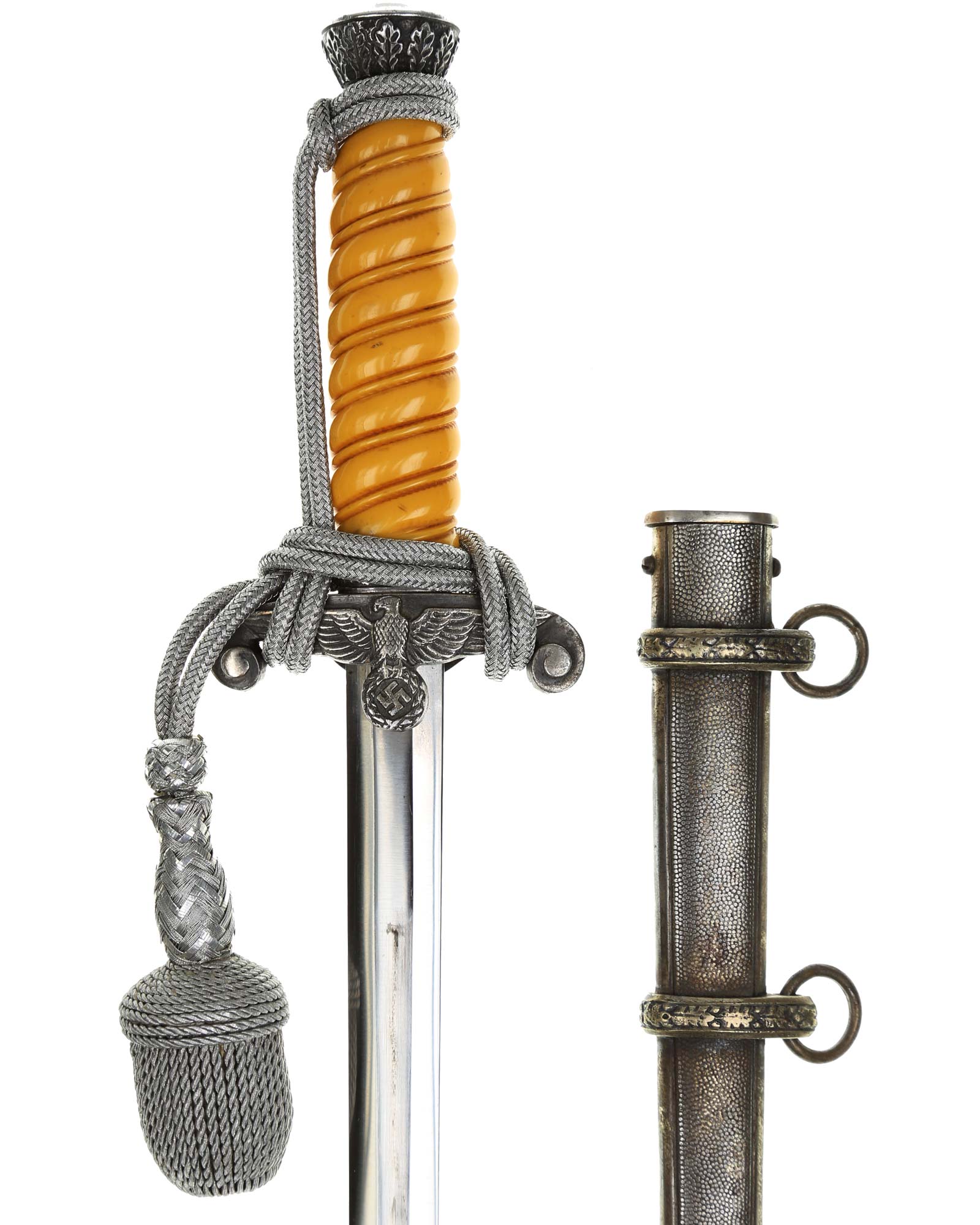 This Army Officer's Dagger is in EXC++ condition with Hangers and Portepee. Model 1935. The total length is 39.8 cm. The Dagger has the maker mark on the blade: Ernst Pack & Söhne Solingen.