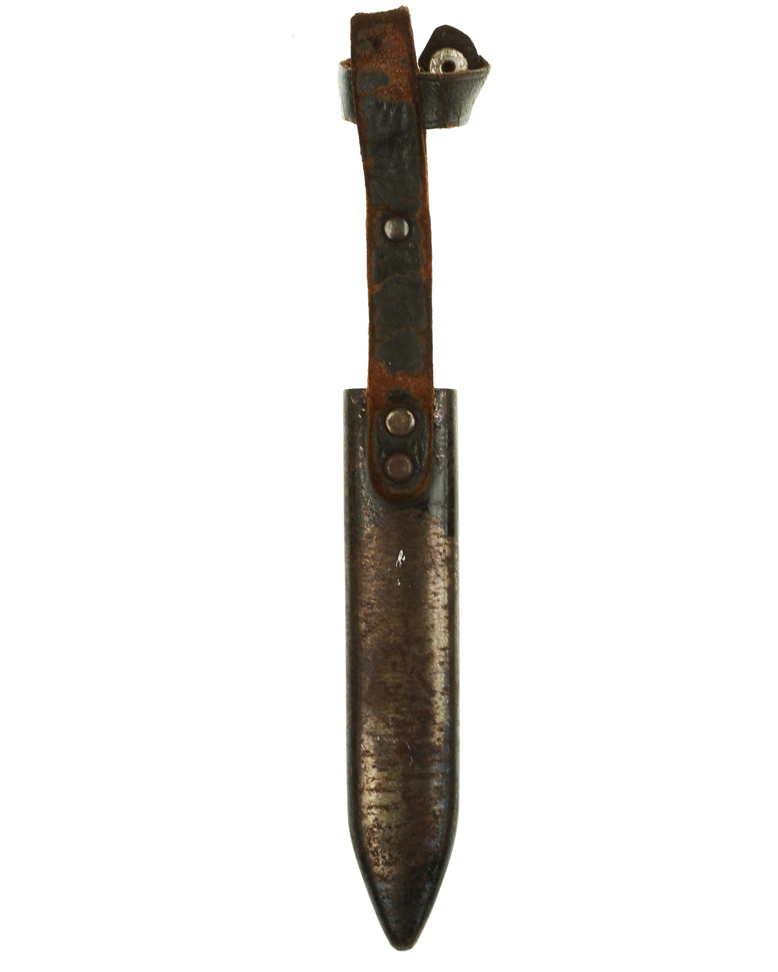 Scabbard: The scabbard shell has good, original paint. This paint has a few mild age spots spread evenly throughout the surface. Attached to the scabbard is a leather hanger.