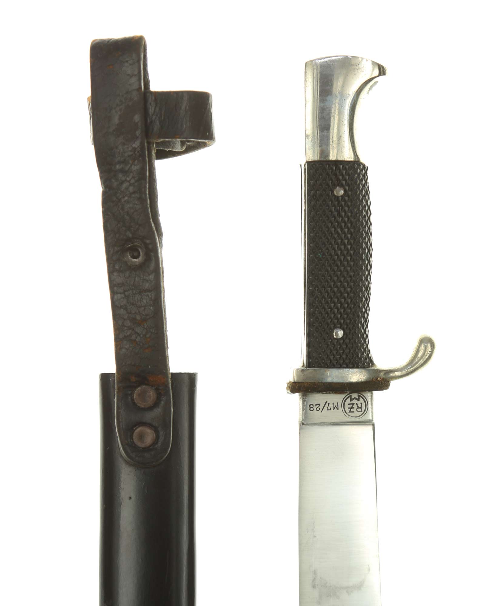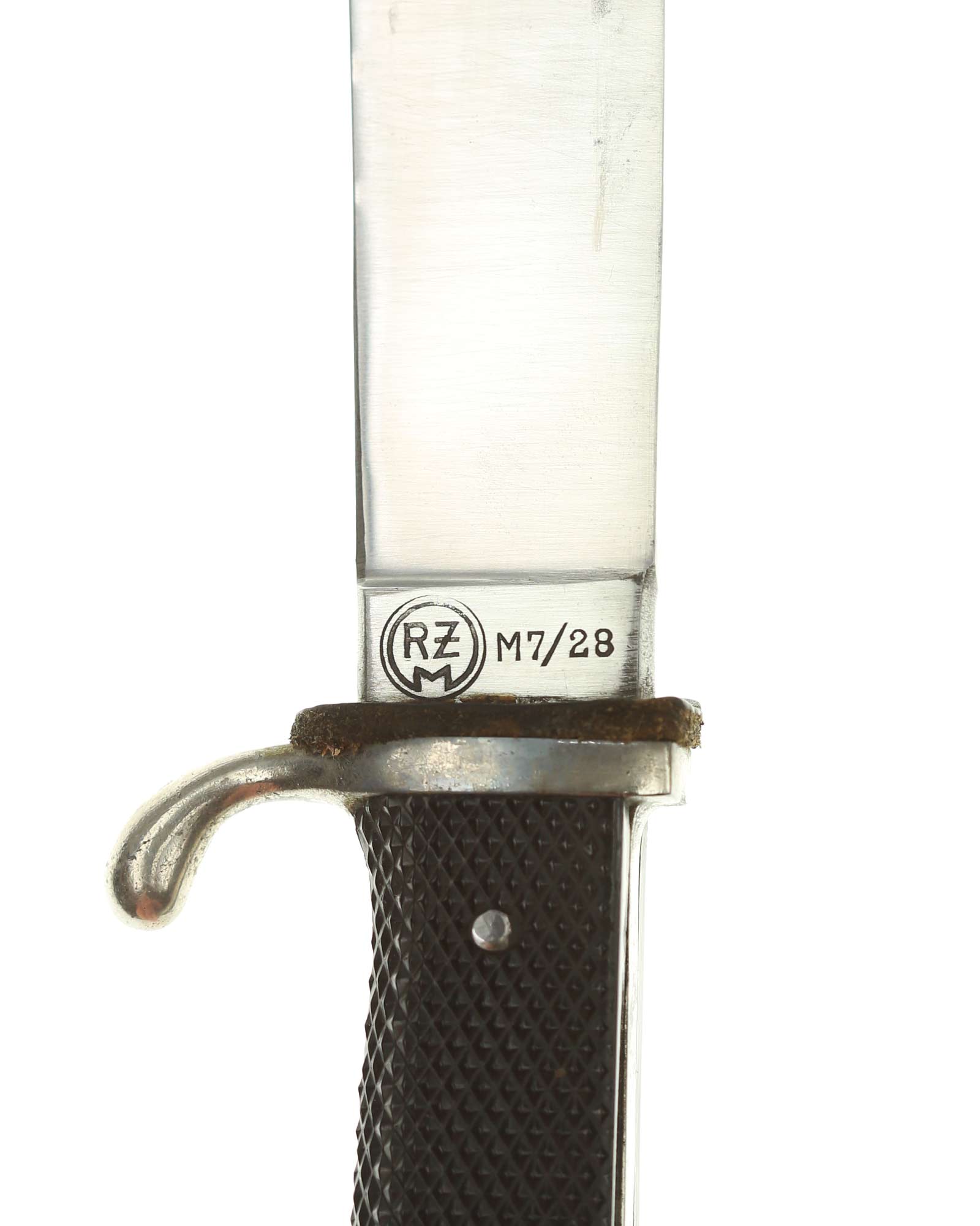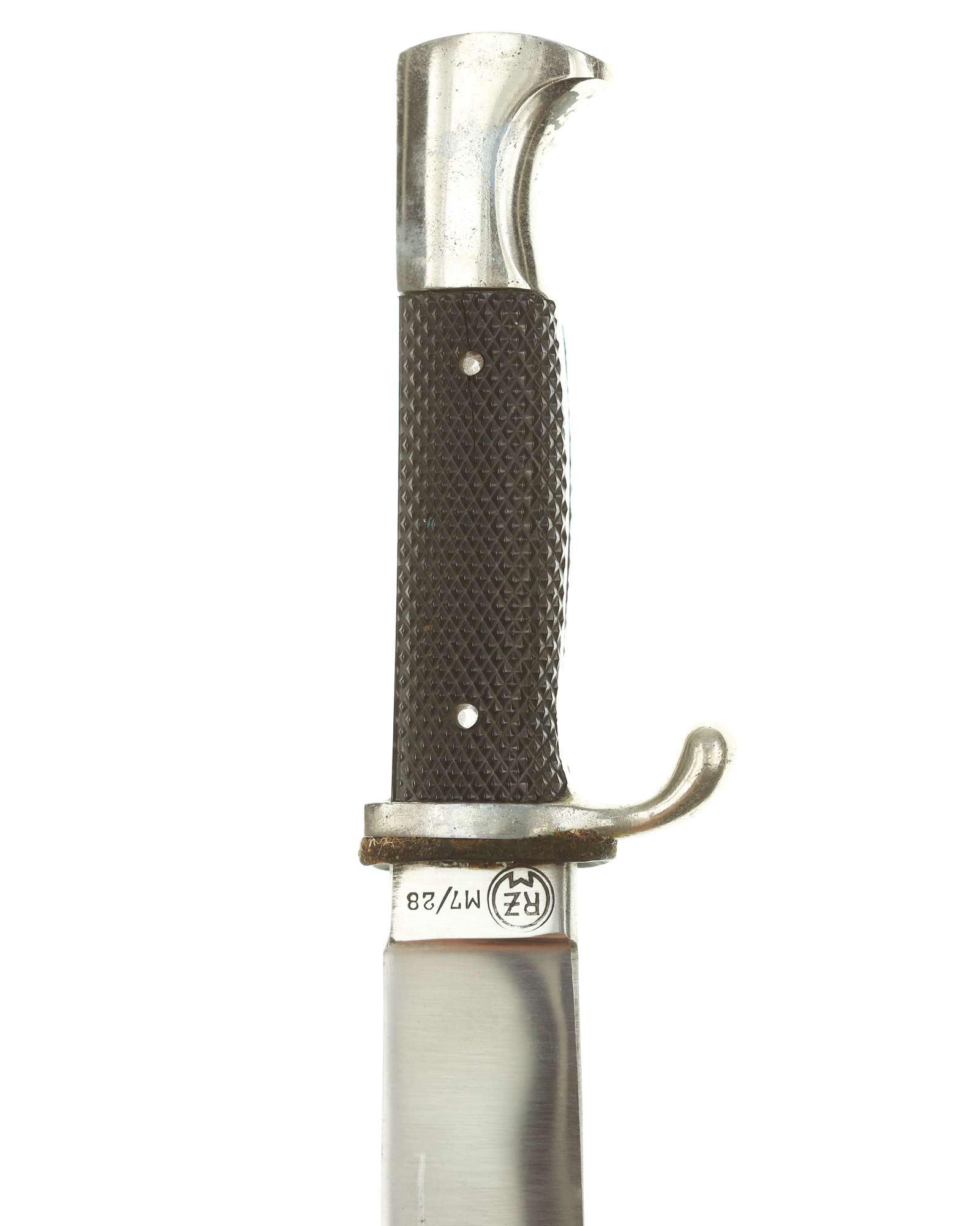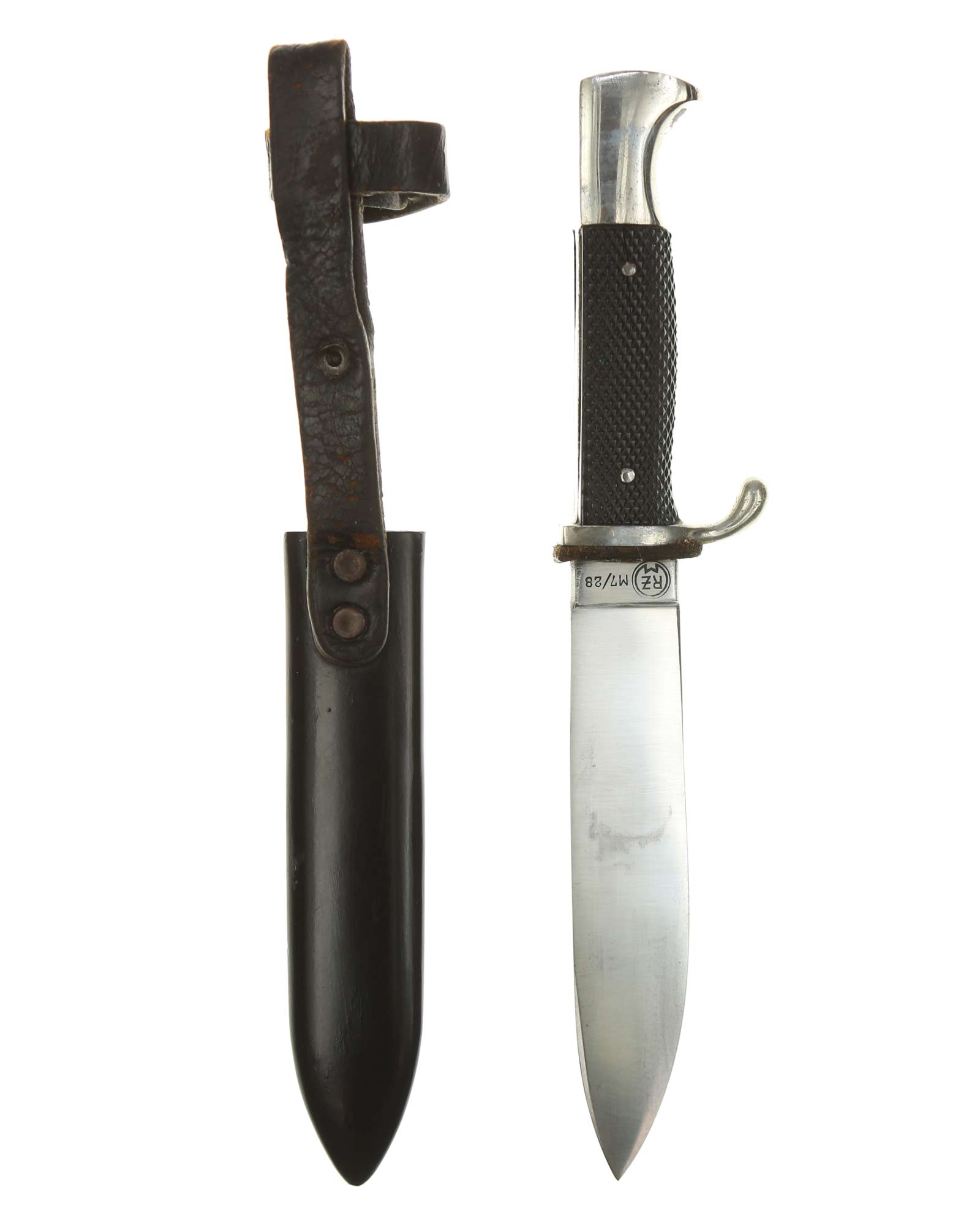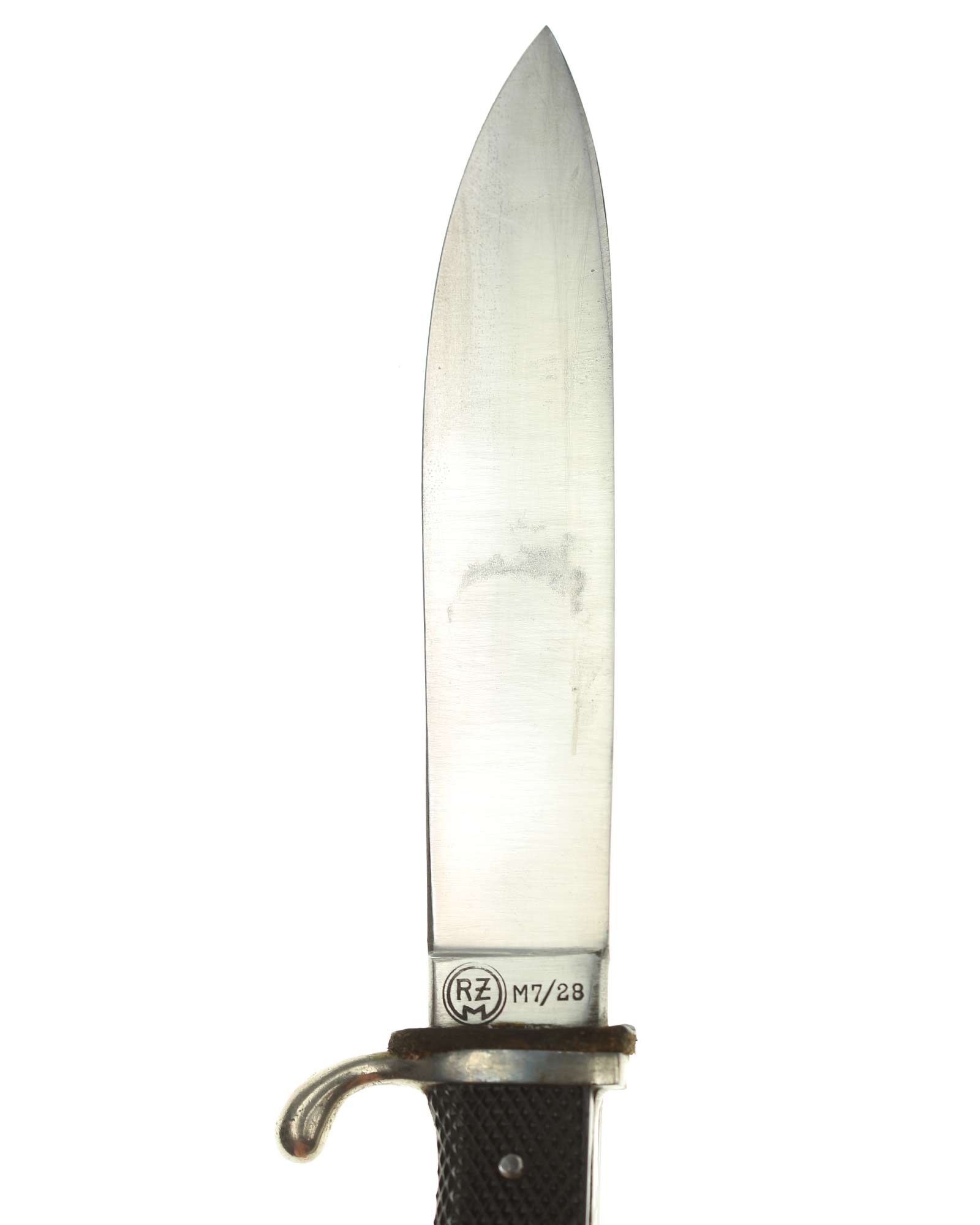Blade: The blade of this knife is a EXC+ example. This blade is the late-period type. The reverse of the blade is marked with a RZM circle and code: RZM M7/28 for Gustav Felix Solingen.