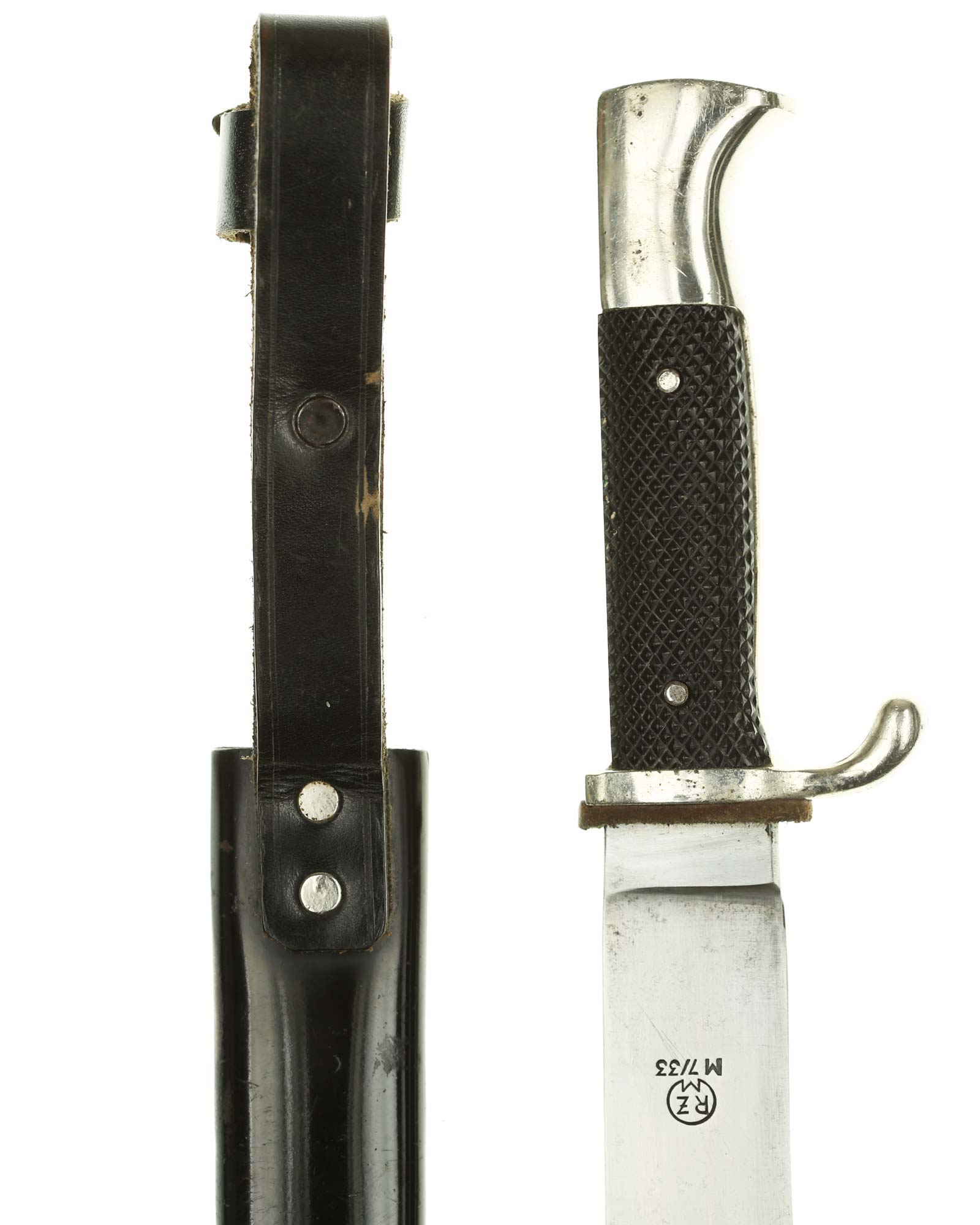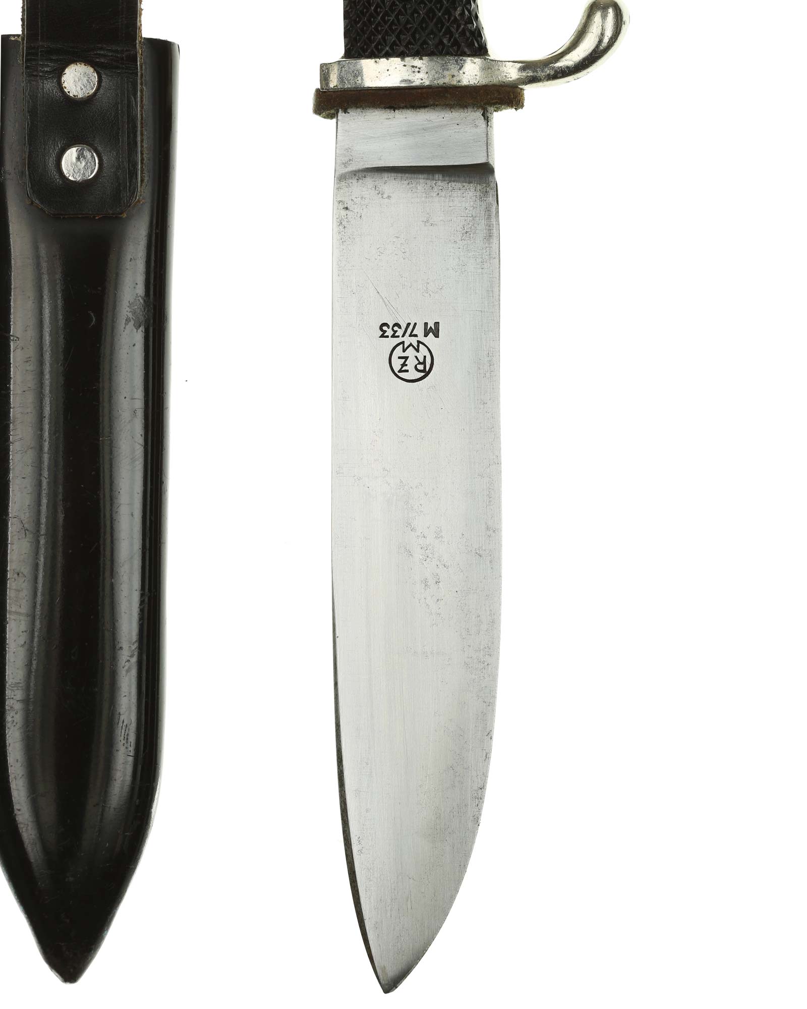 Blade: The blade of this knife is a EXC++ example. This blade is the late-period type. The reverse of the blade is marked with a RZM circle and code: RZM M7/33 for F.W. Höller Solingen.