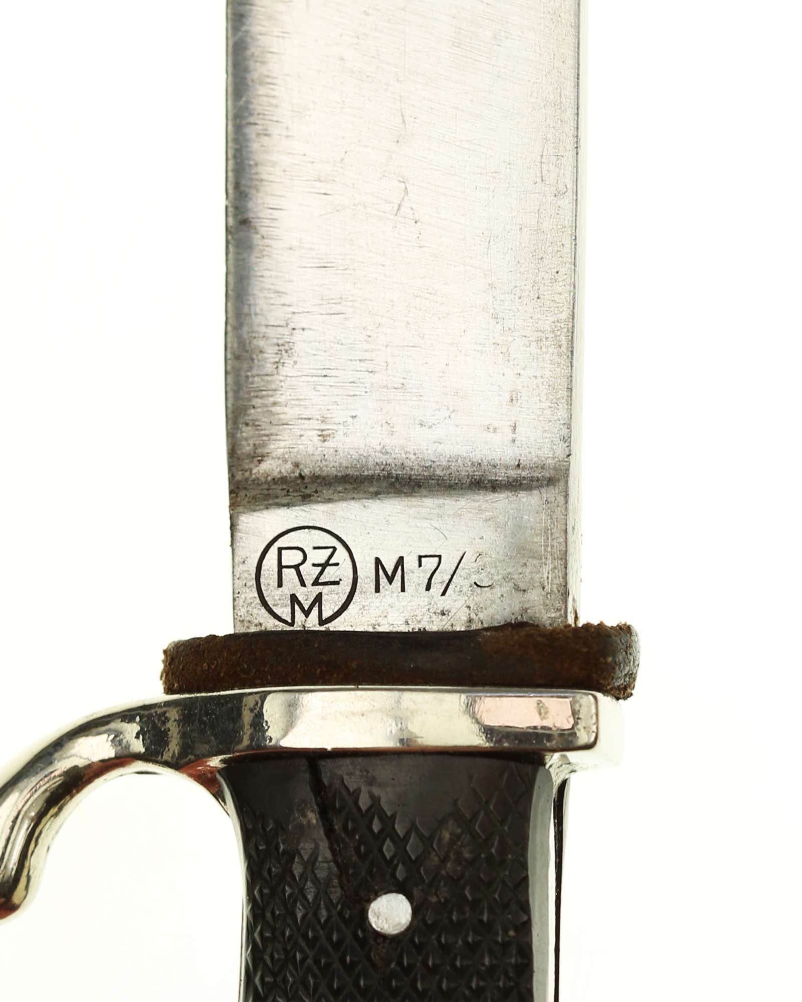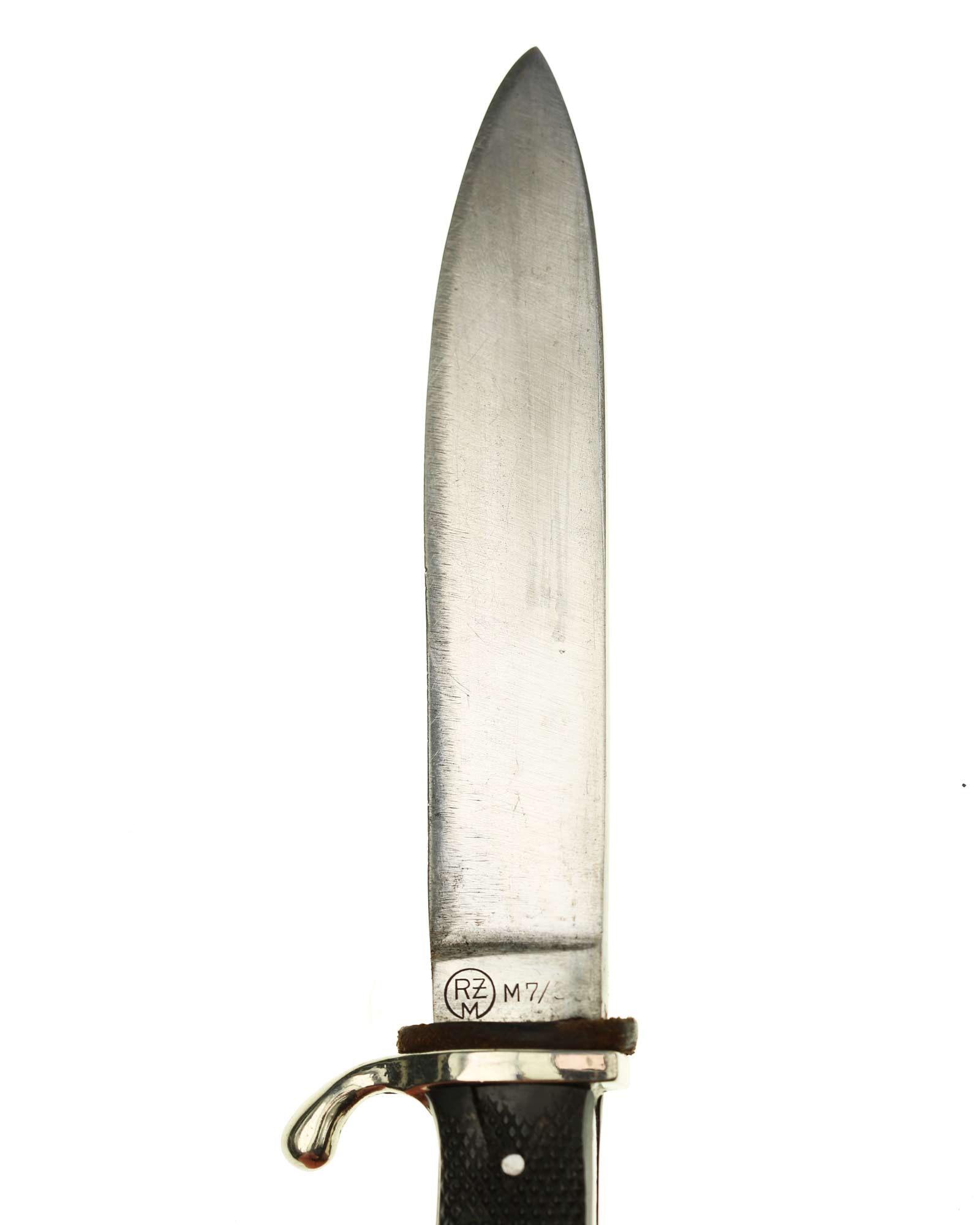 Blade: The blade of this knife is a EXC example. This blade is the late-period type. The reverse of the blade is marked with a RZM circle and code: RZM M7/34 (Jacobs C. Rudolf Solingen).