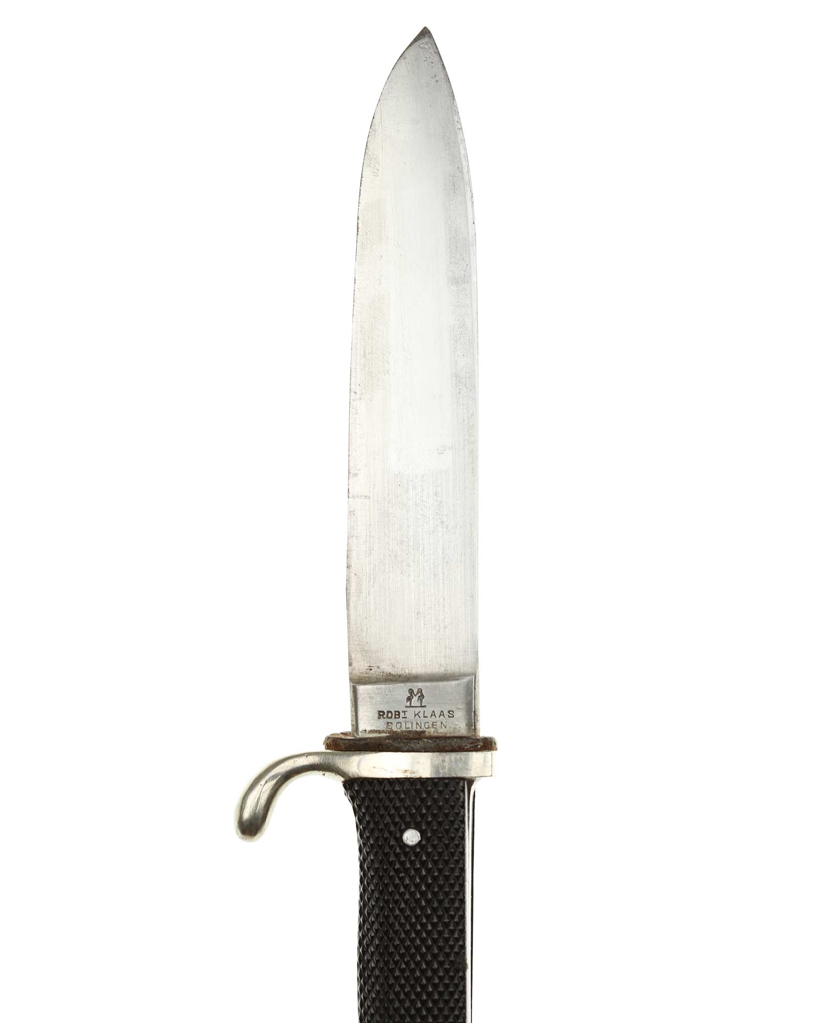 Blade: The blade of this knife is a used example. This blade is the mid-period type. The ricasso on reverse is marked with a RZM code and Maker mark: RZM M7/37, 1936 and Robert Klaas Solingen.