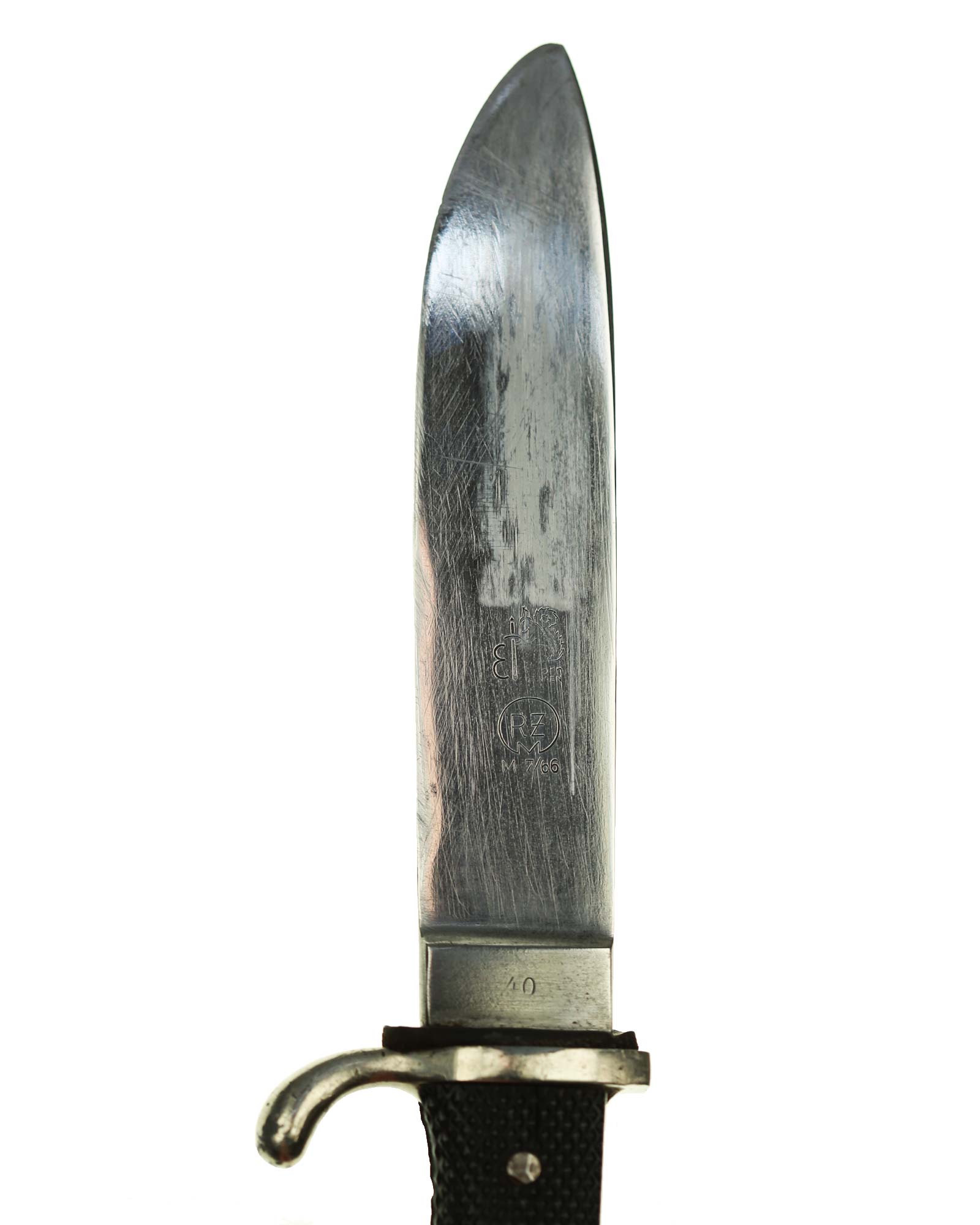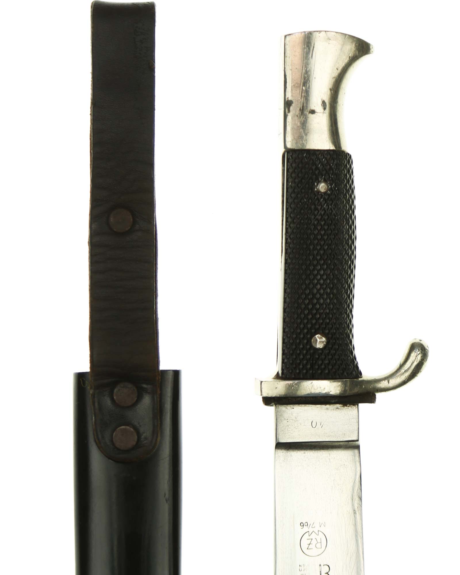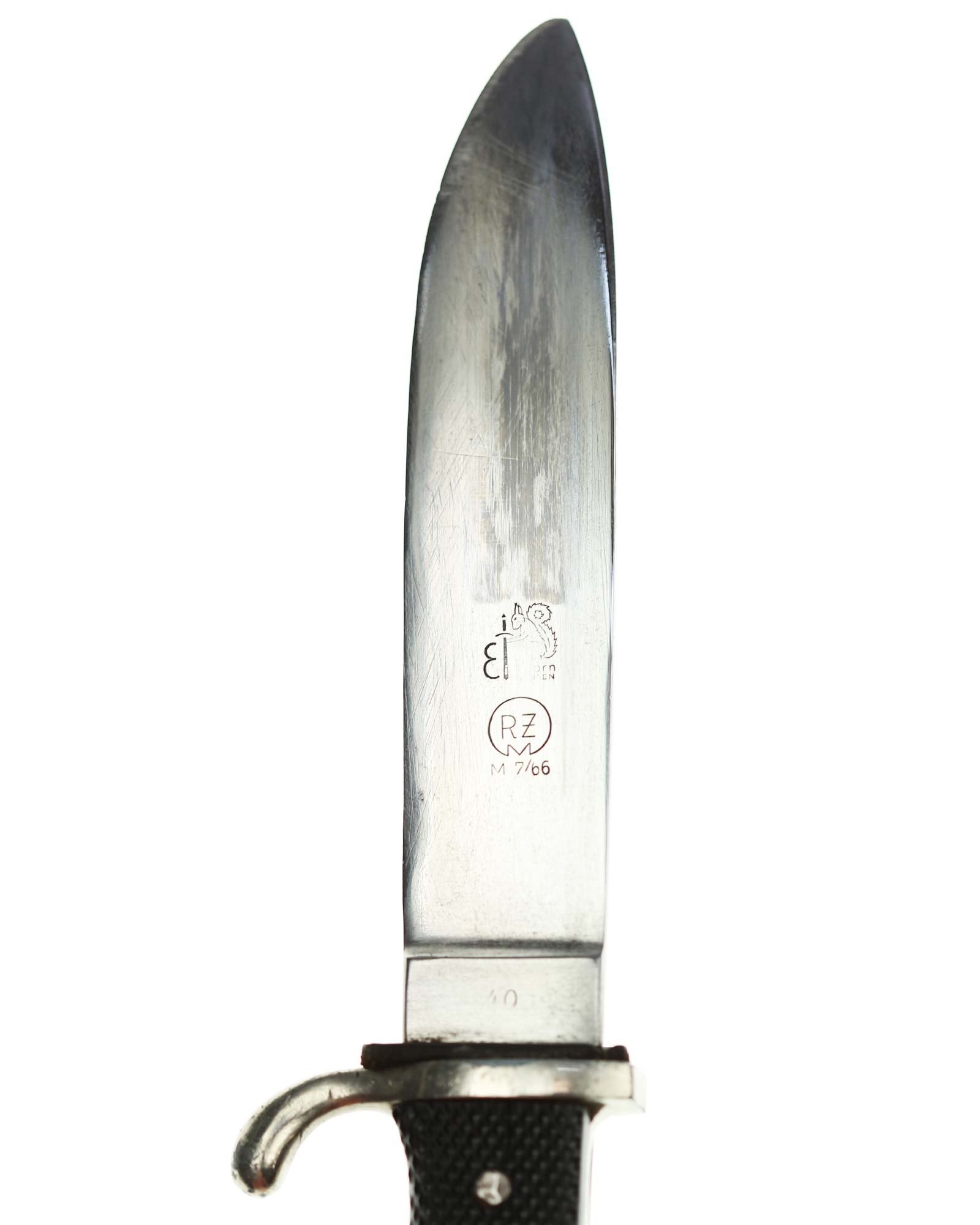 This Hitler Youth Knife is without Motto. Model 1936-1938 [Mid-period]. The total length is 25,2 cm. The Knife has the RZM maker mark on the blade: RZM M7/66 (Original Eickhorn Solingen).