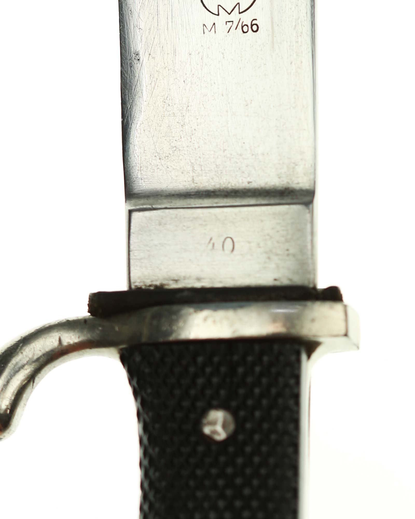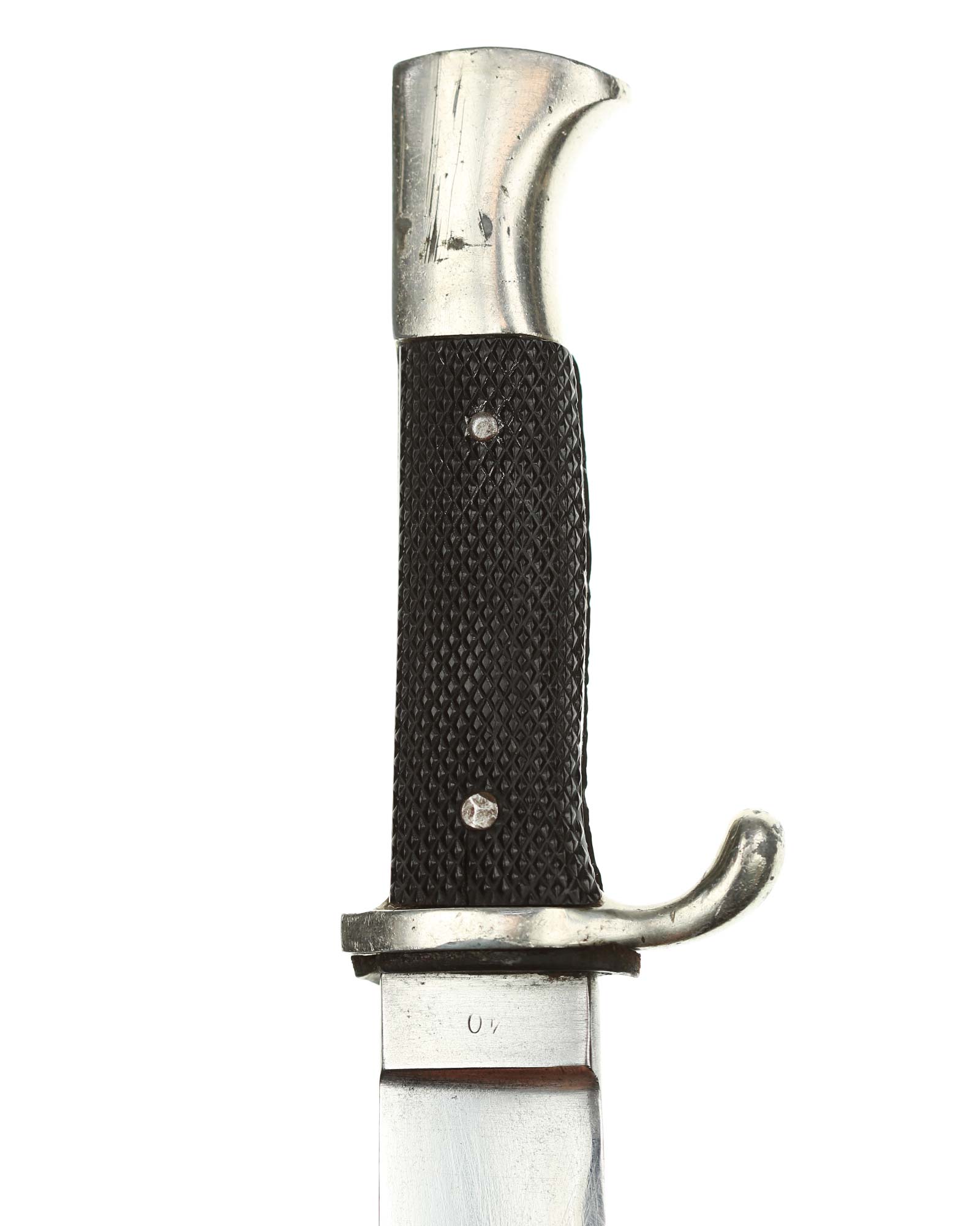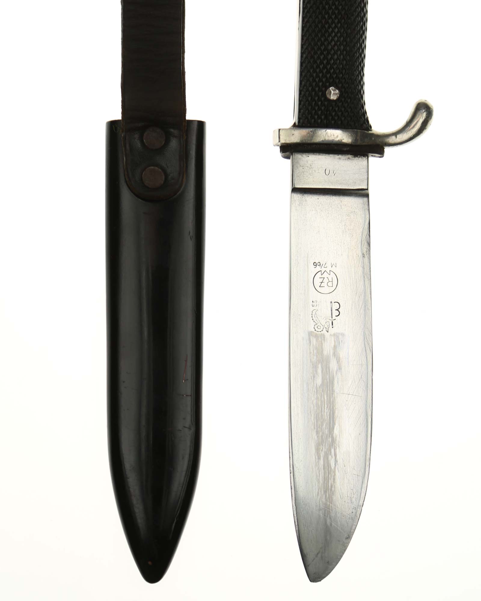 This Hitler Youth Knife is without Motto. Model 1936-1938 [Mid-period]. The total length is 25,2 cm. The Knife has the RZM maker mark on the blade: RZM M7/66 (Original Eickhorn Solingen).