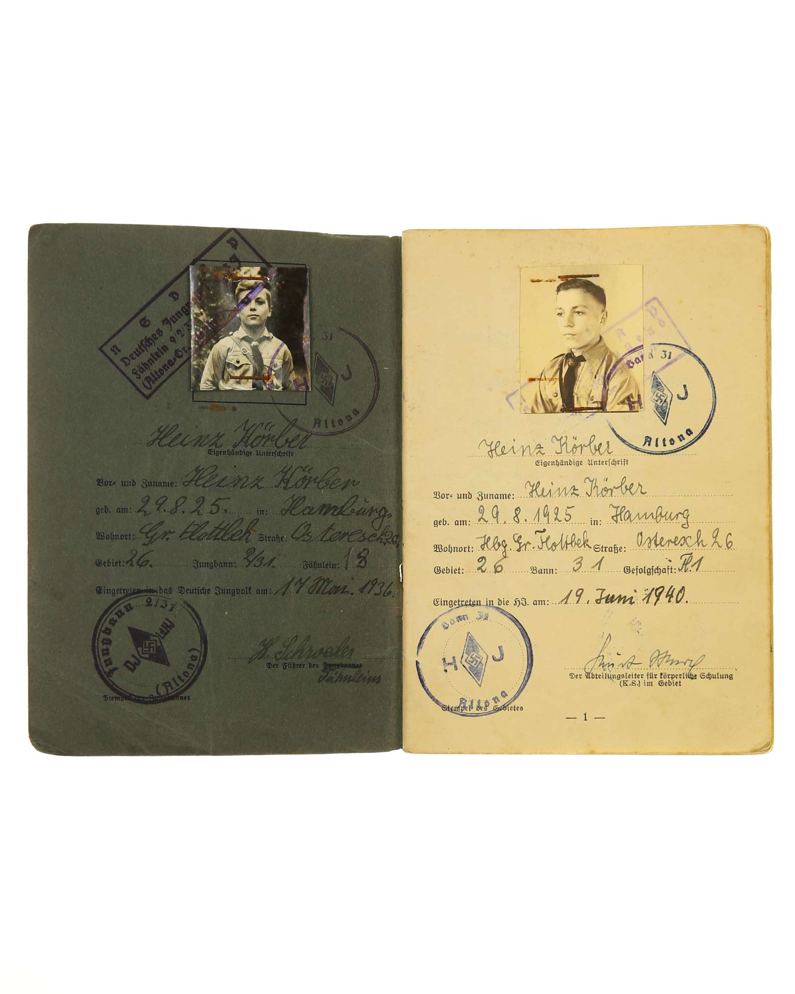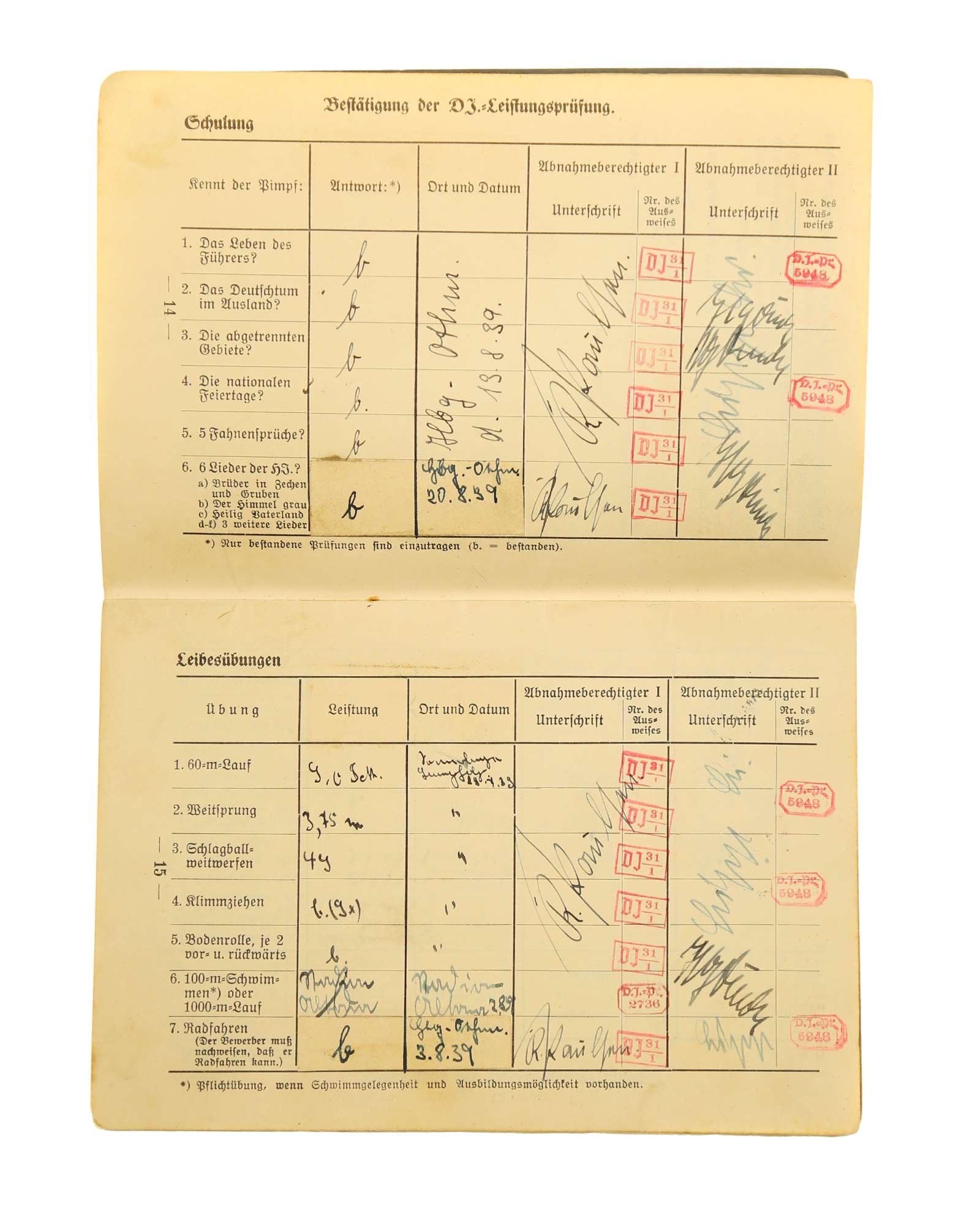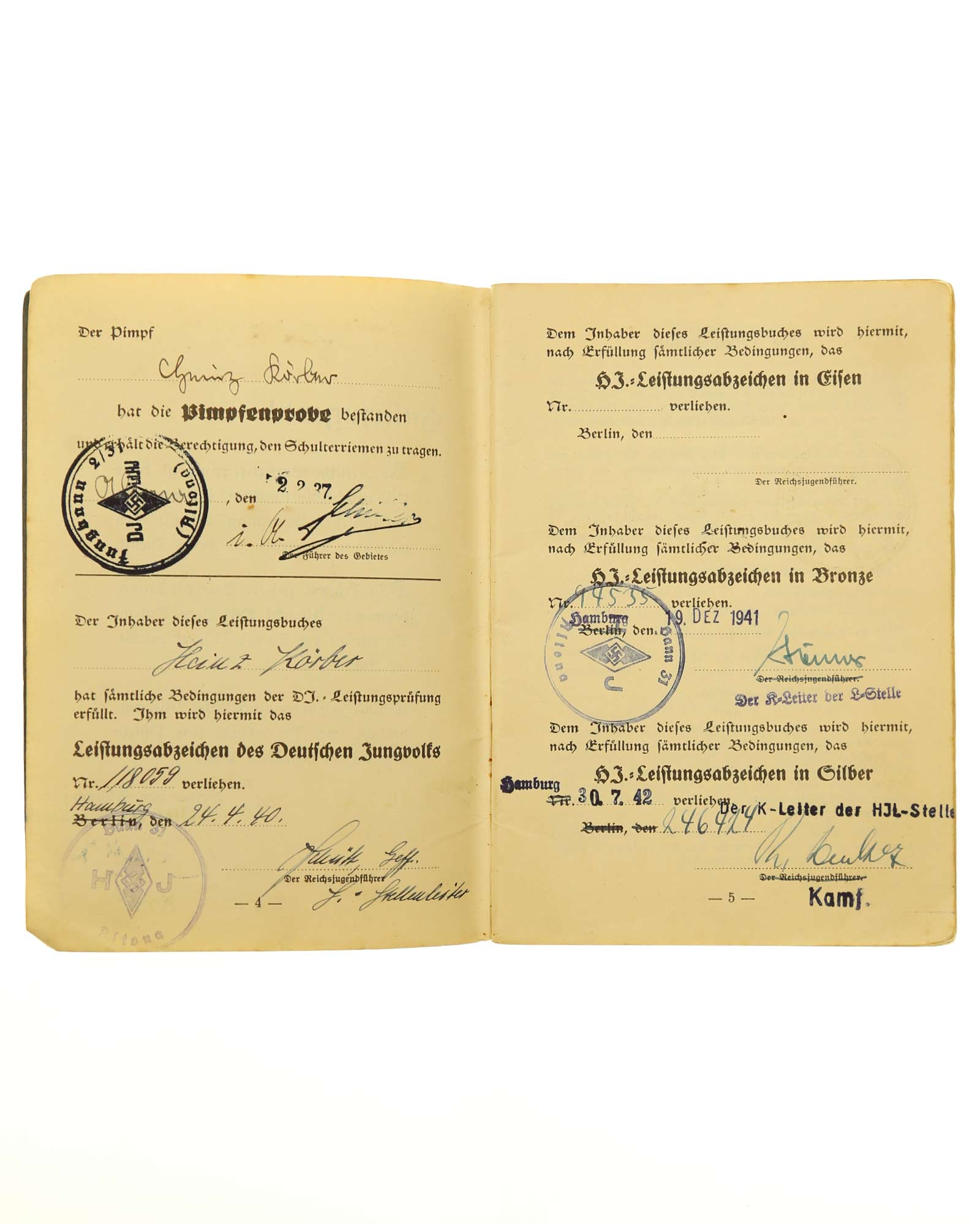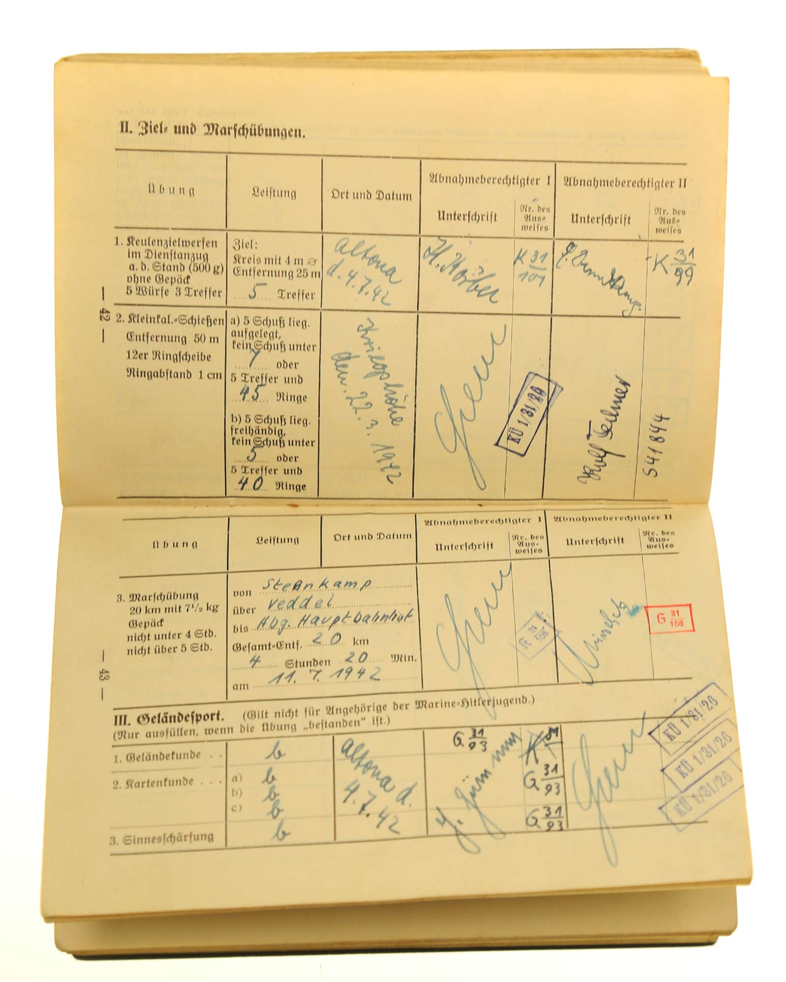 Grip: The grip plates are the early, finely checkered Bakelite type. They are in good condition, being retained by nickel rivets with dressed obverse heads. The enamel HJ insignia is in fine condition throughout.
