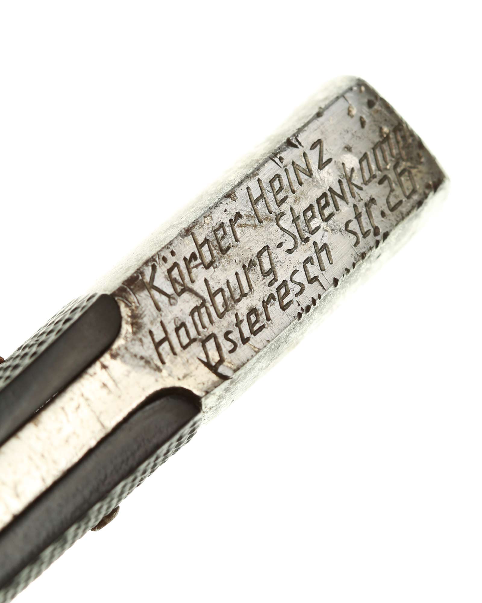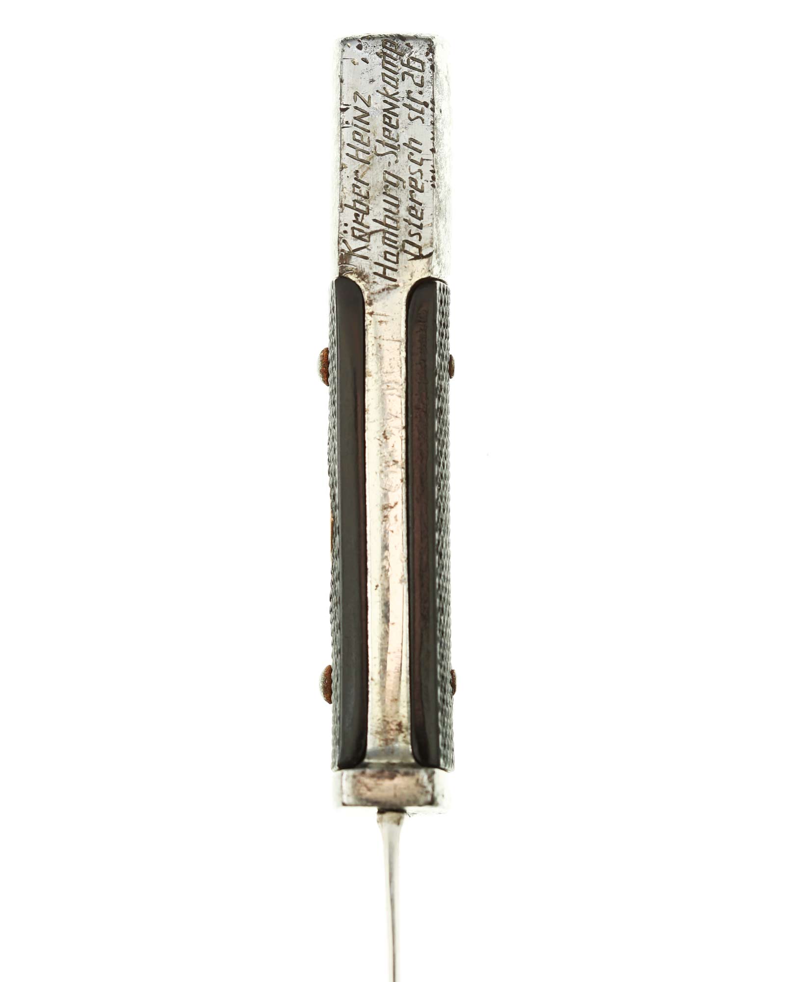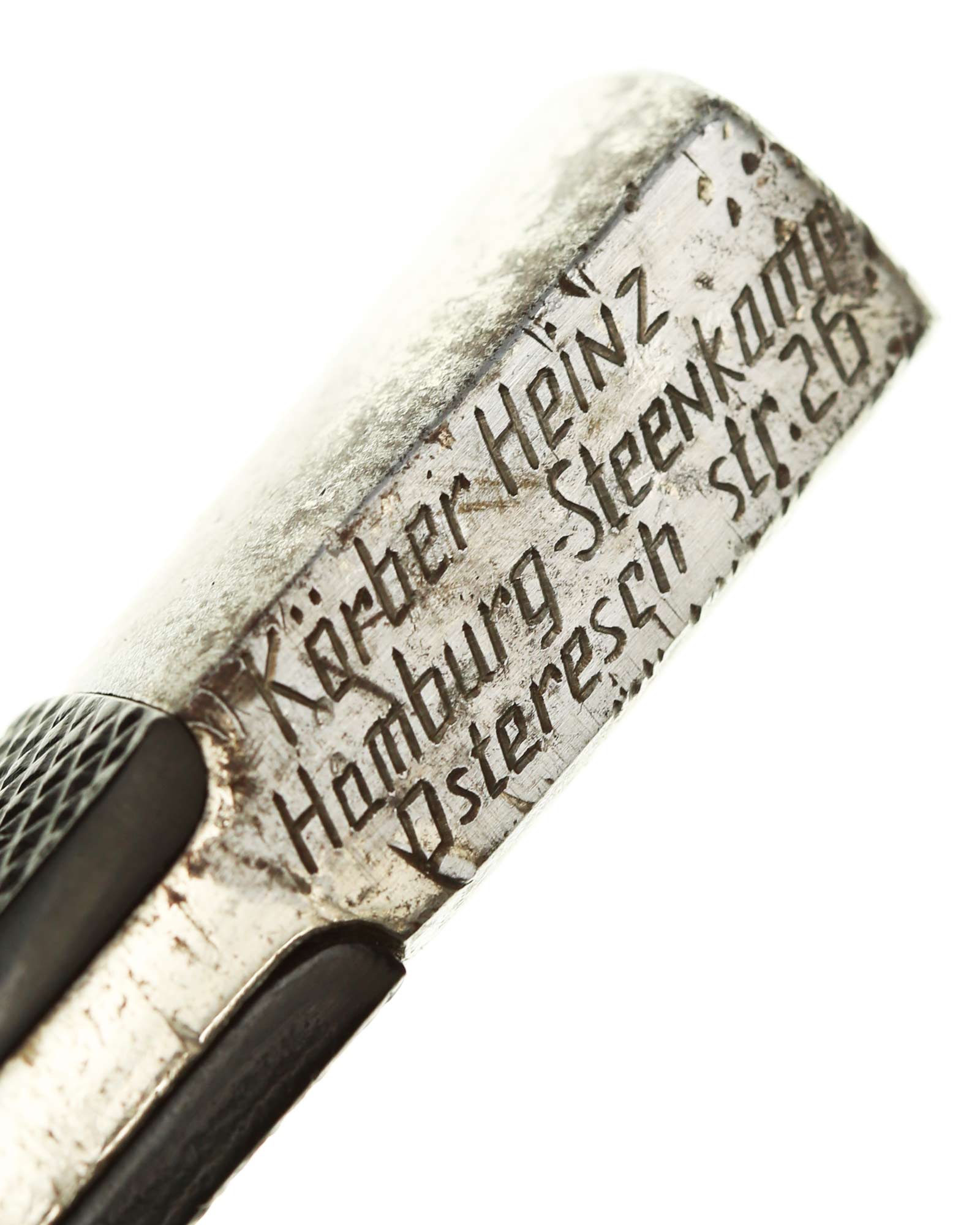 Blade: The blade of this knife is a nice example. This blade is the early-period type. The reverse of the blade is marked with Logo of the firm; with the firm's name and location, “Hermann Konejung Solingen”.