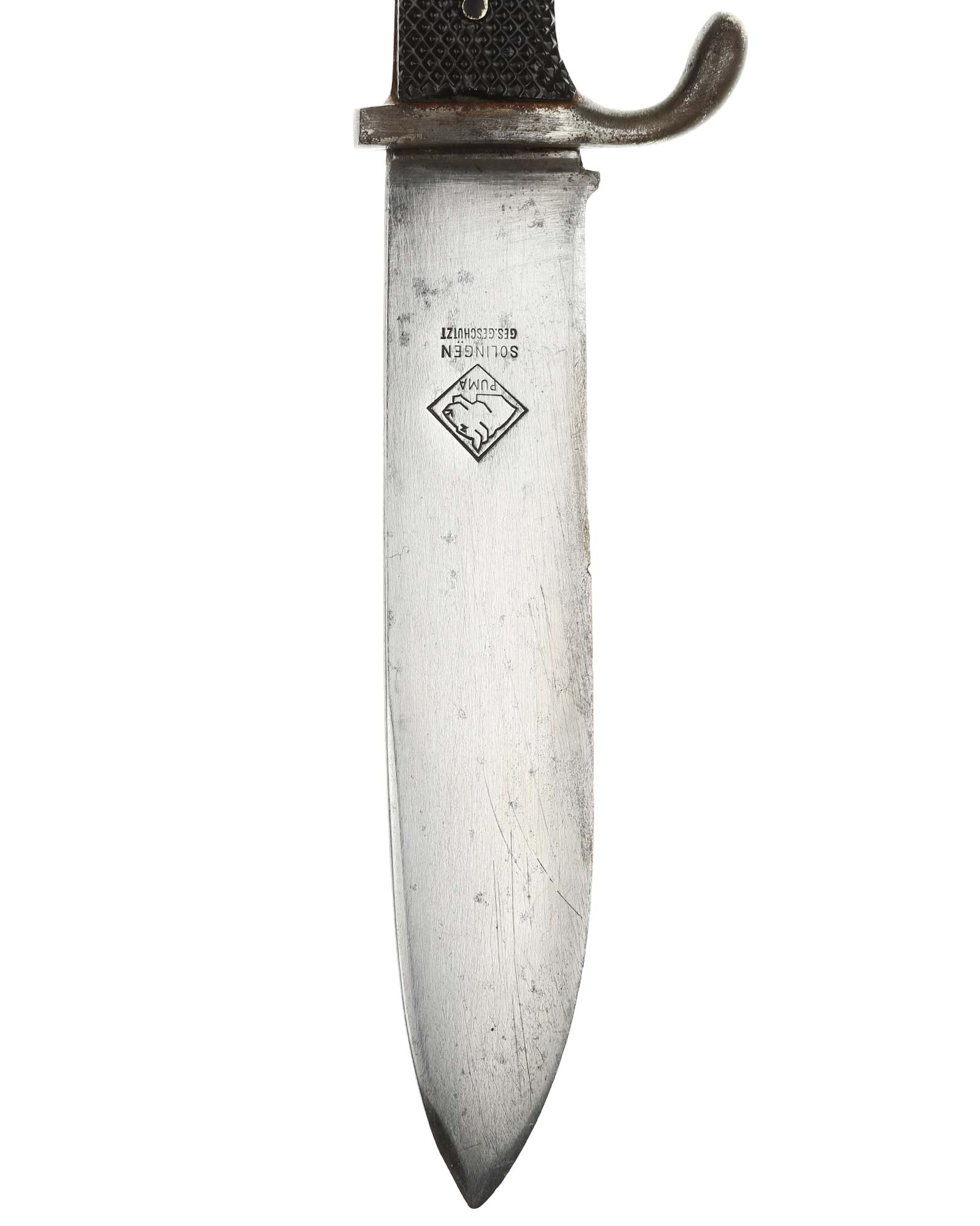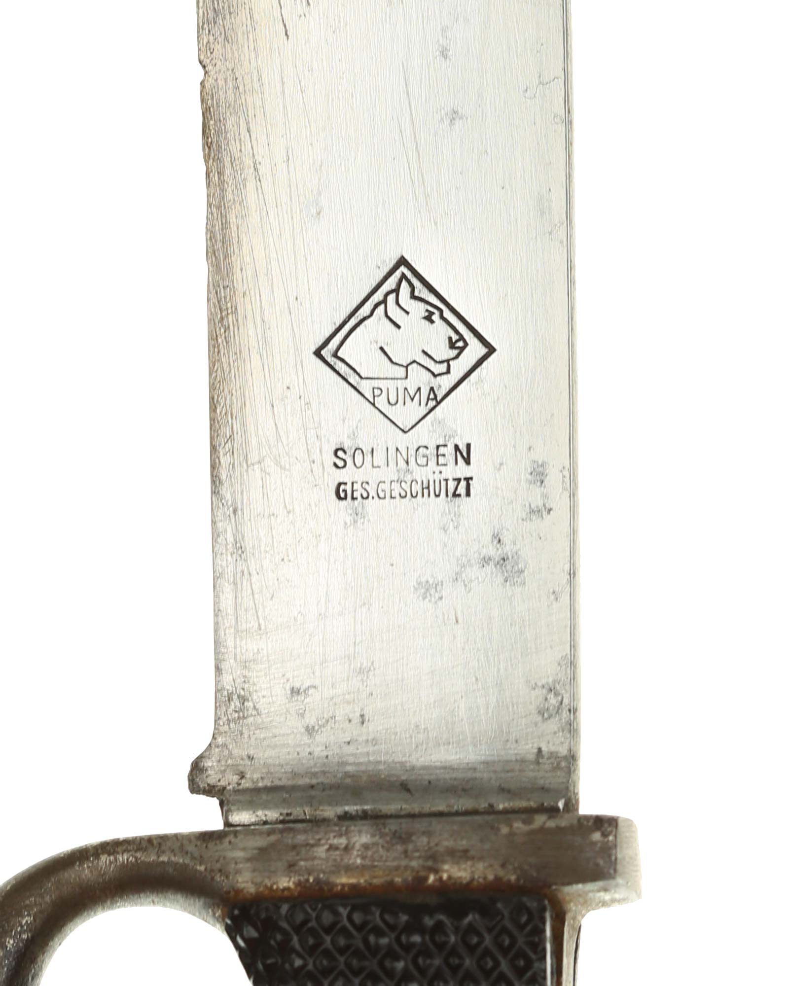 Blade: The blade of this knife is a uncleaned example. This blade is the early-period type. The reverse of the blade is marked with Logo of the PUMA firm; with the firm's name and location, “Puma Solingen”.