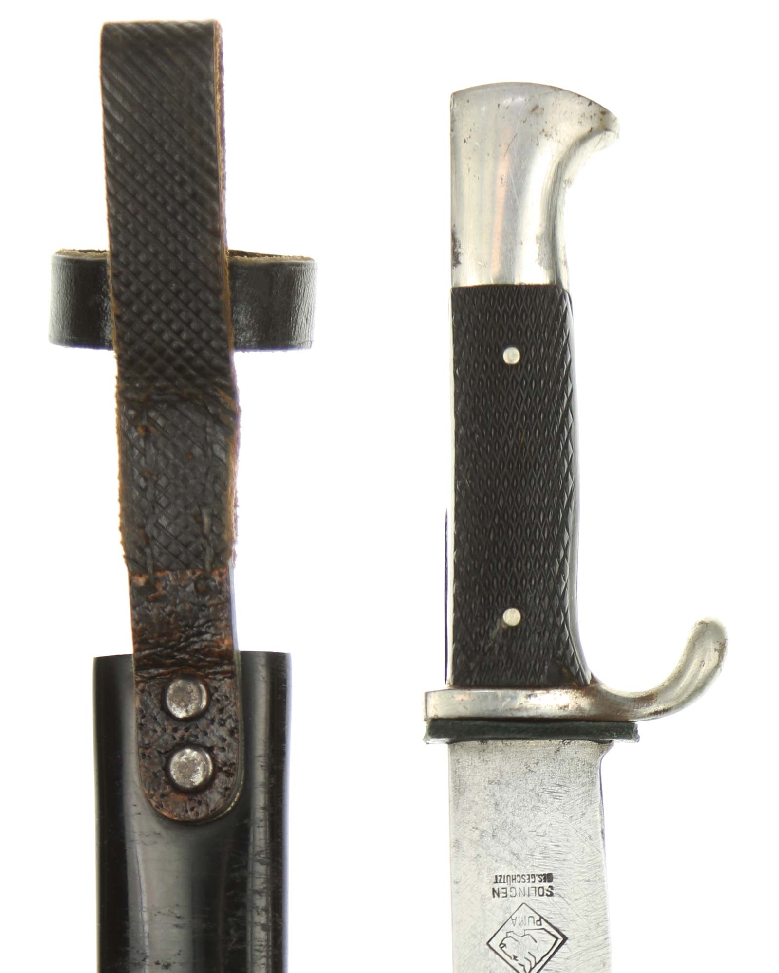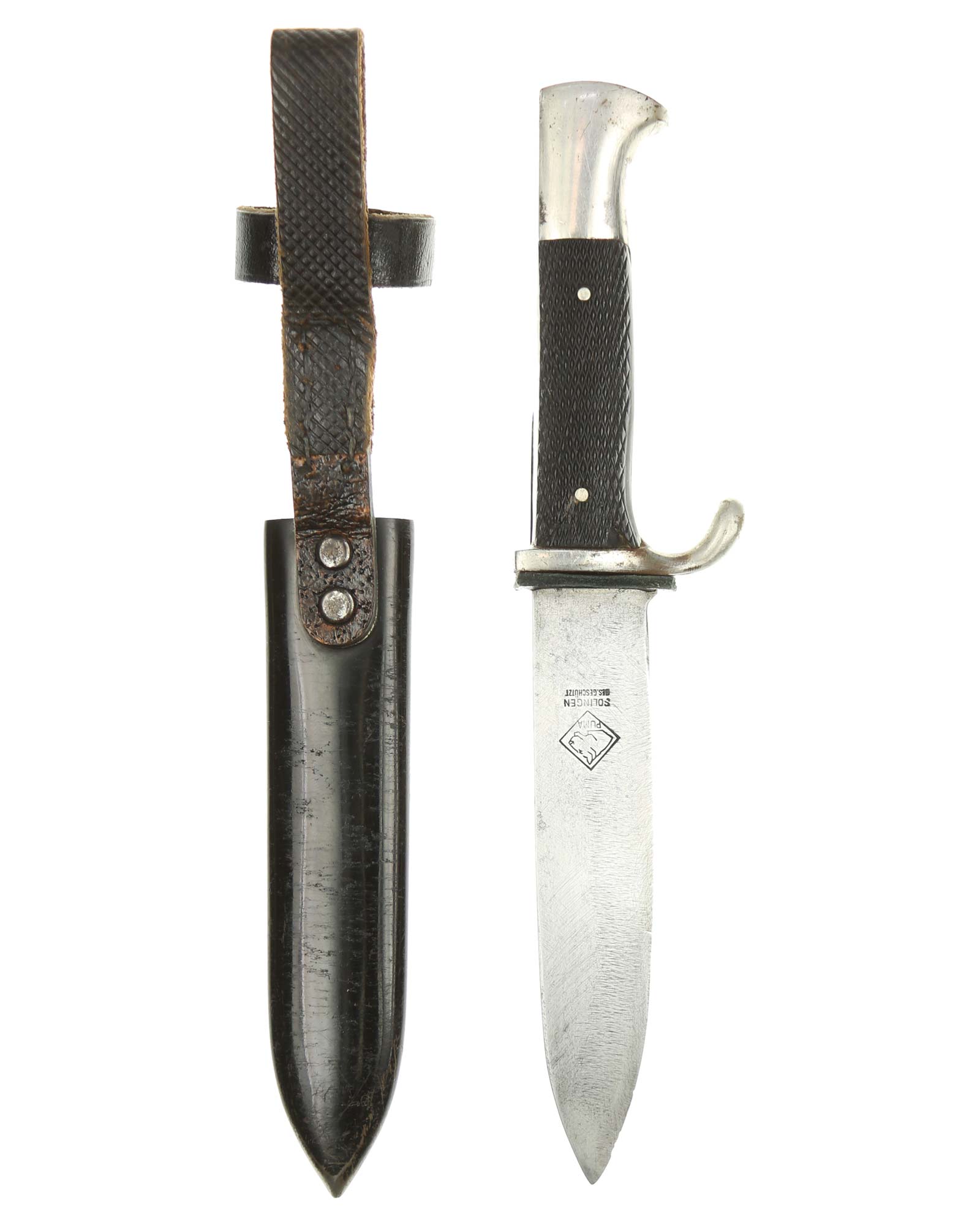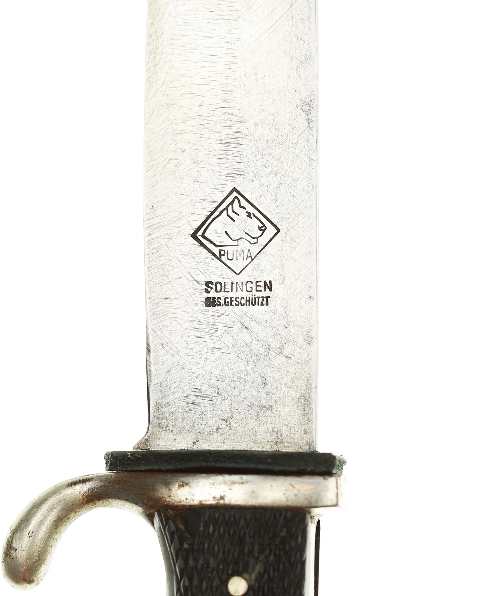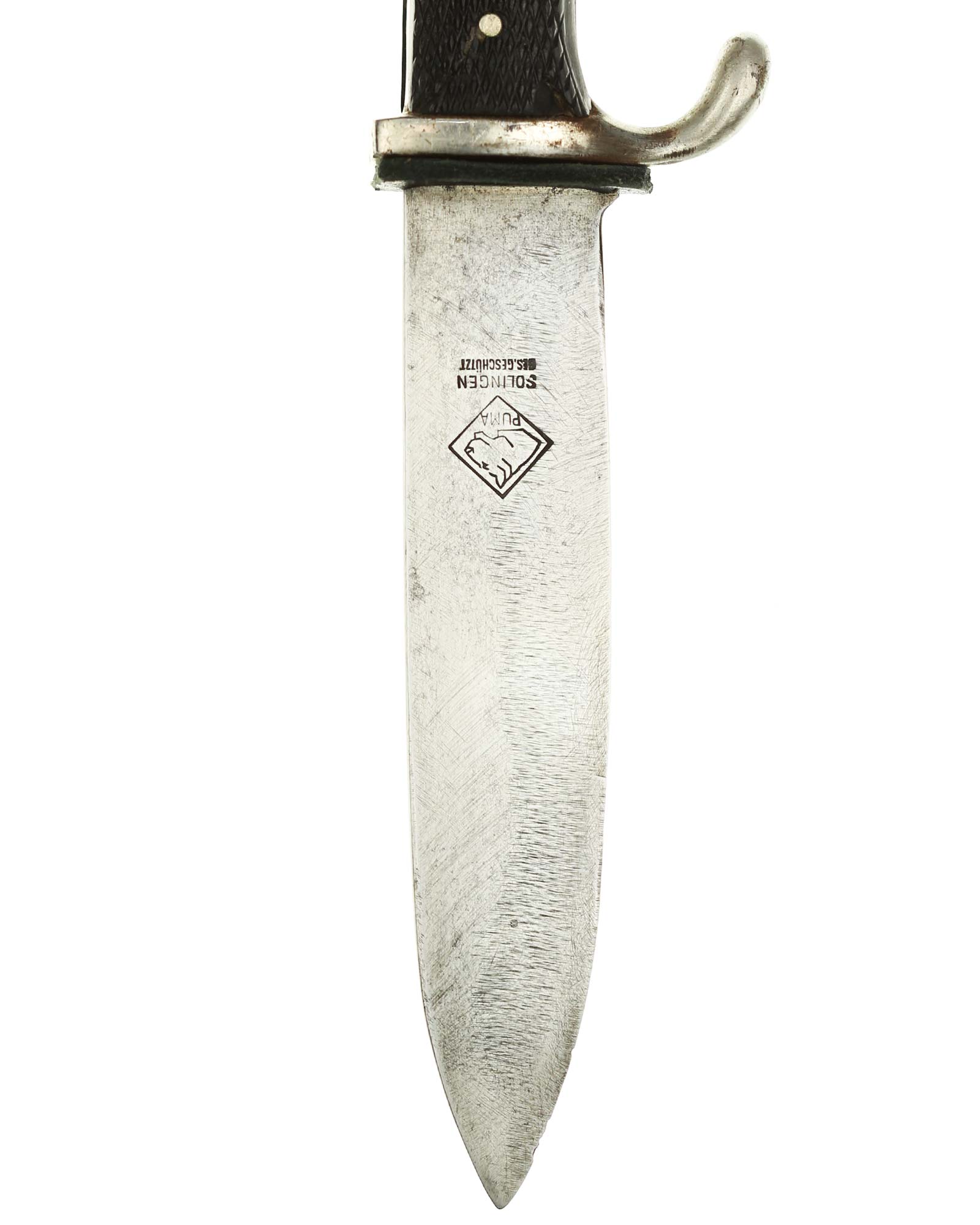 Blade: The blade of this knife is a nice example. This blade is the early-period type. The reverse of the blade is marked with Logo of the PUMA firm; with the firm's name and location, “PUMA Solingen”.