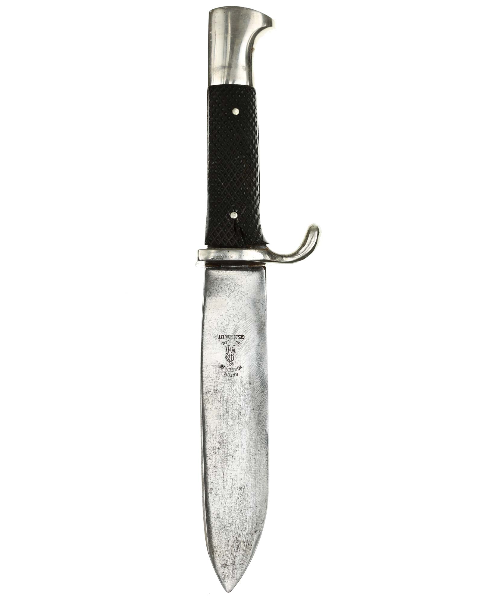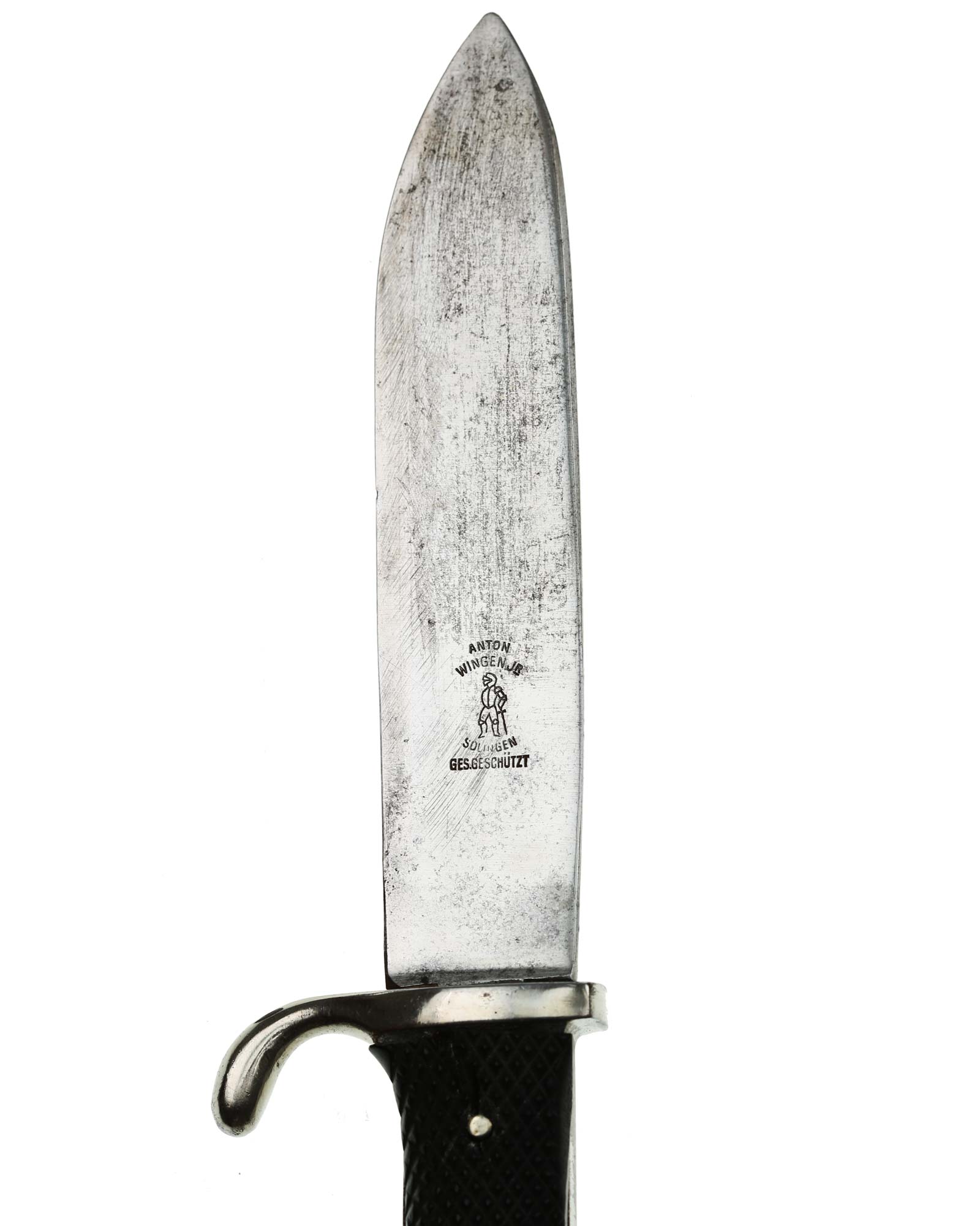Blade: The blade of this knife is a nice example. This blade is the early-period type. The reverse of the blade is marked with Logo of the Wingen firm; with the firm's name and location, “Anton Wingen Jr. Solingen”.