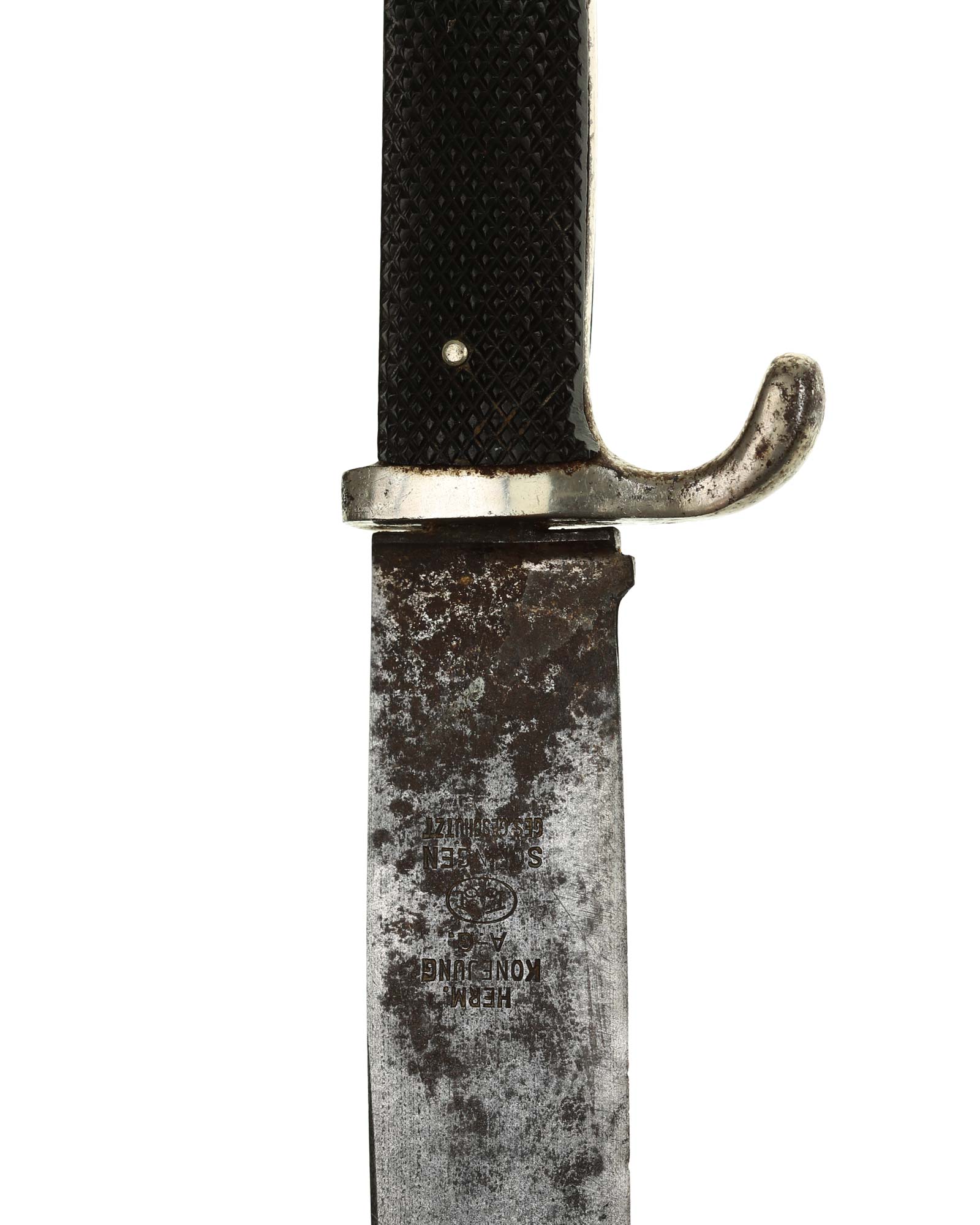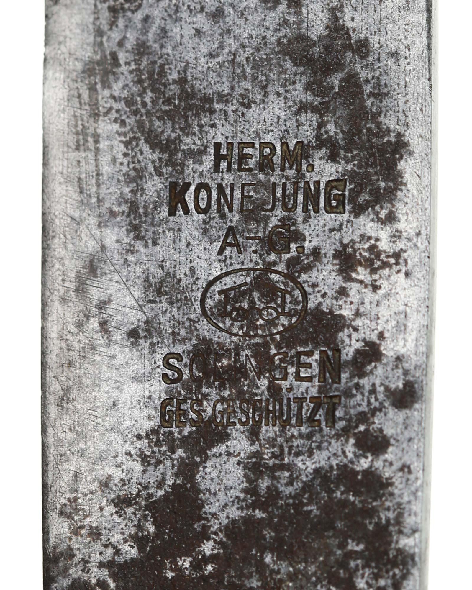 Blade: The blade of this knife is a uncleaned example. This blade is the early-period type. The reverse of the blade is marked with Logo of the Zwilling firm; with the firm's name and location, “Herm. Konejung A.-G. Solingen”.