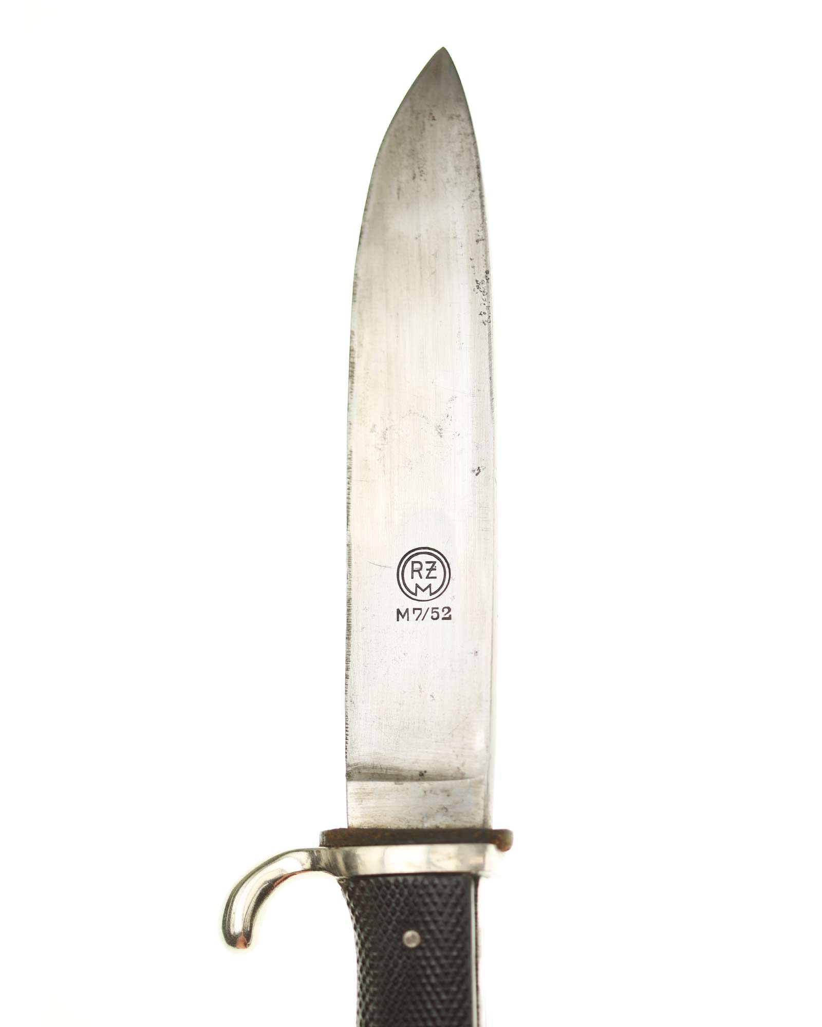 Blade: The blade of this knife is a EXC example. This blade is the late-period type. The reverse of the blade is marked with a RZM circle and code: RZM M7/52 for Herbertz & Meuerer Solingen.