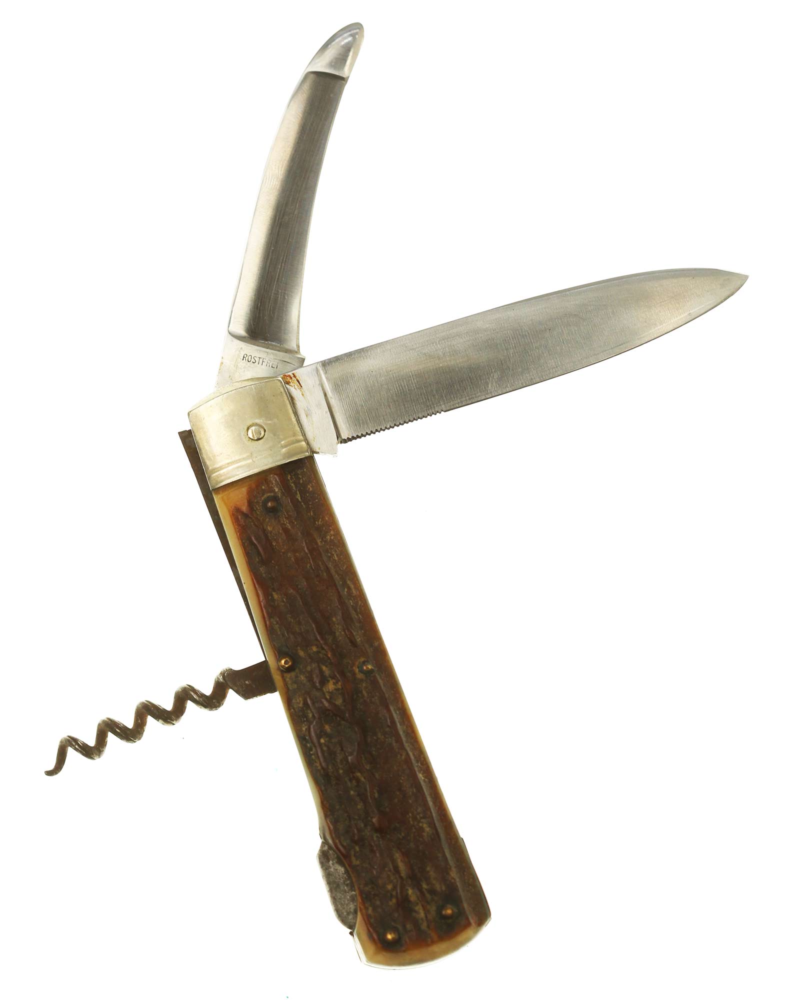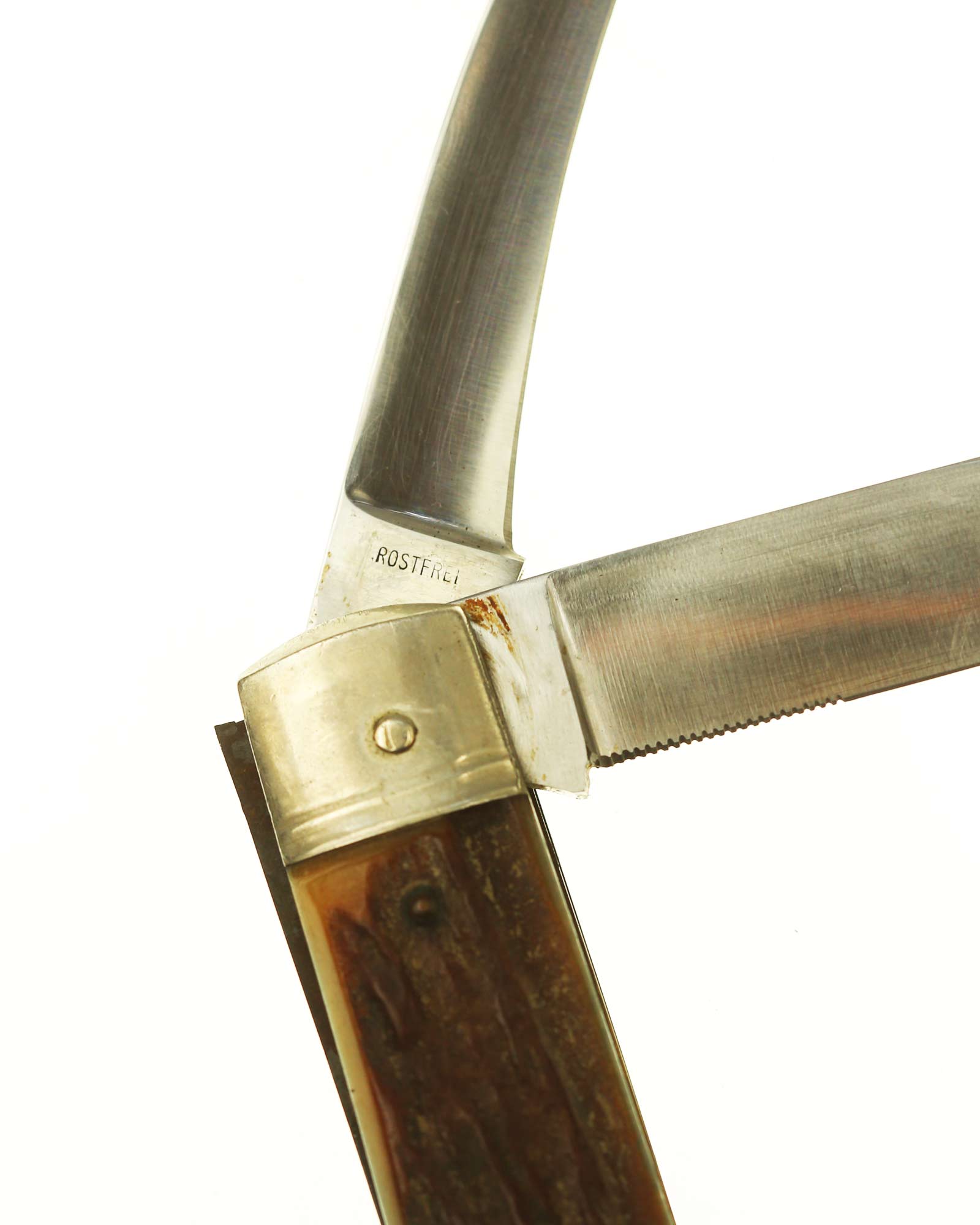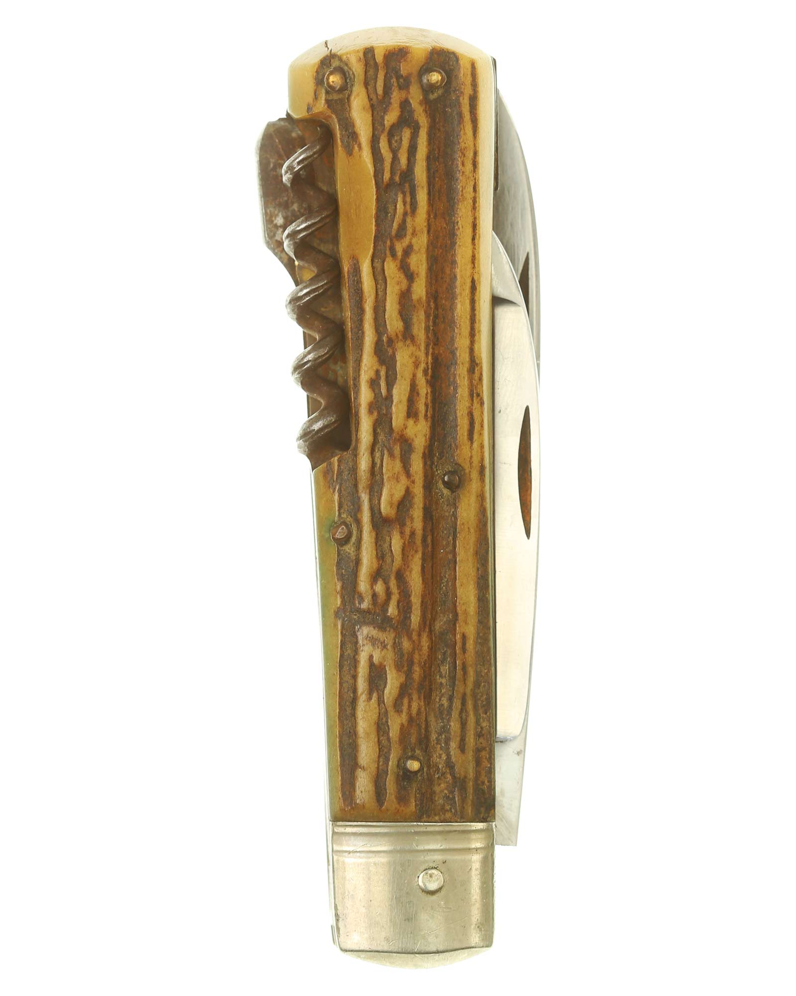 Puma hunting pocket knife with break-open blade and staghorn handle scales. Weight: approx. 152 g.