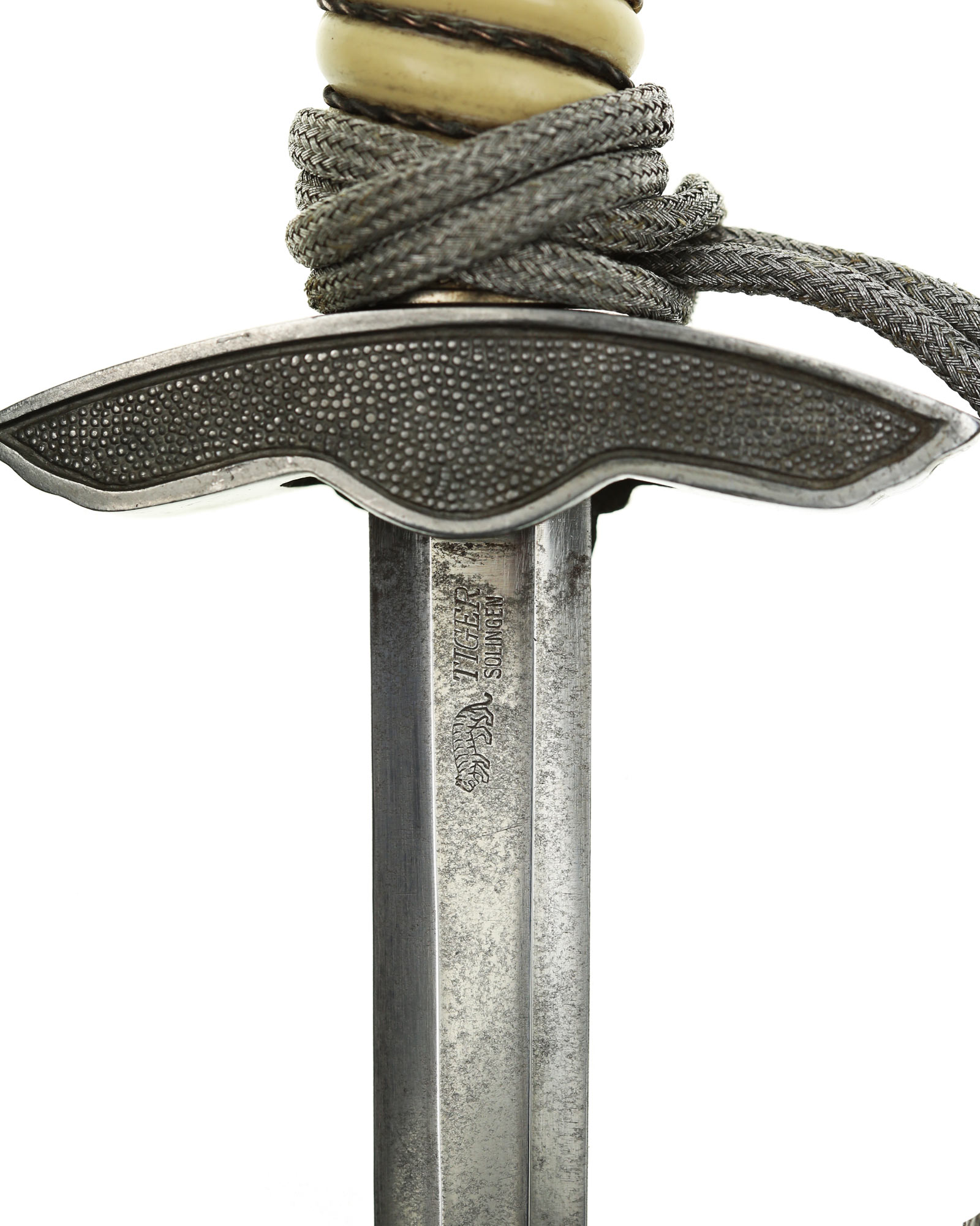 This 2nd Model Luftwaffe Dagger, produced by Tiger, is an absolute textbook example, and is in fine condition overall. Model 1937. The total length is 43.0 cm. The Dagger has the maker mark on the blade: Tiger Solingen.