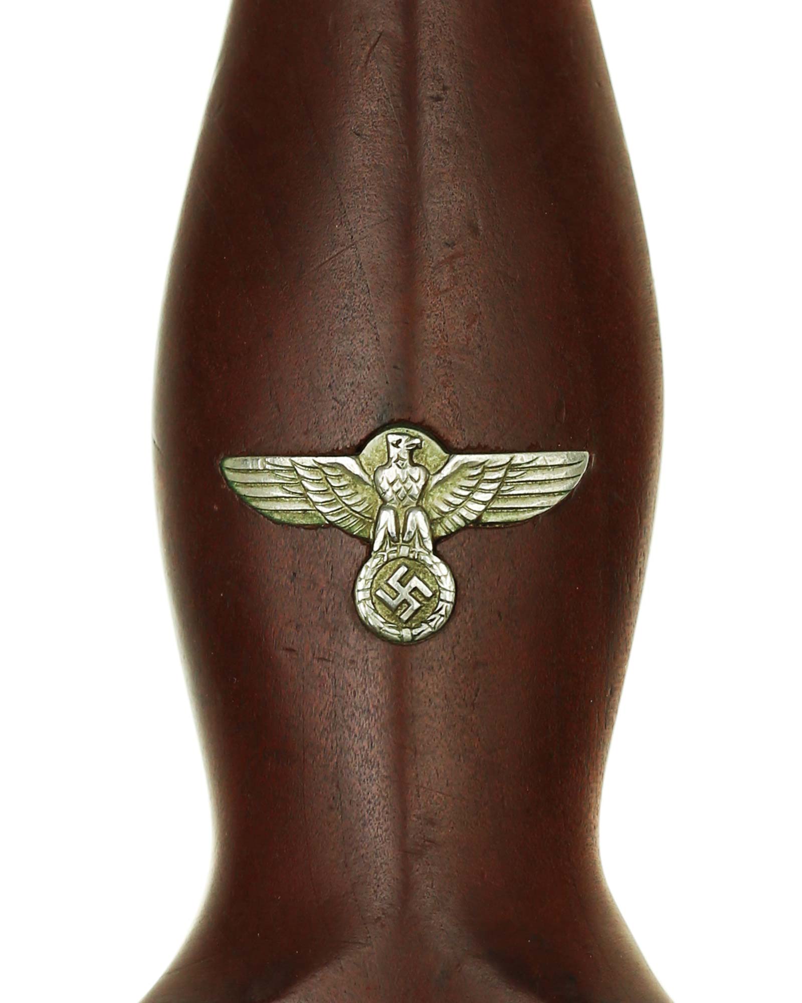 Grip: Wooden grip fitted with an inset national eagle and an enameled