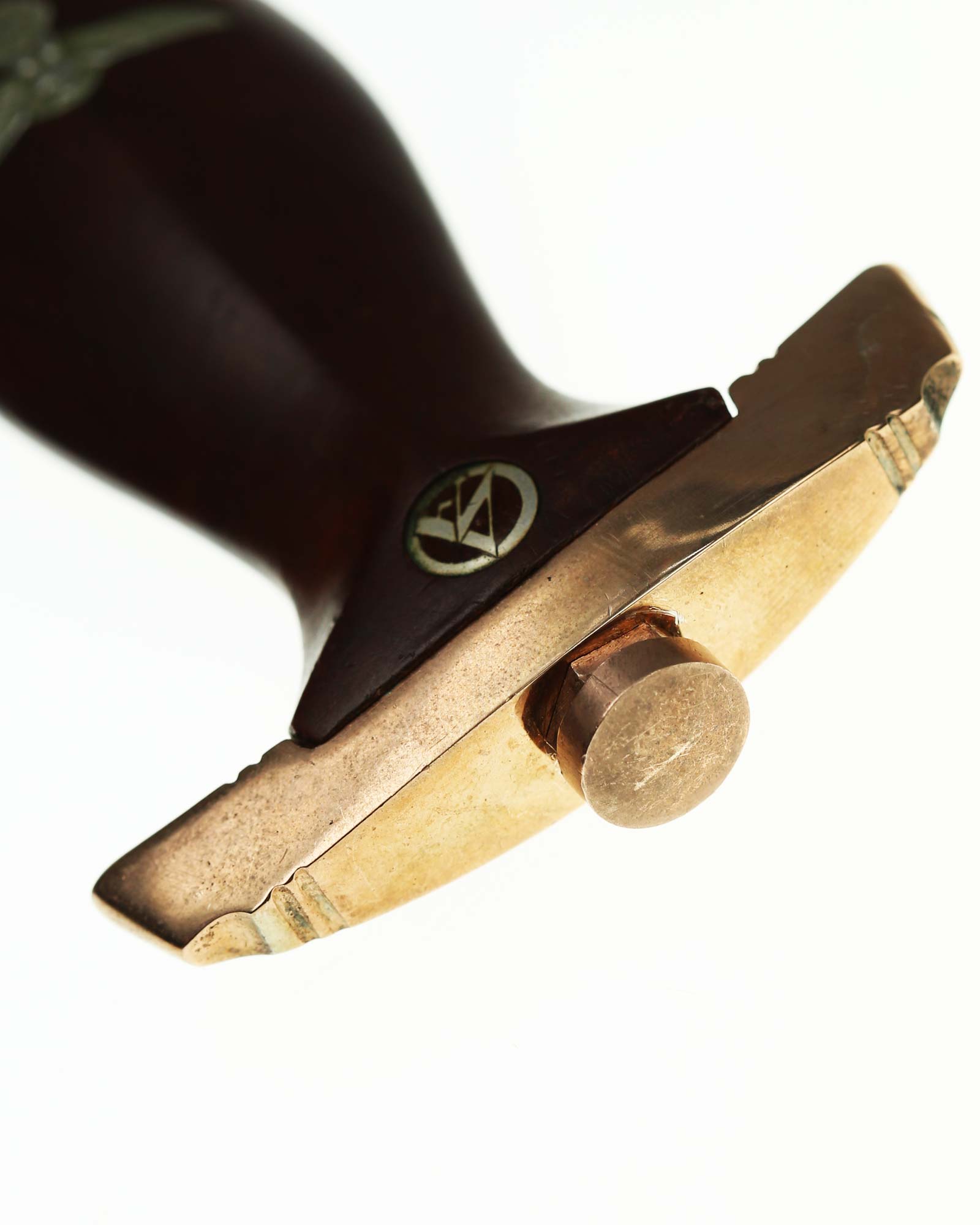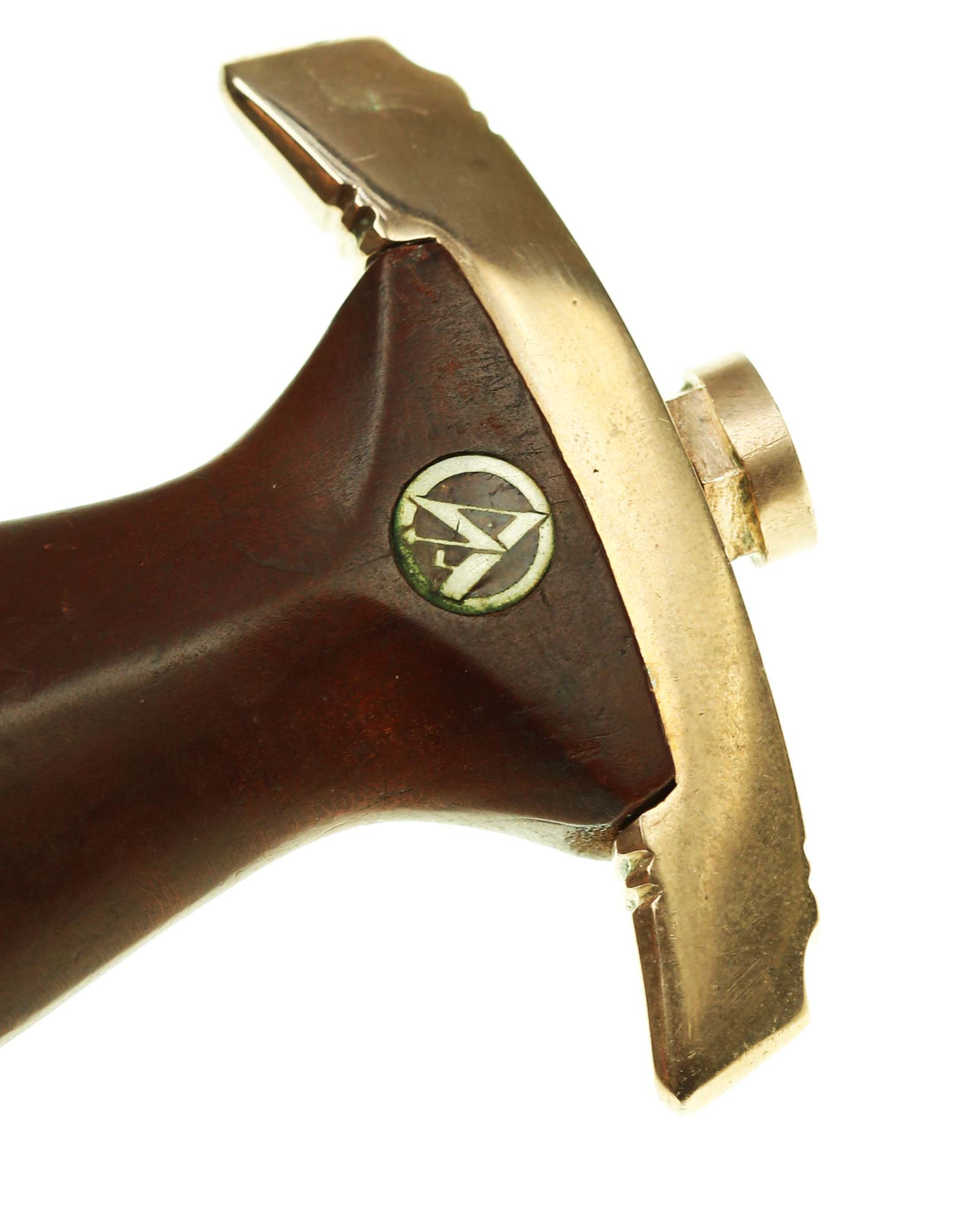 The nickel-plated scabbard fittings are secured with two side screws each.