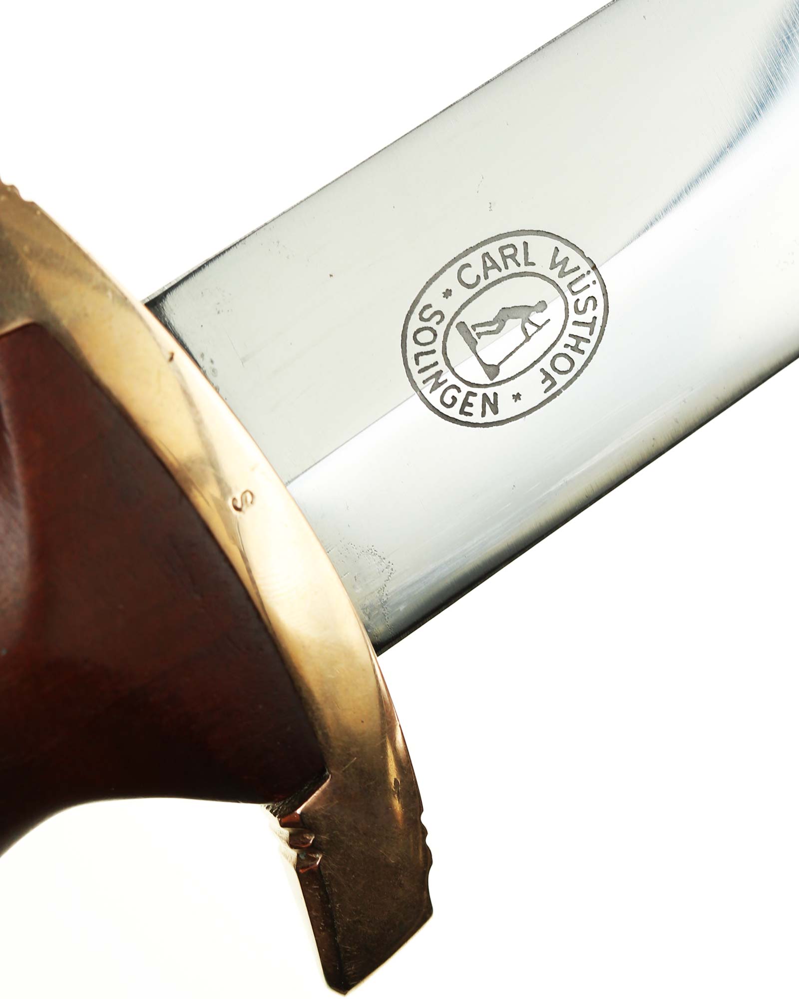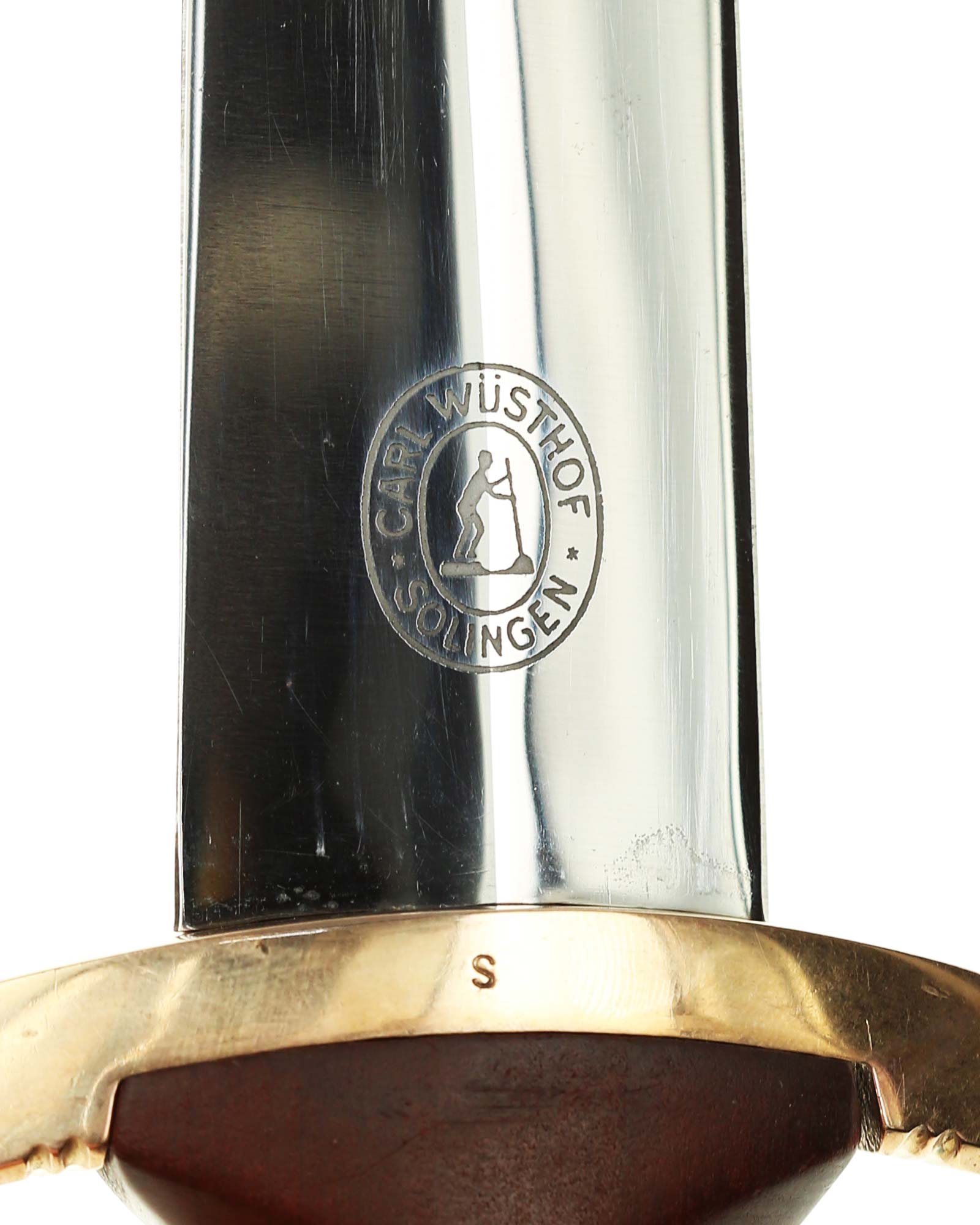 Carl Wüsthof Solingen maker mark. The blade shoulders fit precisely into the