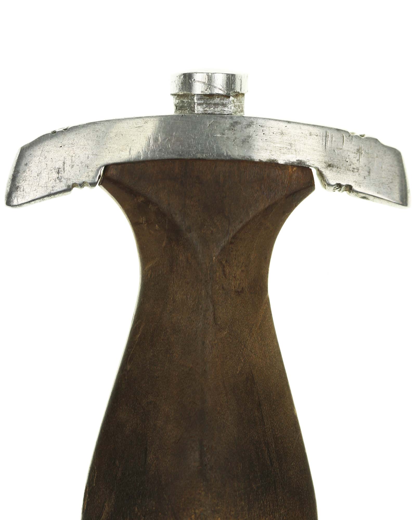 Grip: The grip of the dagger is a late production type, having the high. This grip is in fine condition. The grip eagle is constructed from aluminum. The crossguards have good aluminium-plated surfaces, almost entirely intact and showing little age. The tang nut is also in good condition.