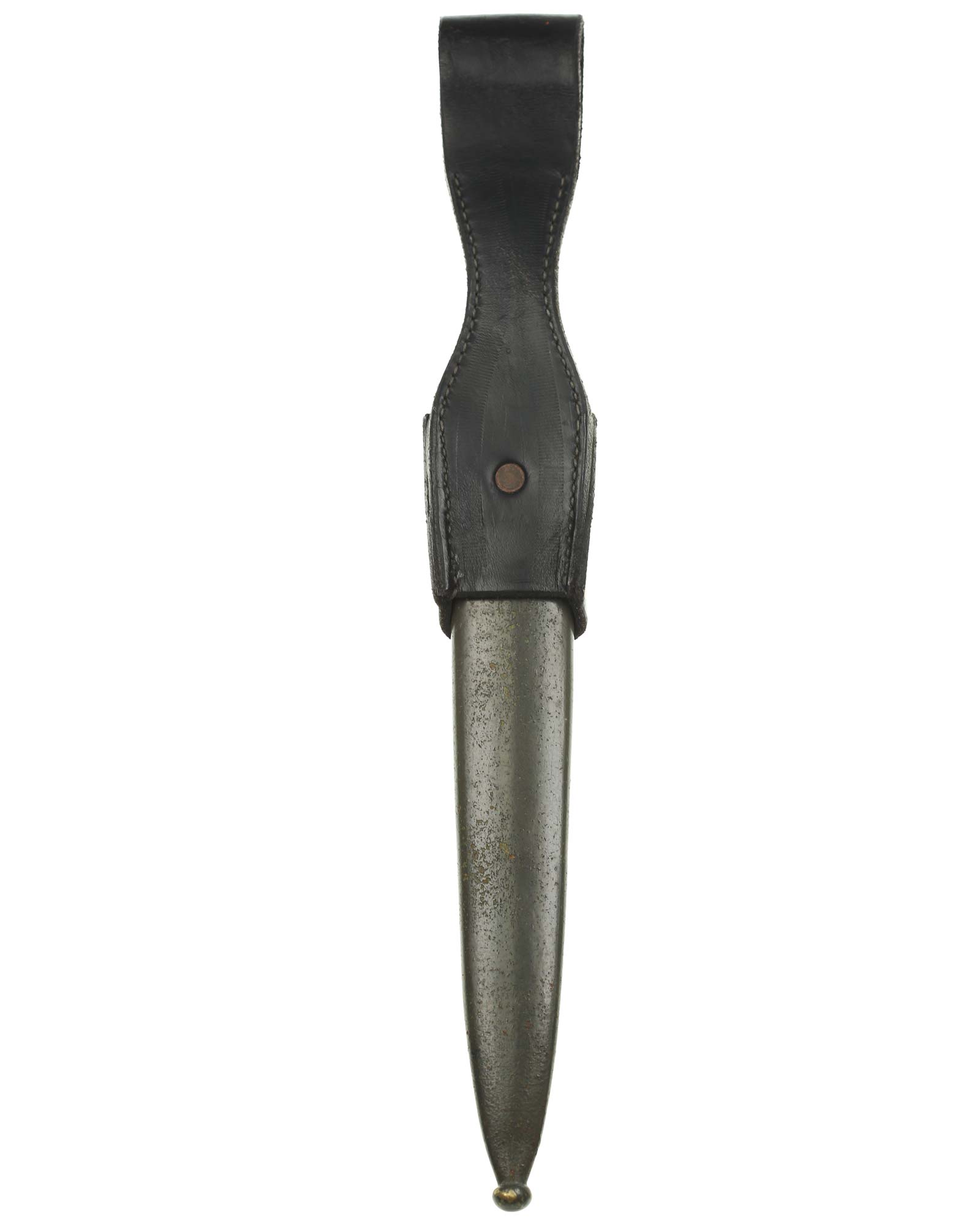 Scabbard: Dent-free steel scabbard retains approximately 90% of the original olive drab enamel.