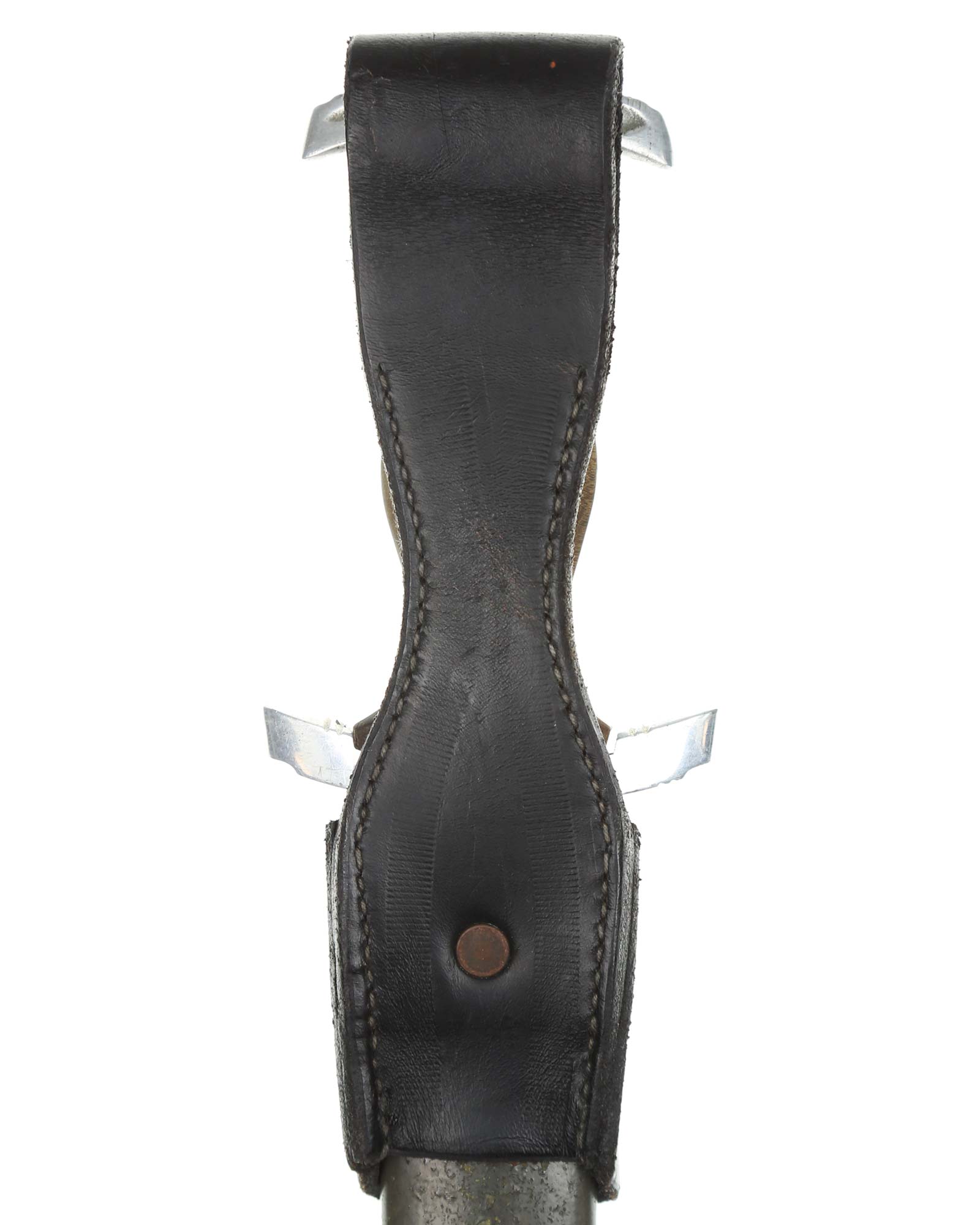 Blade: The blade is in EXC+ condition. The NPEA motto is crisp and deep having most of the darkening in the background letters. The blade has the Eickhorn-style motto with the special “S” letters used by this firm. The reverse ricasso is stamped with the post-1941 “Over the Shoulder” style Eickhorn Squirrel trademark. The blade shoulders perfectly meet the lower crossguard contour.