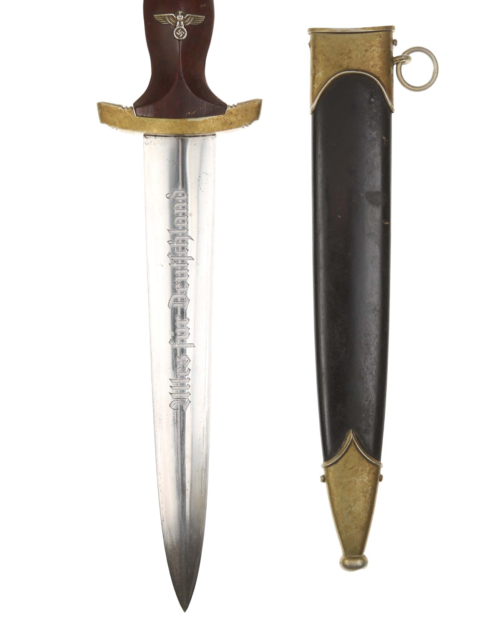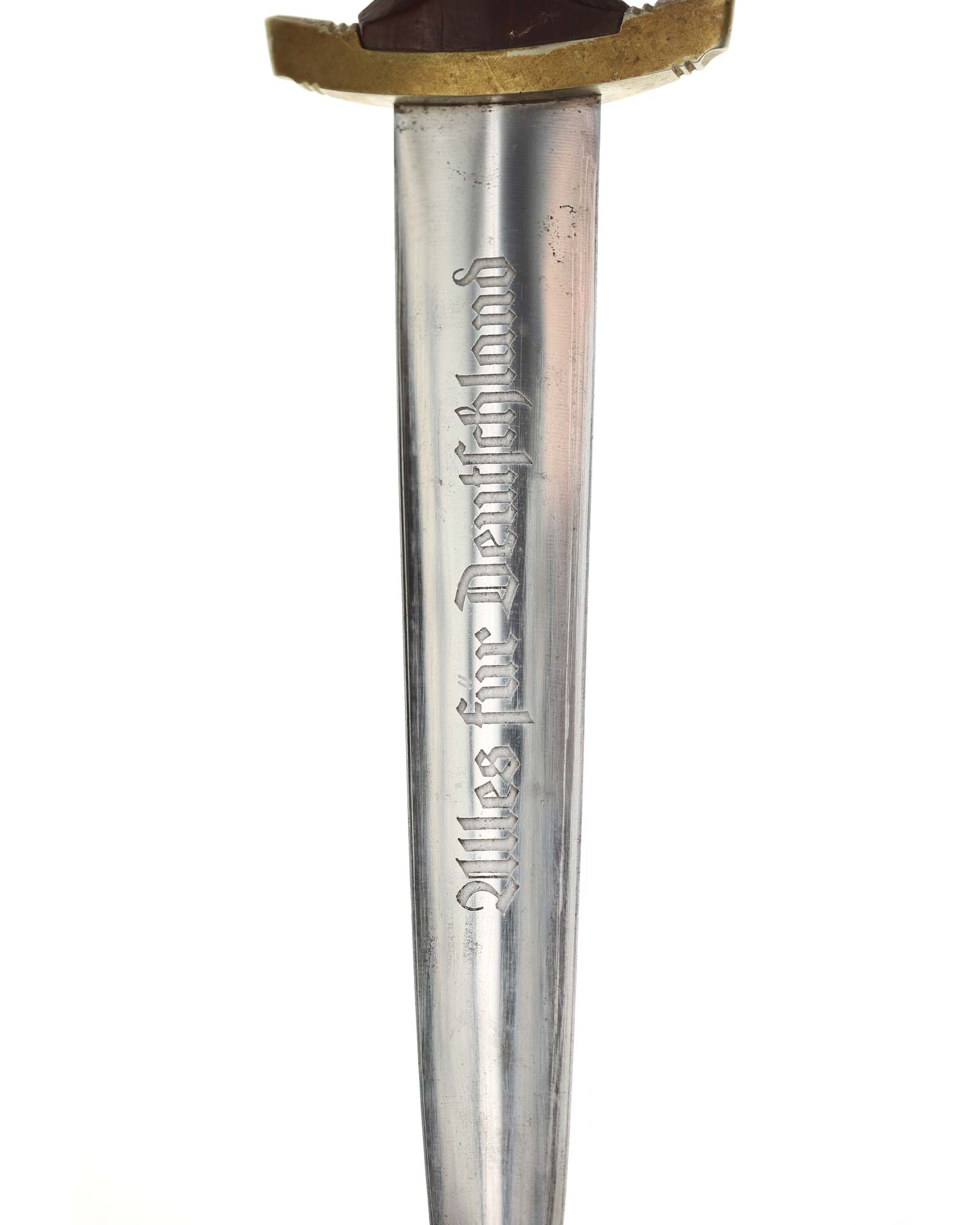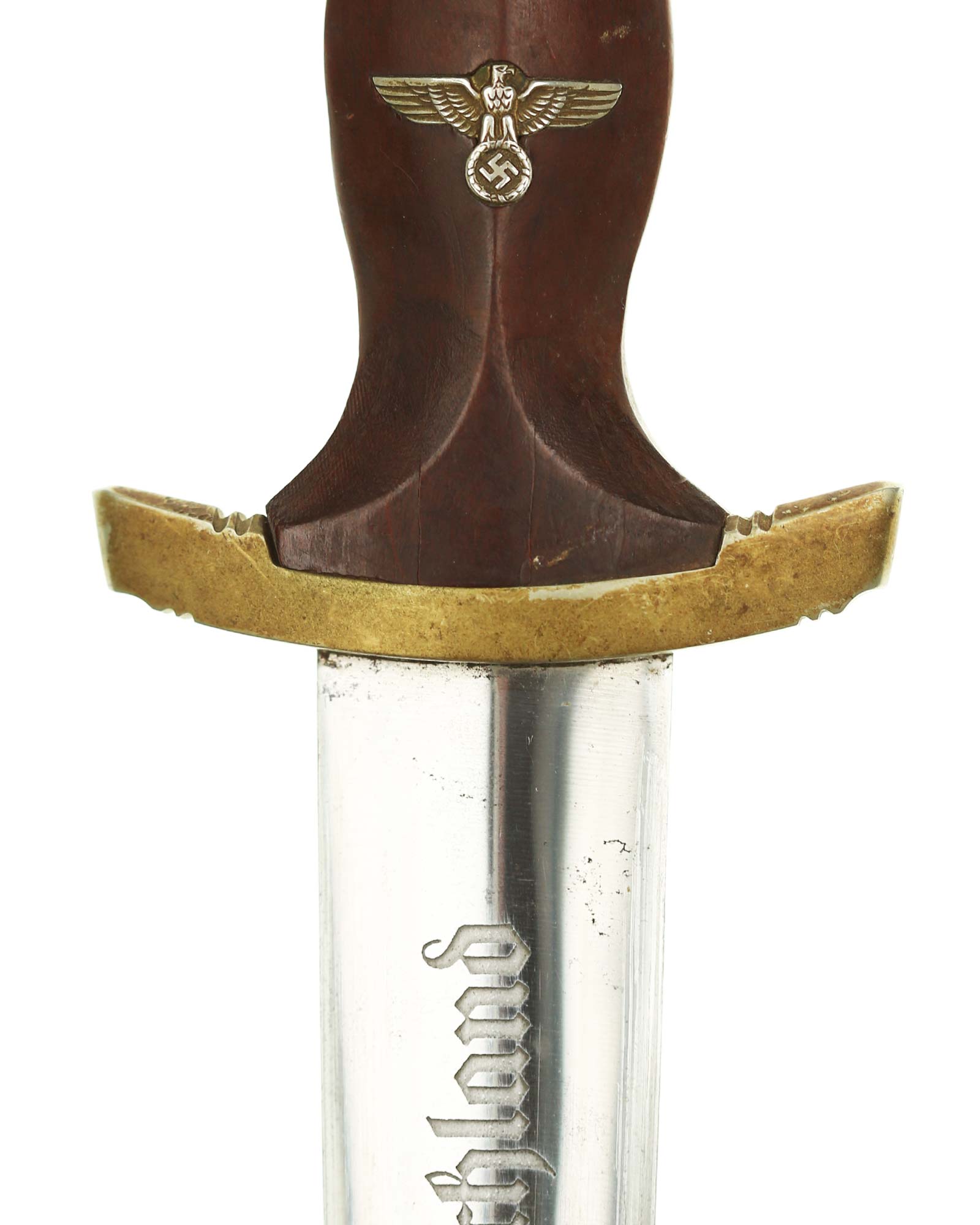 This early NSKK [National Socialist Motor Corps] Dagger shows some age but it is still in EXC++ condition. Model 1933. The total length is 38,0 cm. The Dagger has the maker mark on the blade: F. W. Backhaus Solingen.