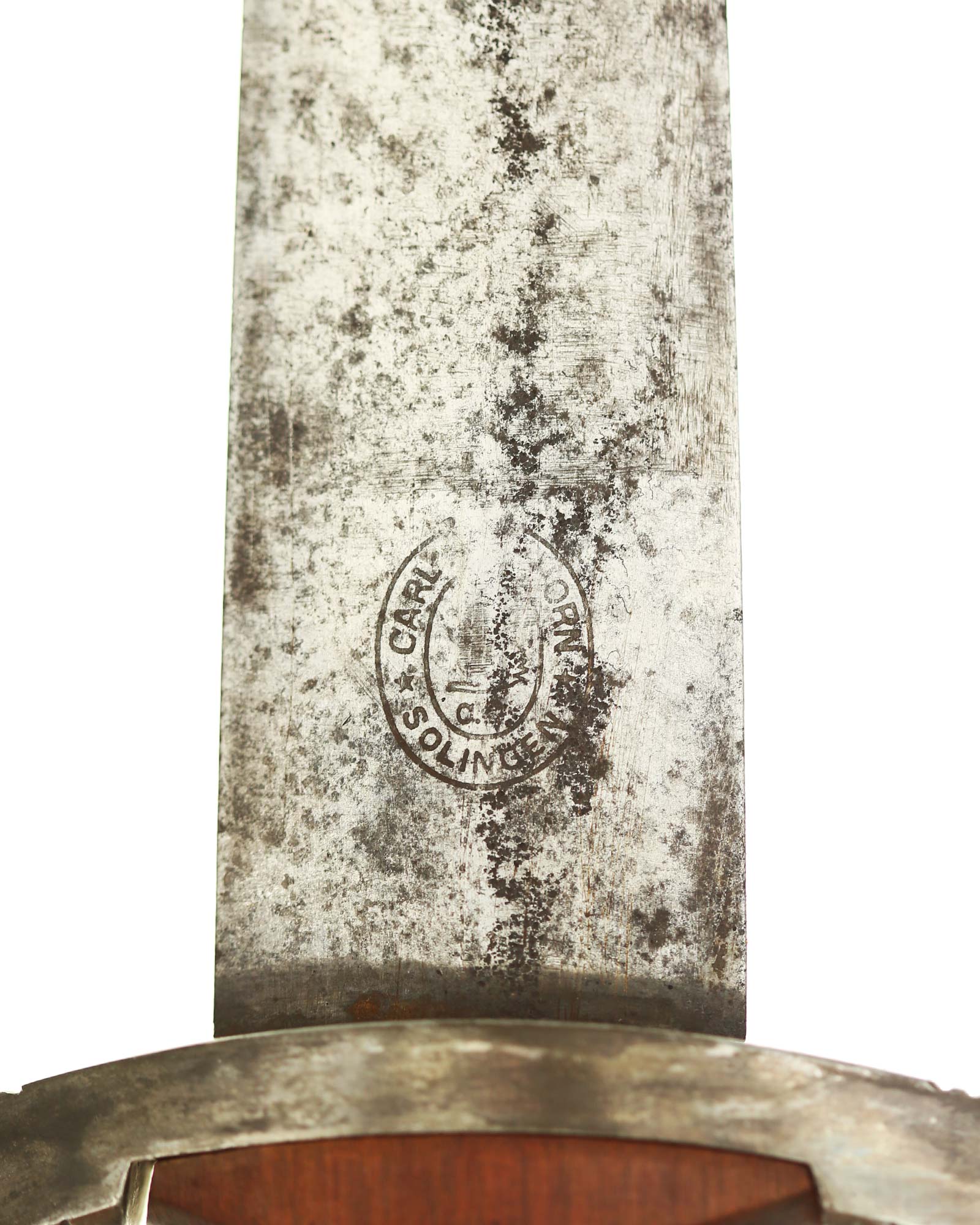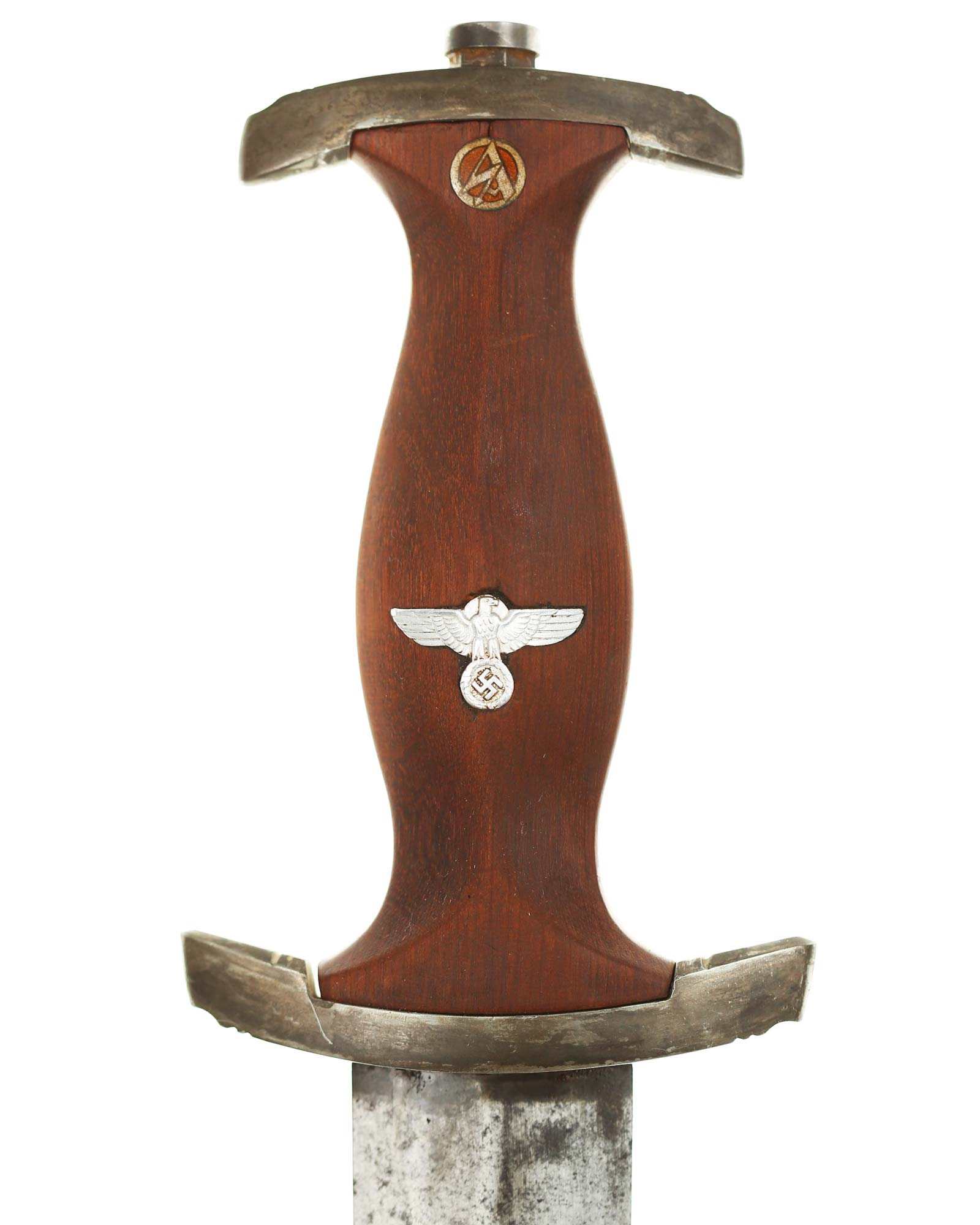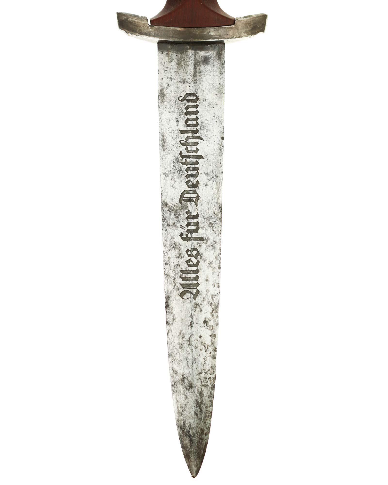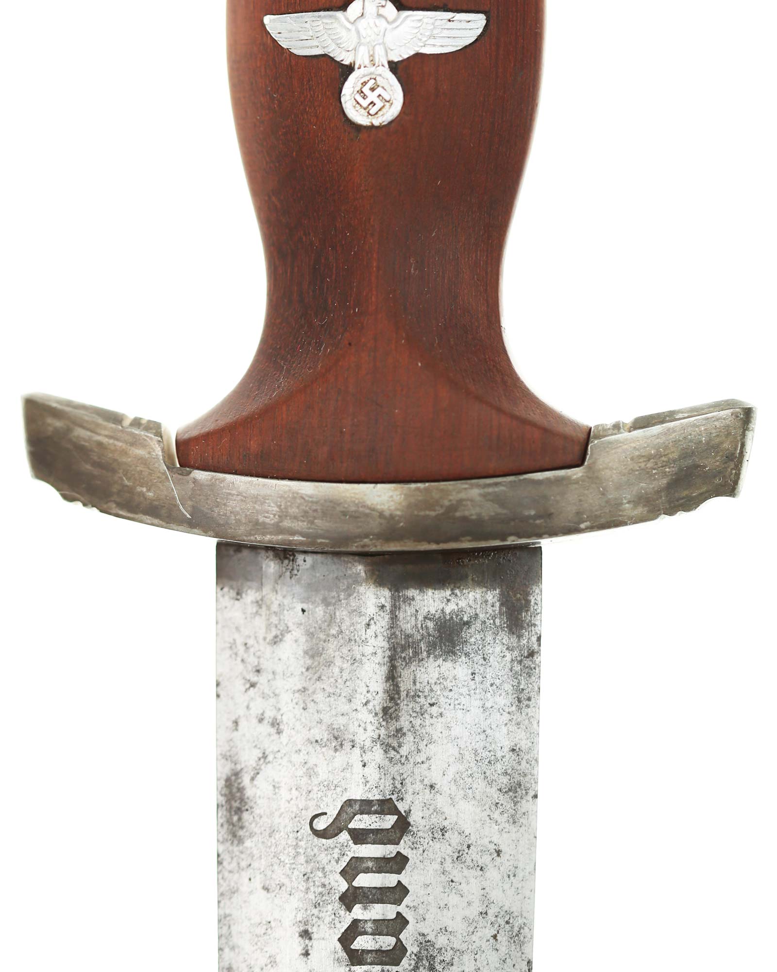 Blade: The blade of this example is still grades at about exc. The SA motto Alles für Deutschland «Everything for Germany» is deep. The company logo is on the reverse ricasso: Carl Eickhorn Solingen. The blade shoulders meet the crossguard contour.
