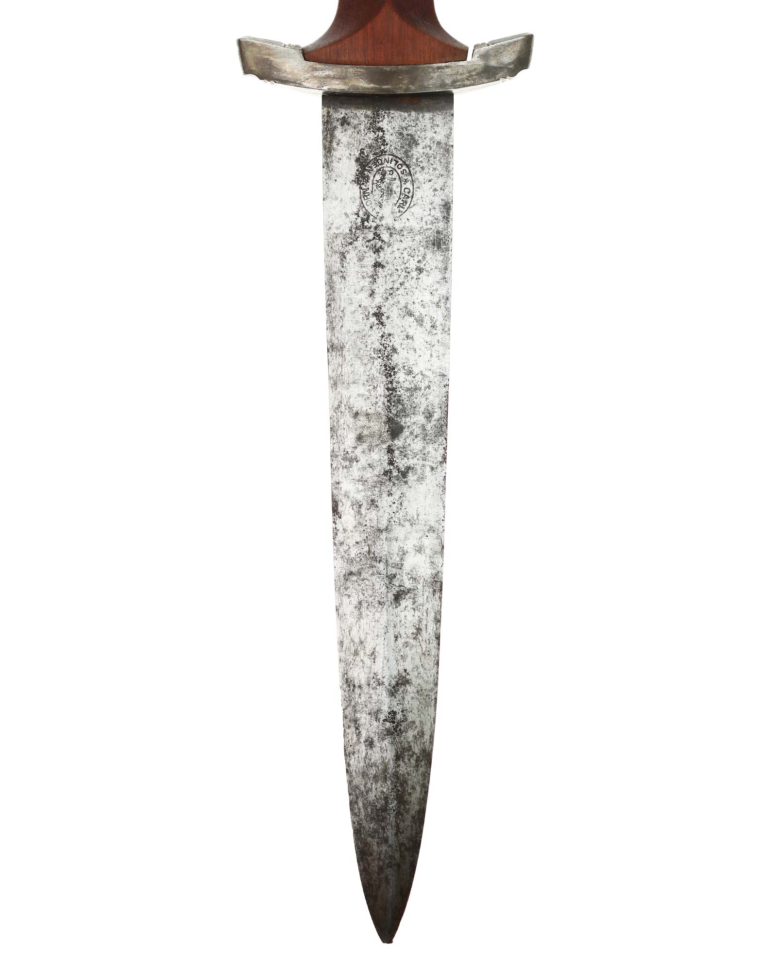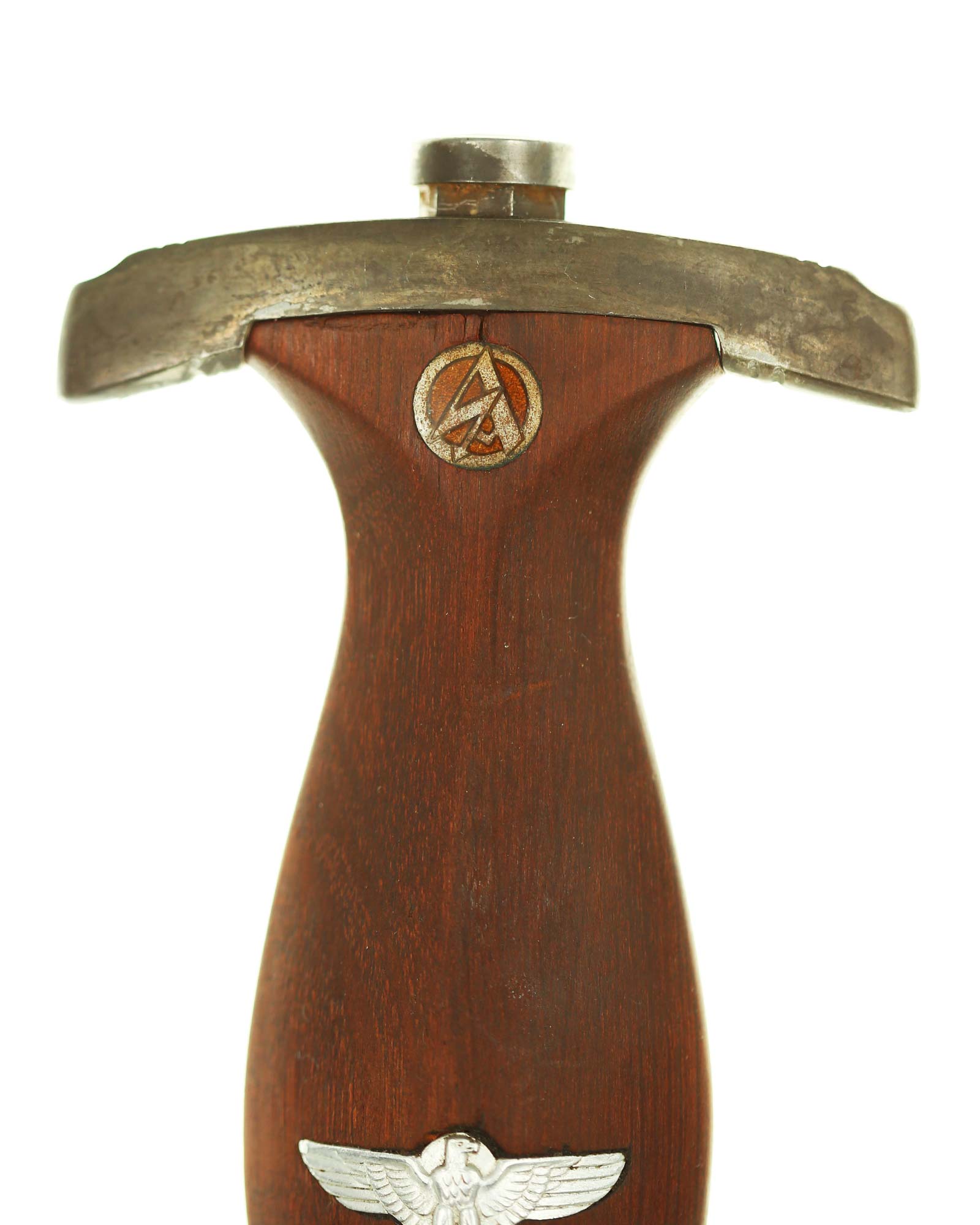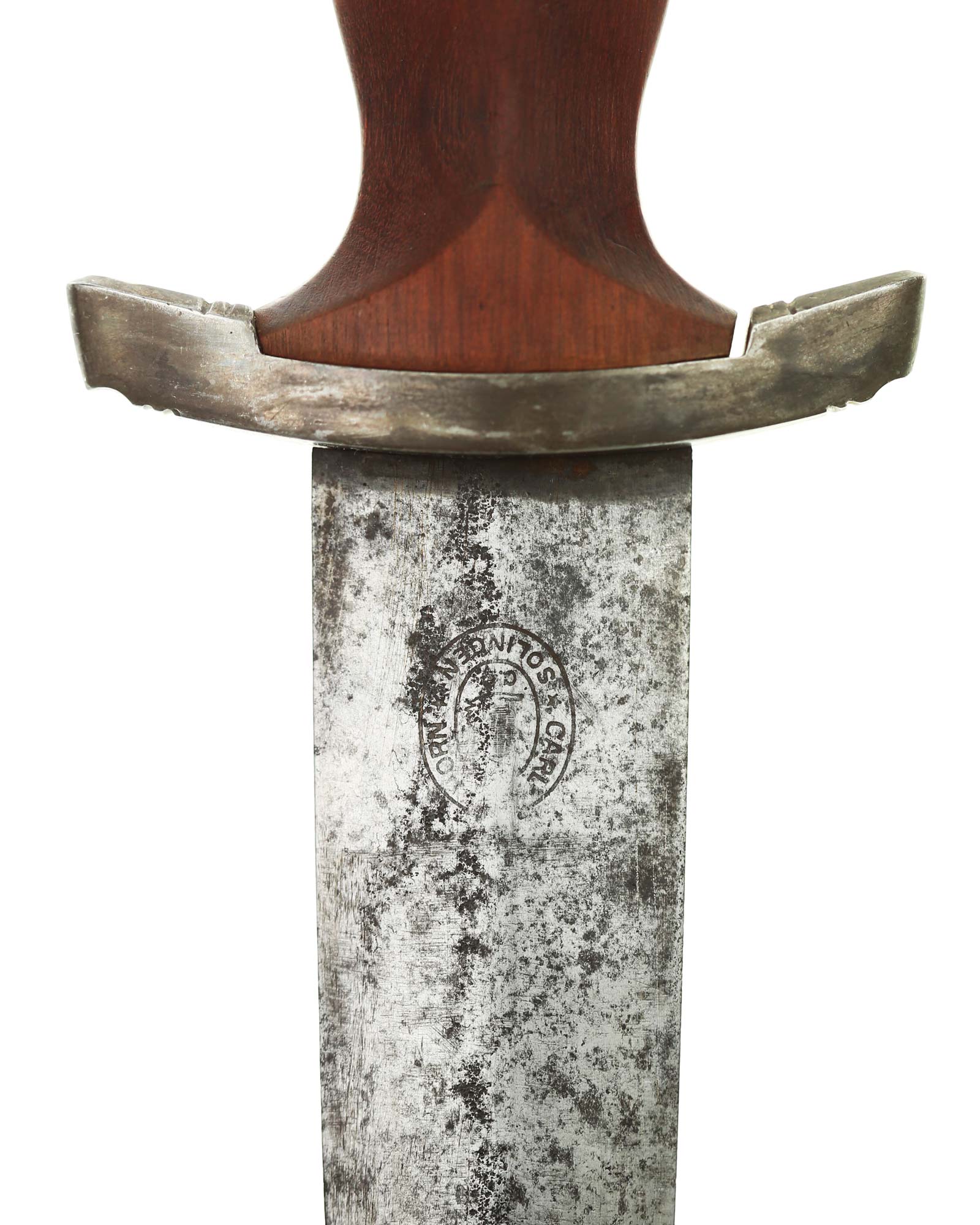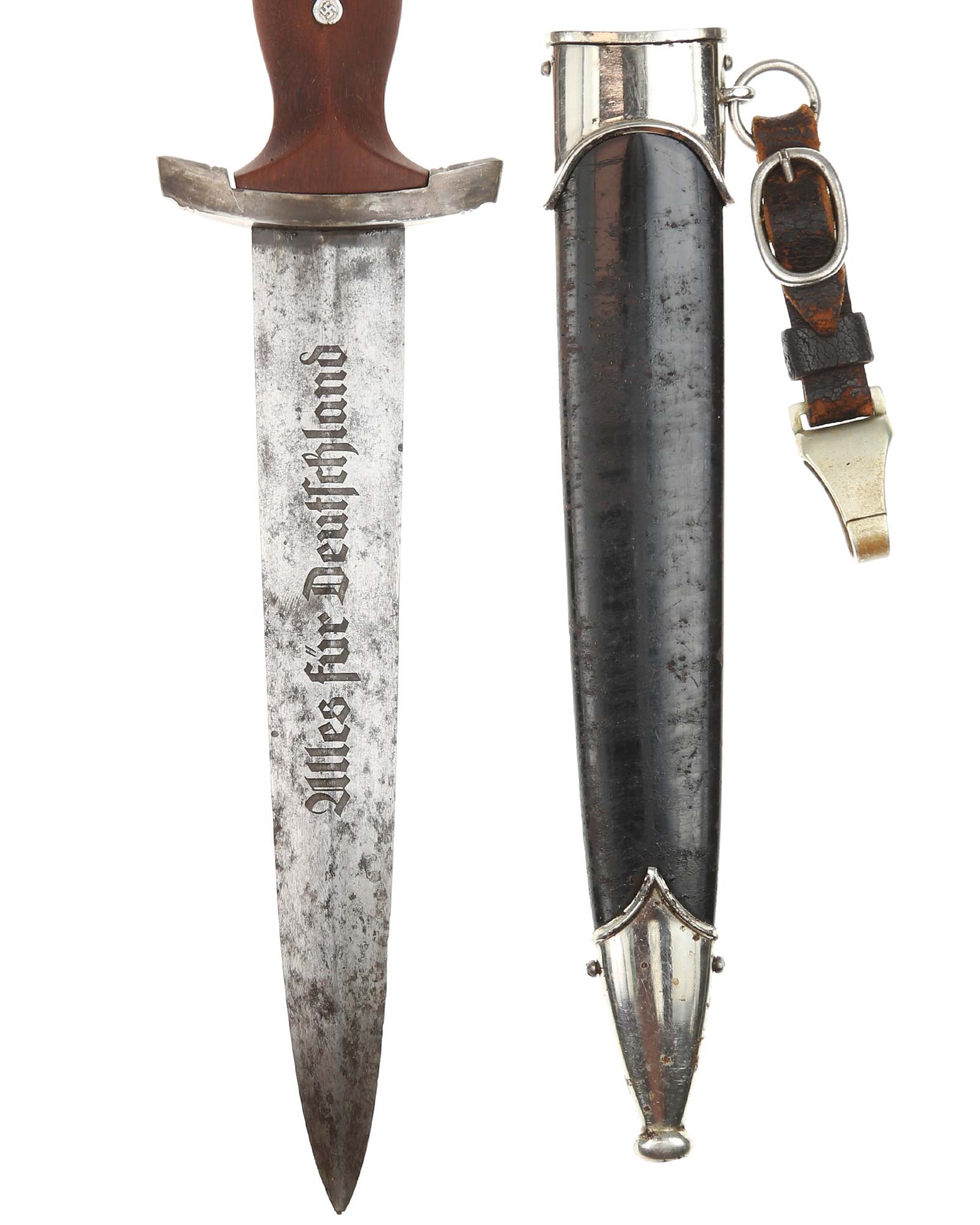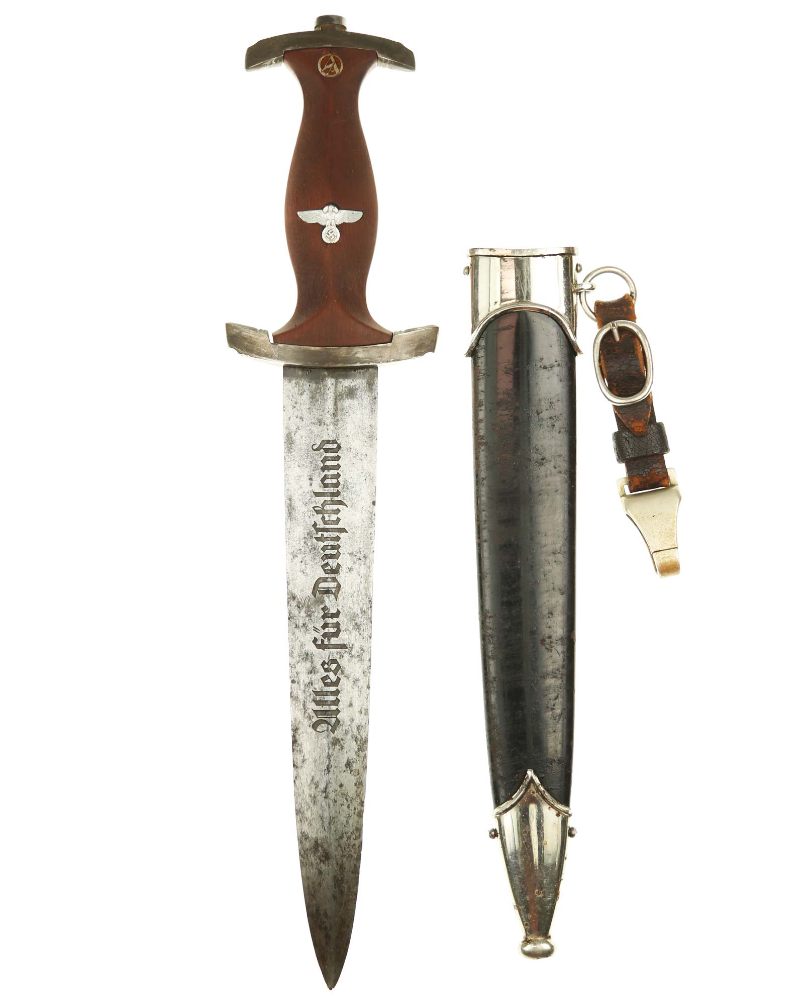 Blade: The blade of this example is still grades at about exc. The SA motto Alles für Deutschland «Everything for Germany» is deep. The company logo is on the reverse ricasso: Carl Eickhorn Solingen. The blade shoulders meet the crossguard contour.