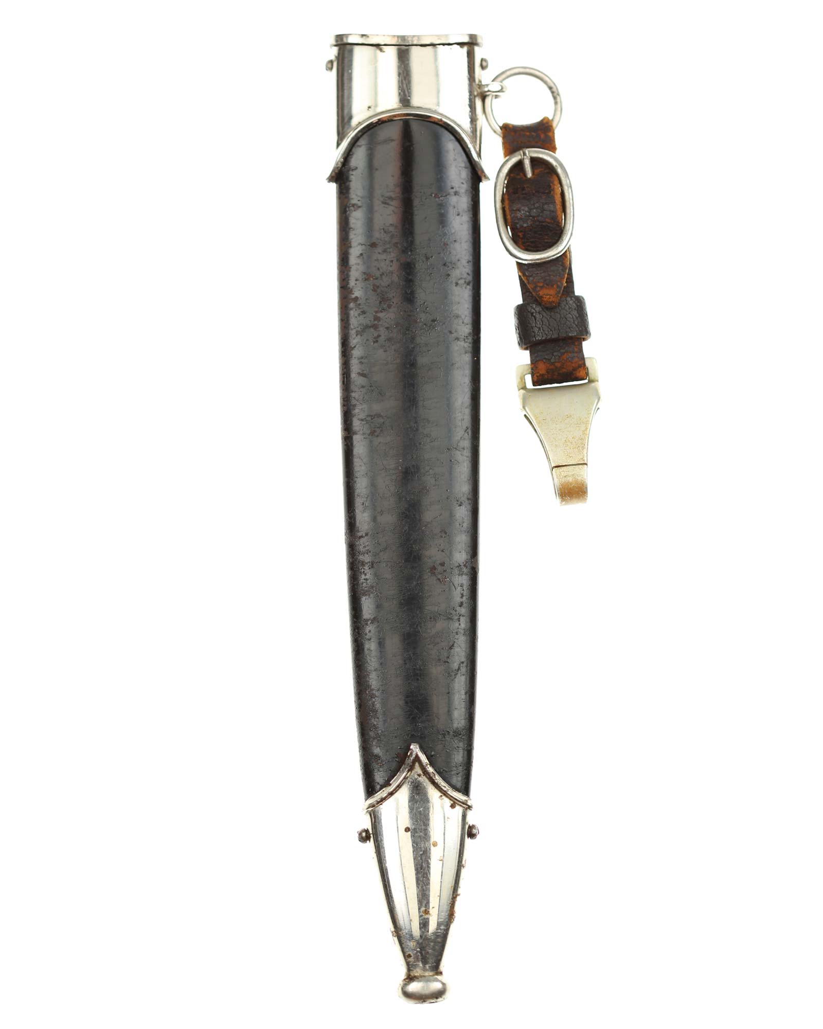 Scabbard: The scabbard shell is straight throughout. This shell has black paint. The nickel scabbard mounts are also in good condition. These mounts are retained by all four original nickel screws, which are all in place.