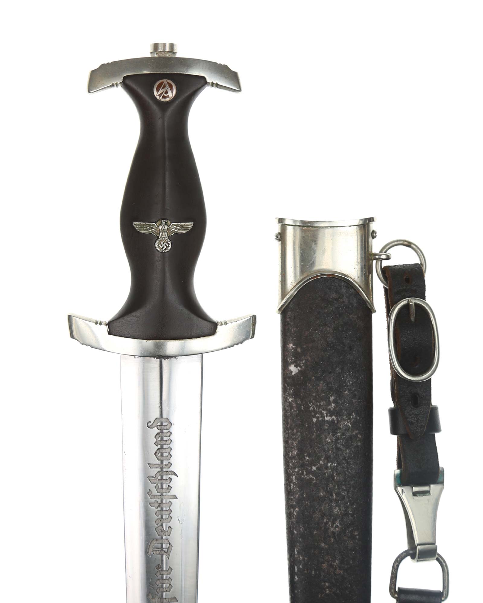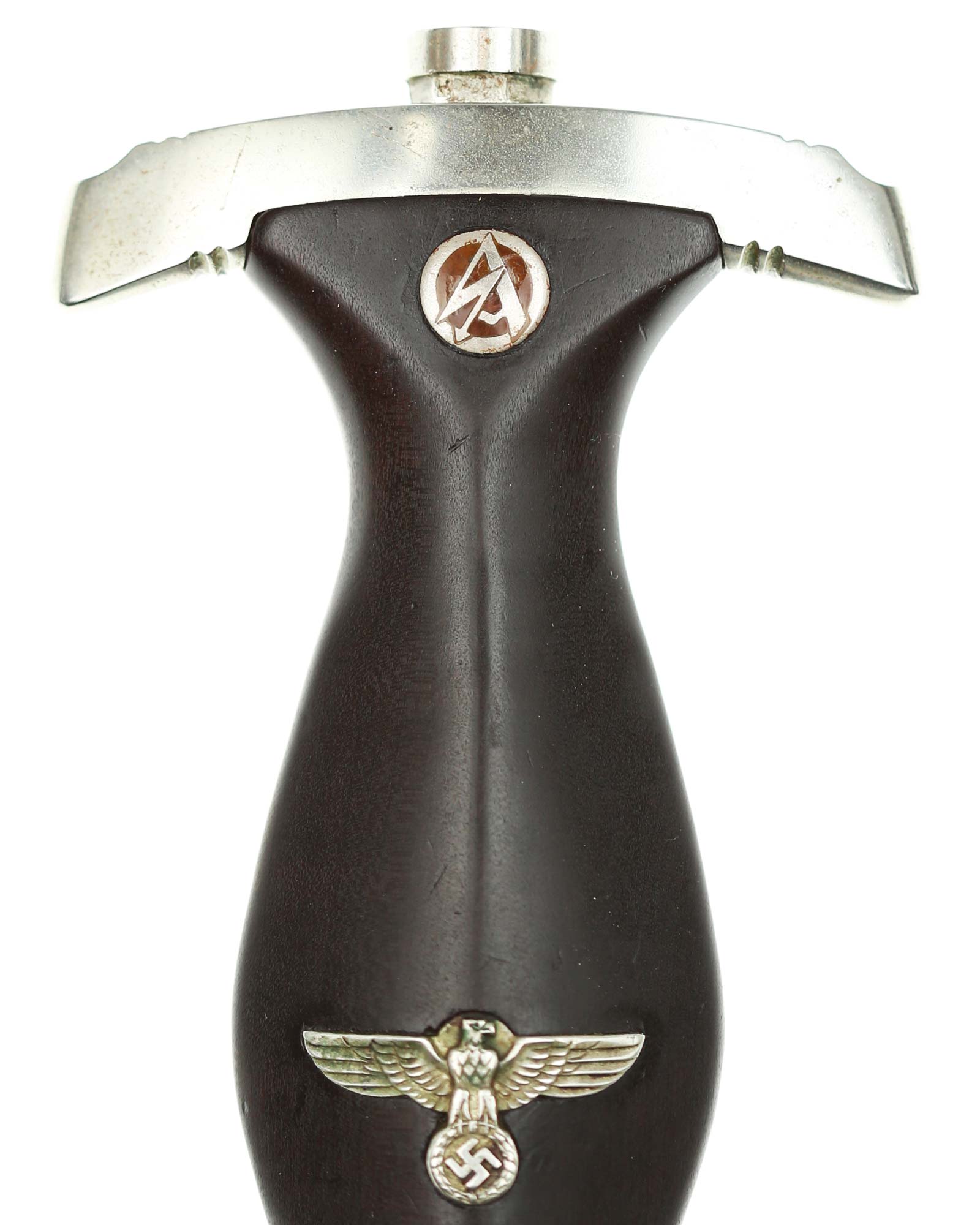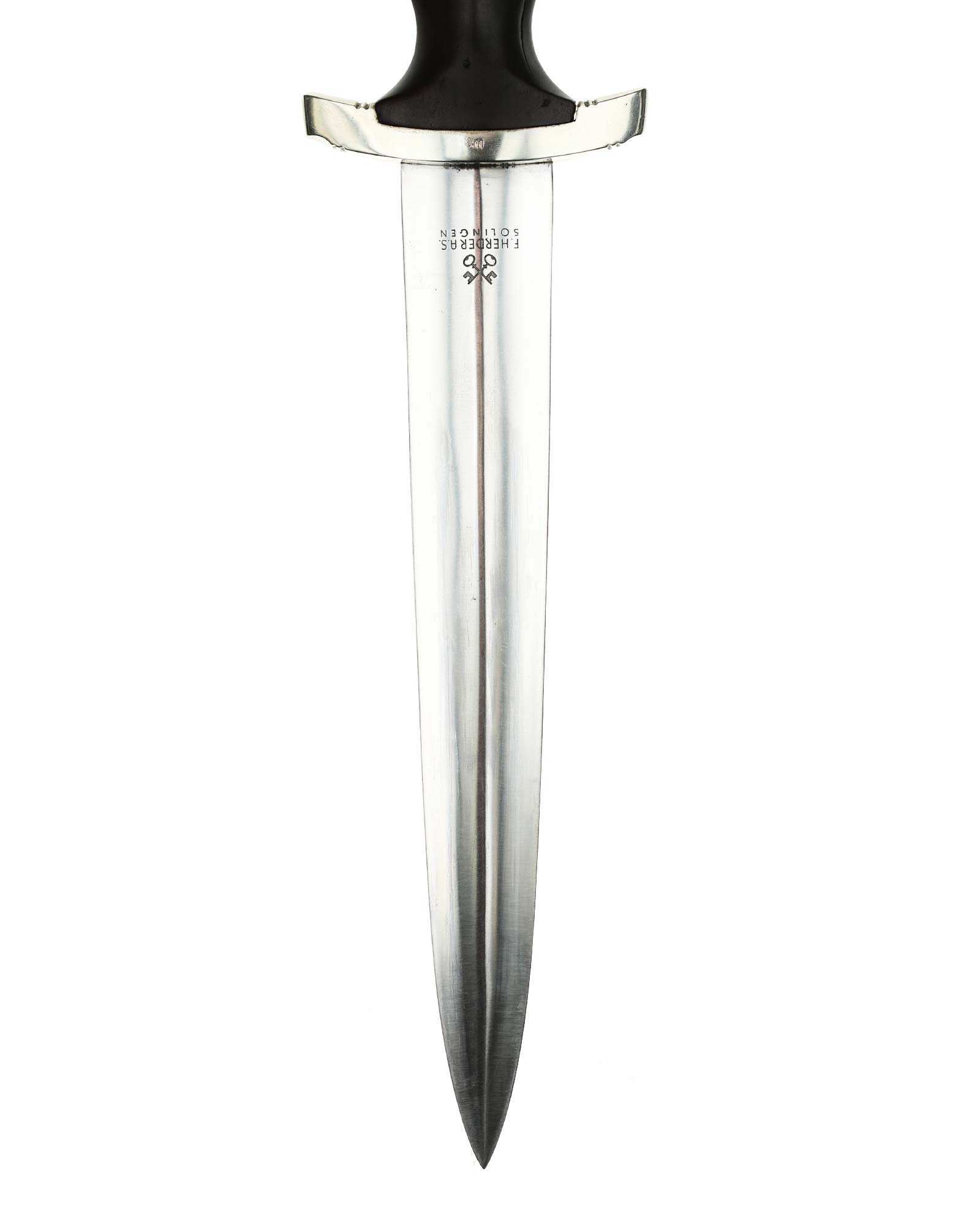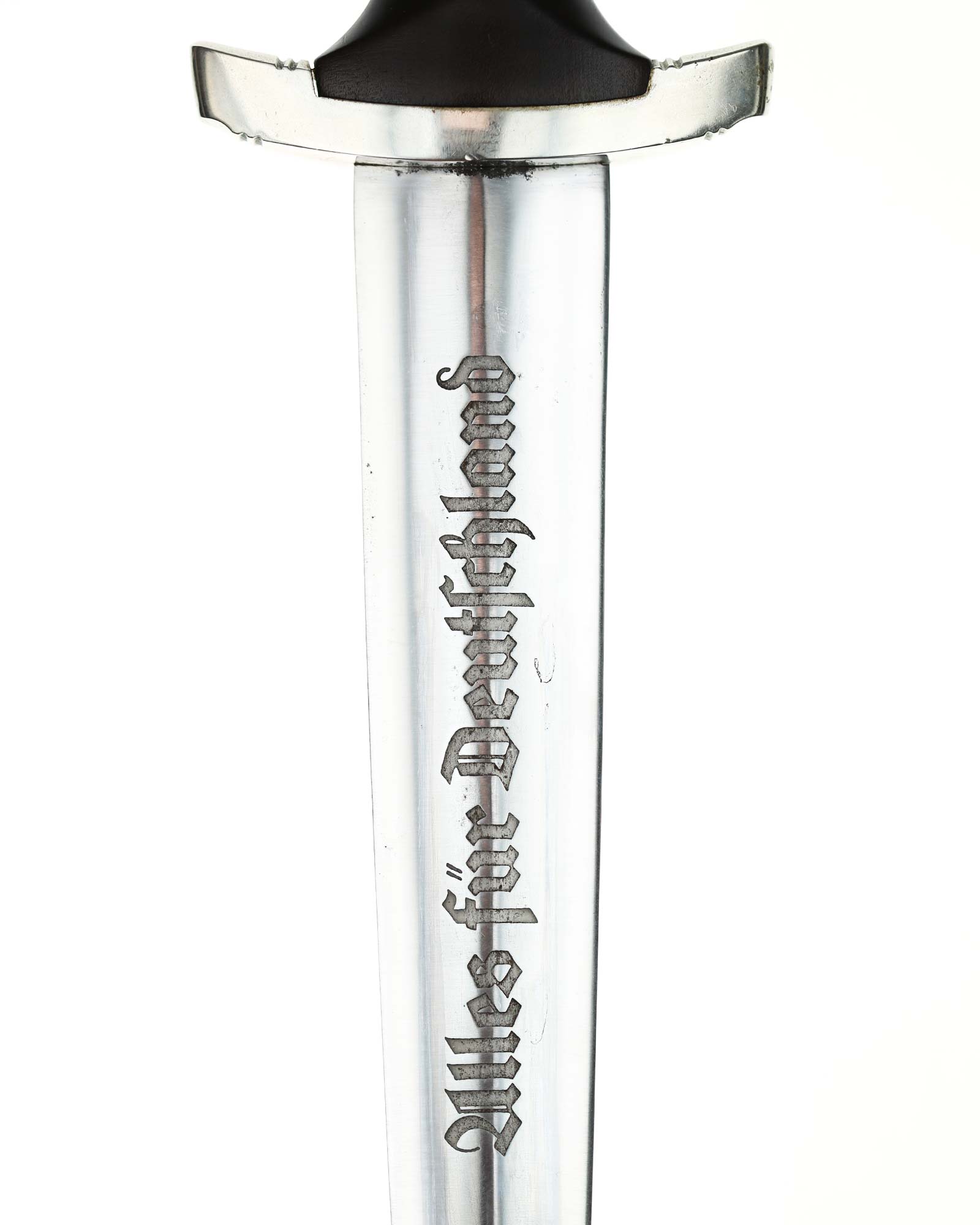 Blade: The blade of this example is still grades at about near mint. The SA motto Alles für Deutschland «Everything for Germany» is deep. The company logo is on the reverse ricasso: F. Herder Solingen. The blade shoulders meet the crossguard contour.