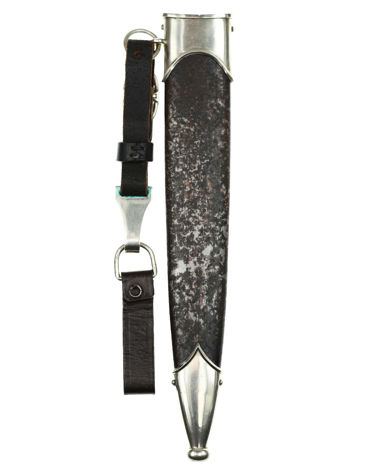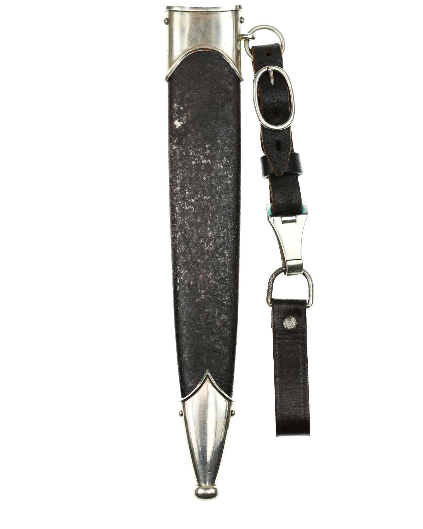 Scabbard: The scabbard shell is straight throughout. This shell has black paint. The nickel scabbard mounts are also in good condition. These mounts are retained by all four original nickel screws, which are all in place.