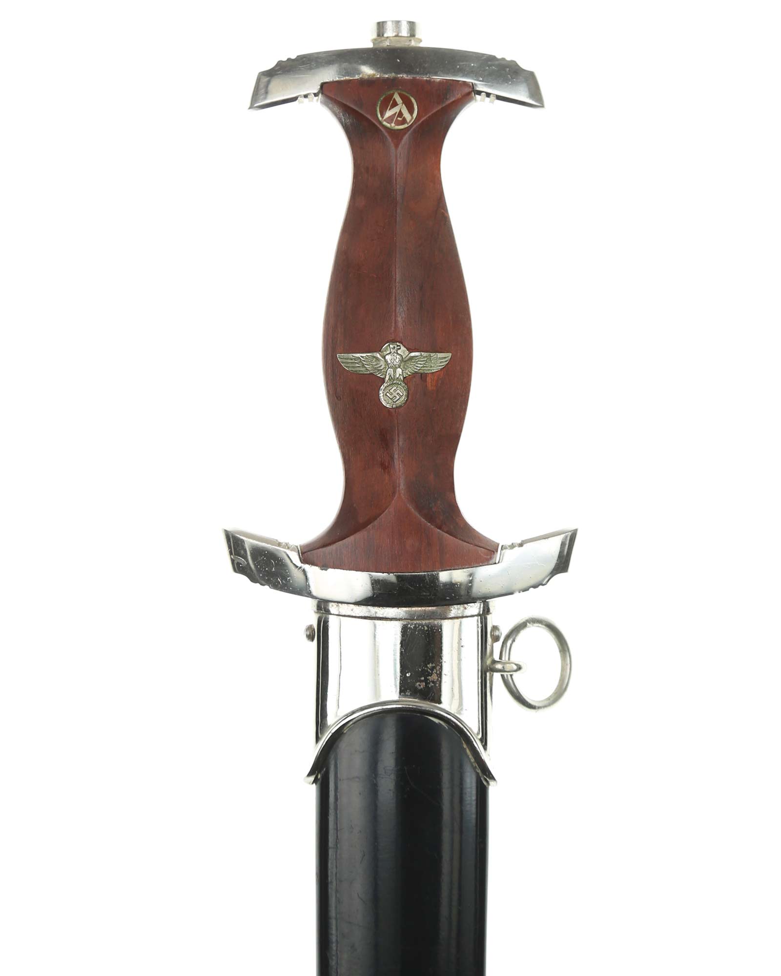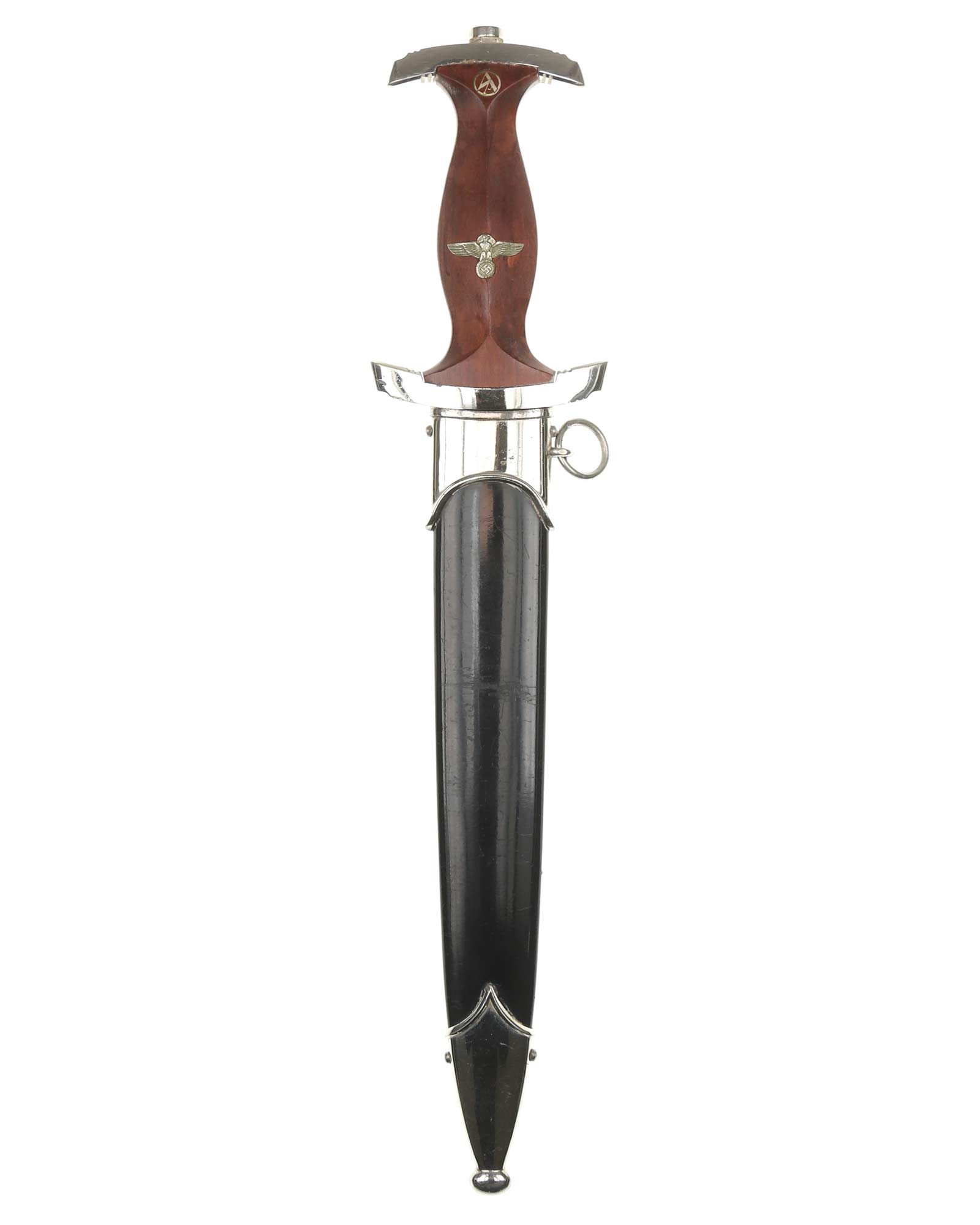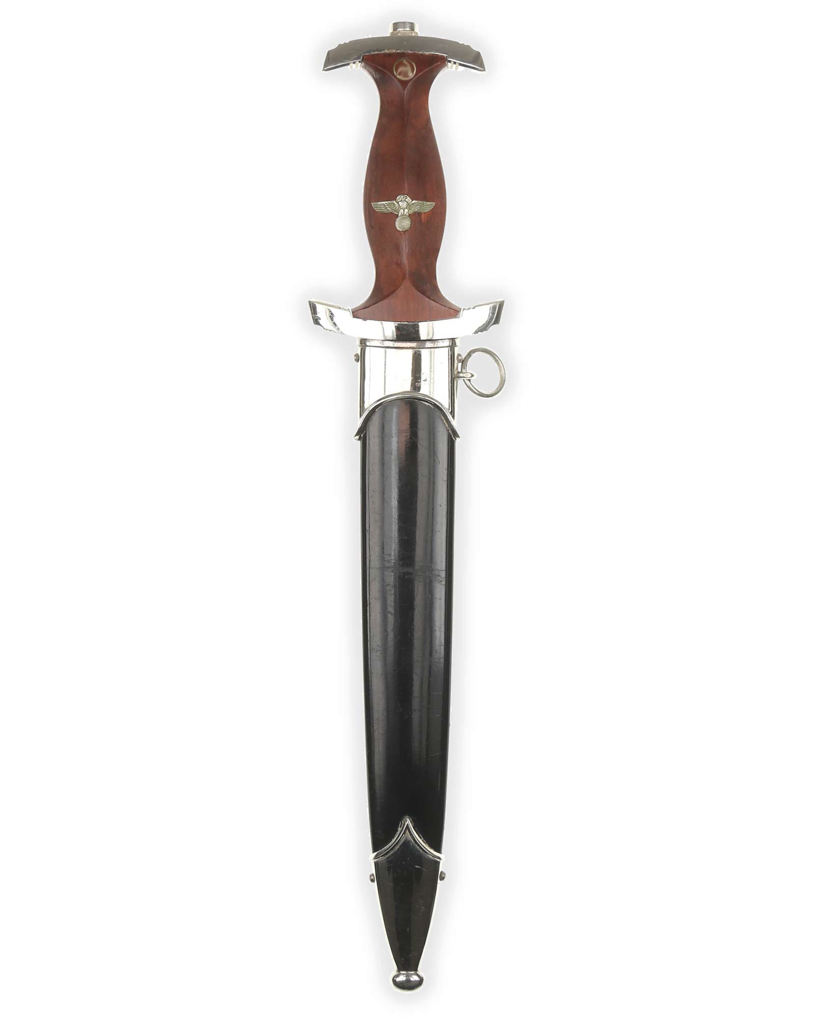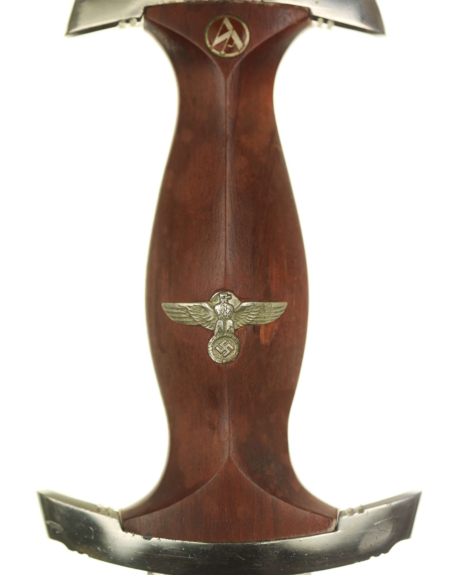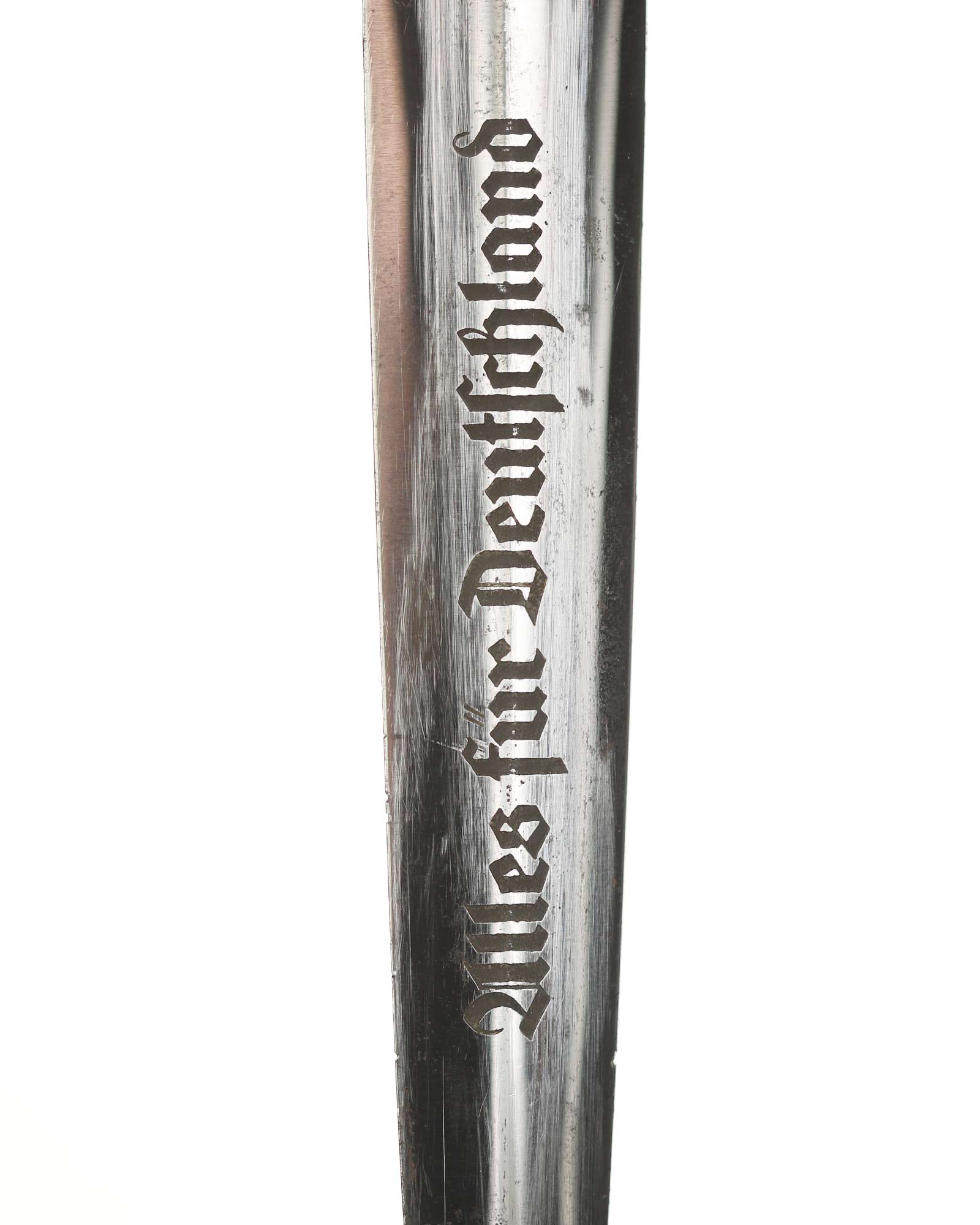 Blade: The blade of this example is still grades at about mint. The SA motto Alles für Deutschland «Everything for Germany» is deep and crisp. The company logo is on the reverse ricasso: RZM M7/66 and Eickhorn Solingen. The blade shoulders meet the crossguard contour.