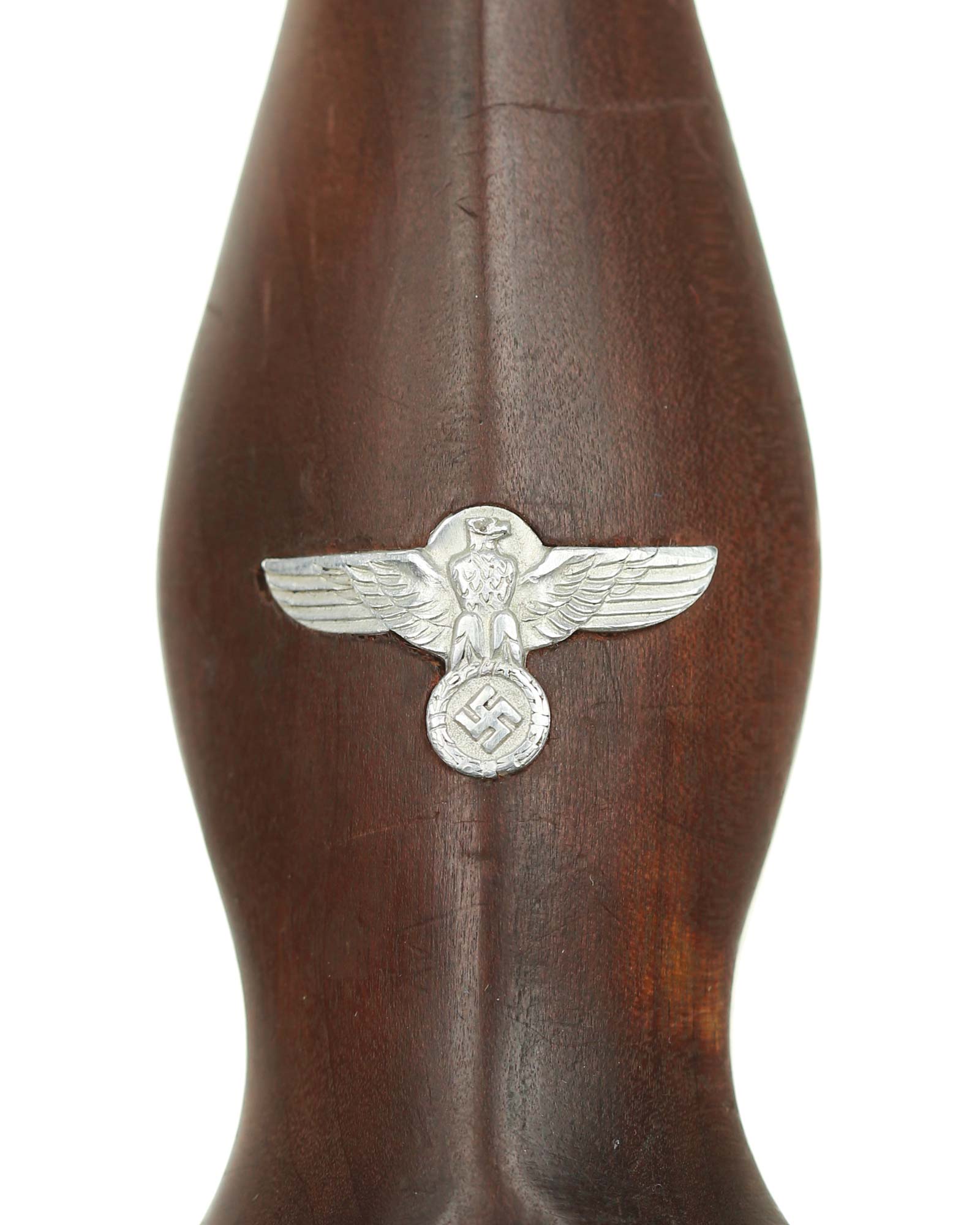 Grip: The walnut grip is a beauty. It is of High Ridge construction and in mint condition. The Grip is without SA runes, the nickel grip eagle is fully detailed throughout. It is the style with the upward pointing beak. The crossguards have excellent smooth surfaces, with well-defined edges and sharply cut accent grooves. The lower reverse guard is gruppe marked “Ns”.