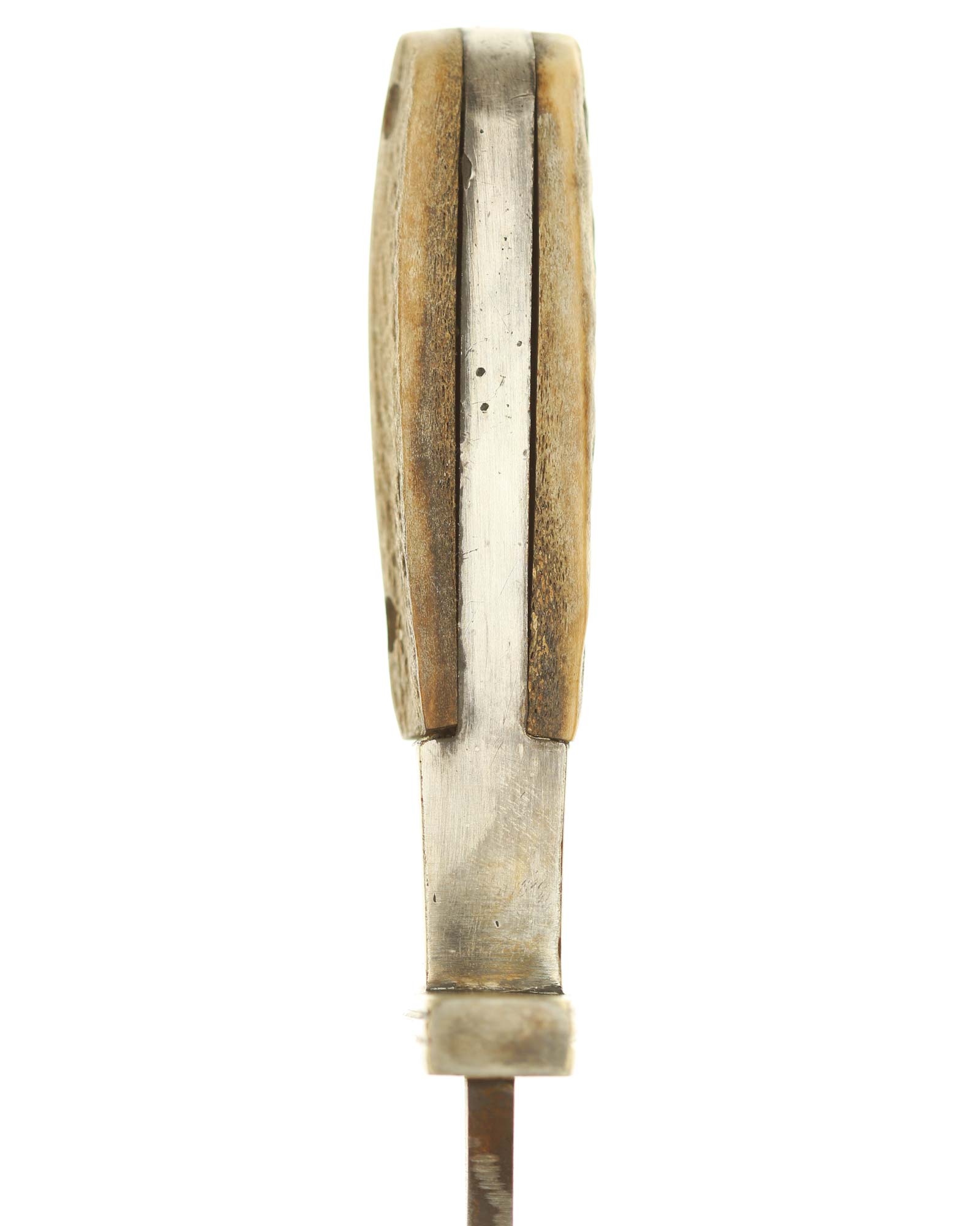 Grip: The grip plates are a most beautiful antler and fit the dagger flawlessly. These stag grips match each other in terms of color tones in both the surfaces, which get lighter towards the tips. The edges are well as the trimmed areas are turning a fine, golden color.
