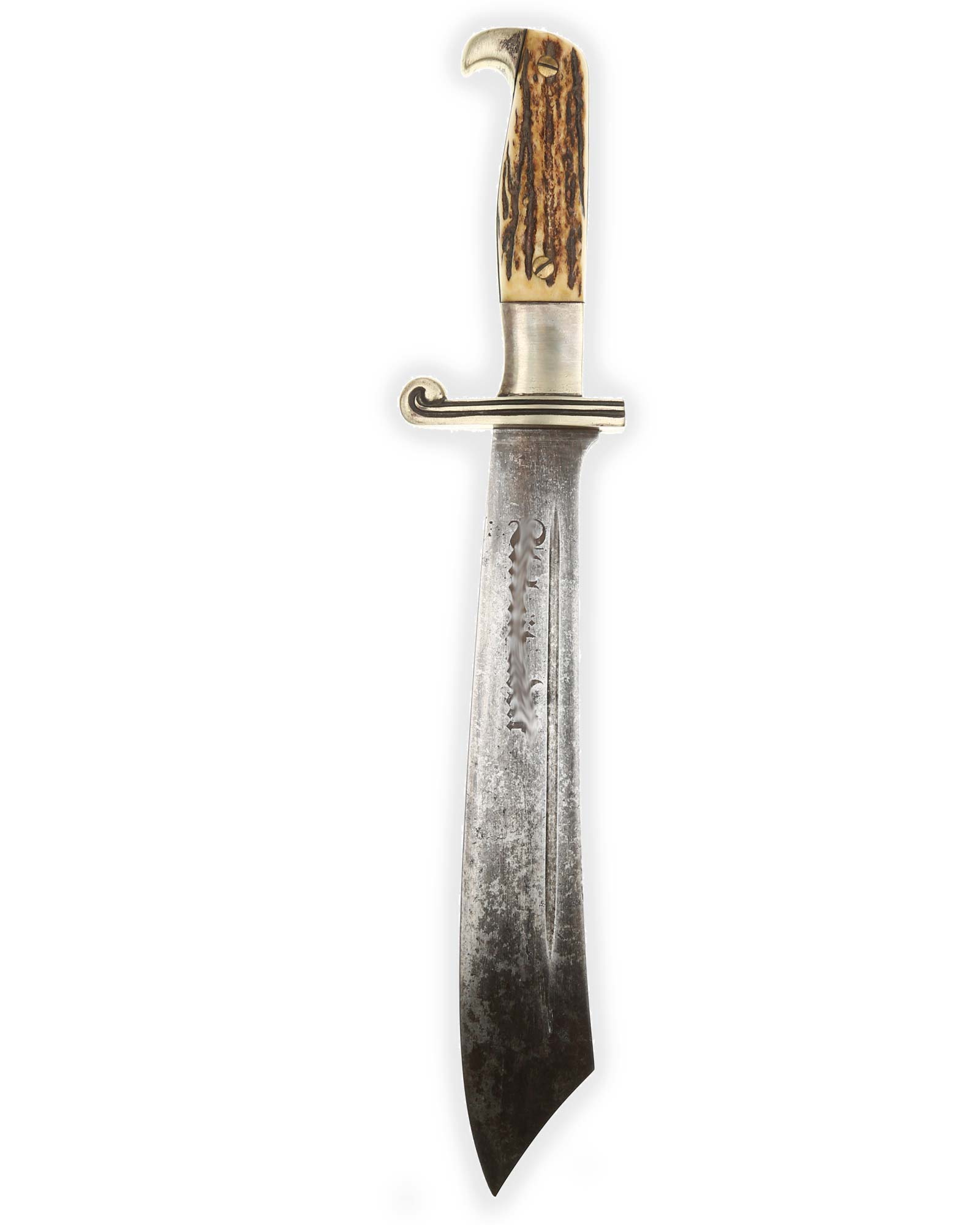 Blade: The blade is in EXC+ condition and it has the typical matte finish and the Bowie-style end, with a fine narrow fuller. The obverse facing bears the RAD motto, “Arbeit Adelt”. This motto has 100% of the original factory background darkening. The reverse of this blade is etched with a RAD triangle and the protected patent term “Ges Gesch”.