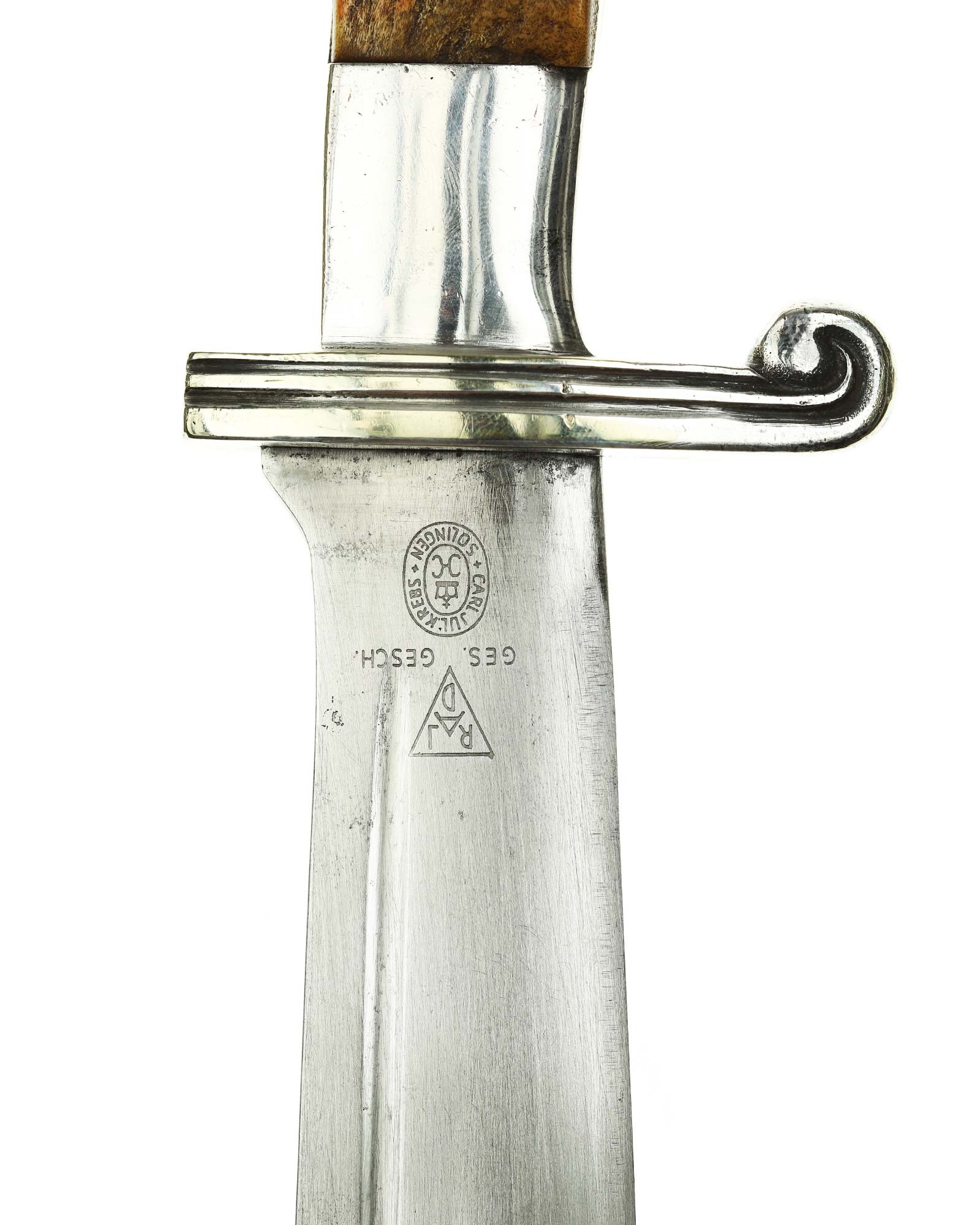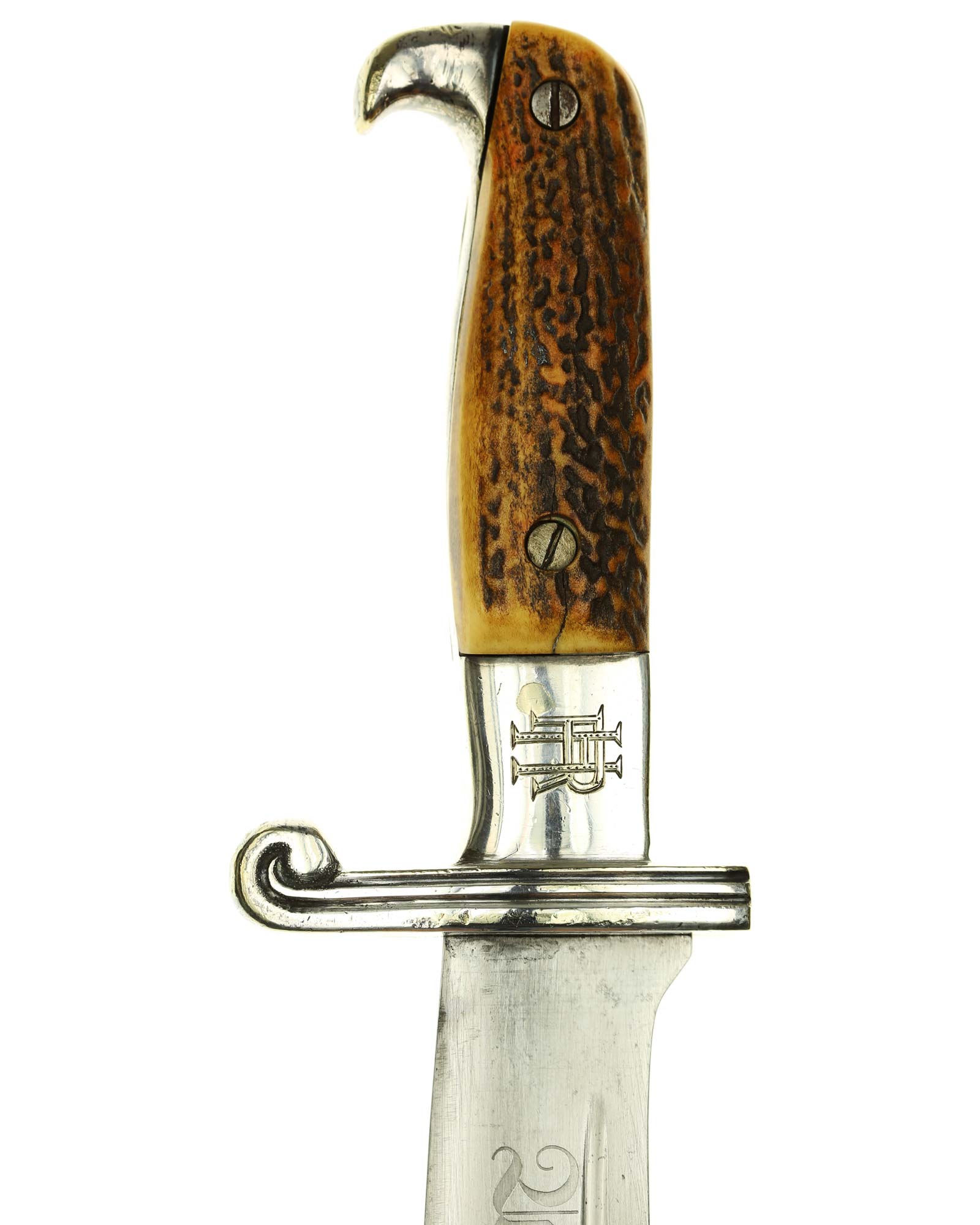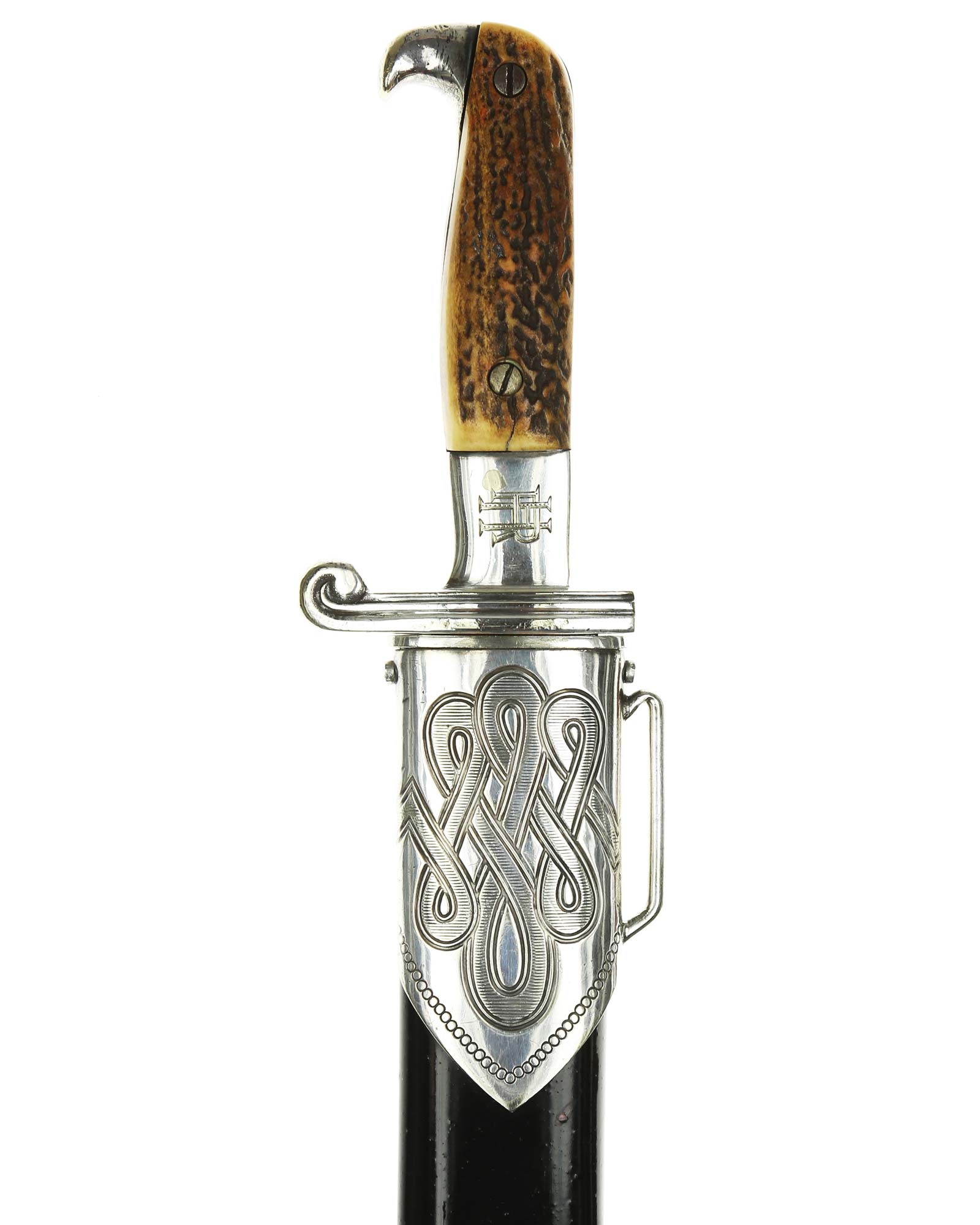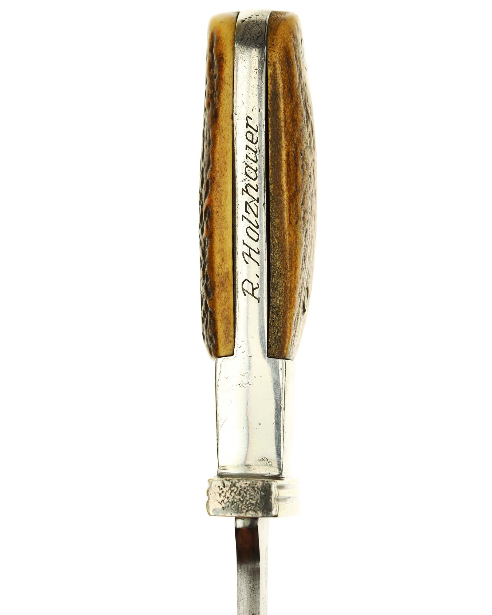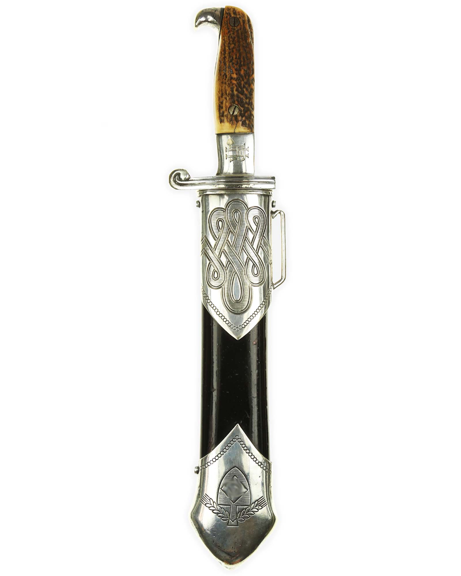 Grip: The grip plates are a most beautiful antler and fit the dagger flawlessly. The edges are well as the trimmed areas are turning a fine, golden color. The nickel-plated hilt mounts are intact, with no signs of any deterioration.