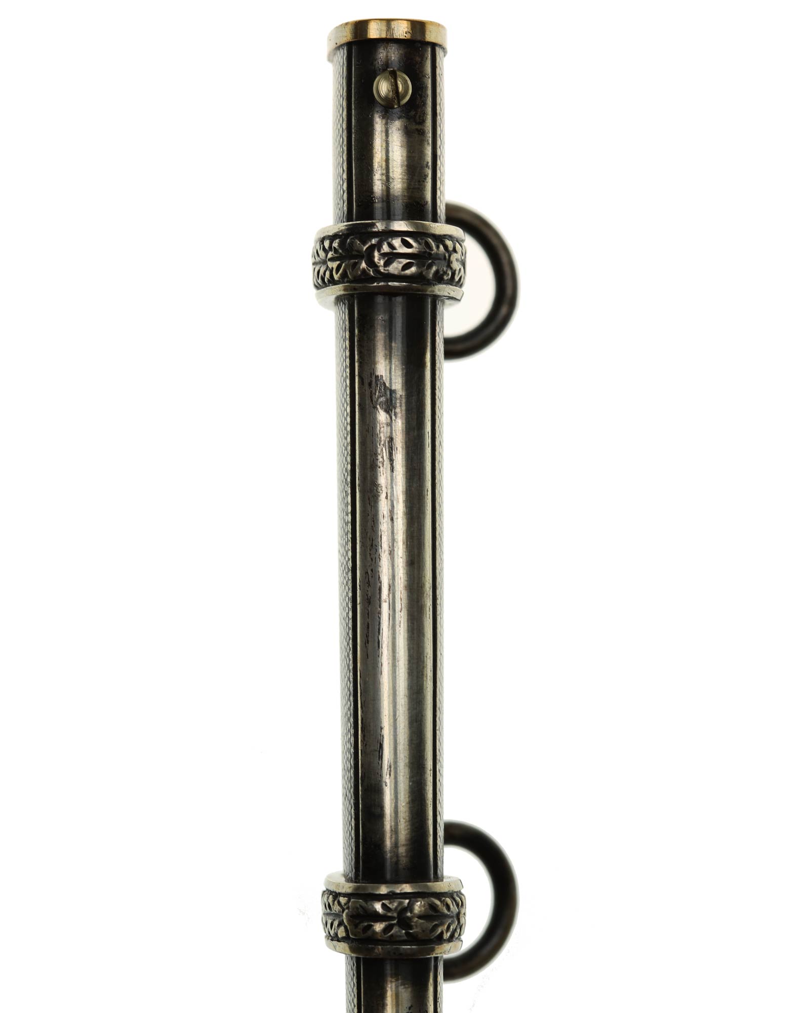 Scabbard: The scabbard is an outstanding example, having matching patination. This scabbard has excellent pebbled panels and good overlapping oak leafing to the bands.