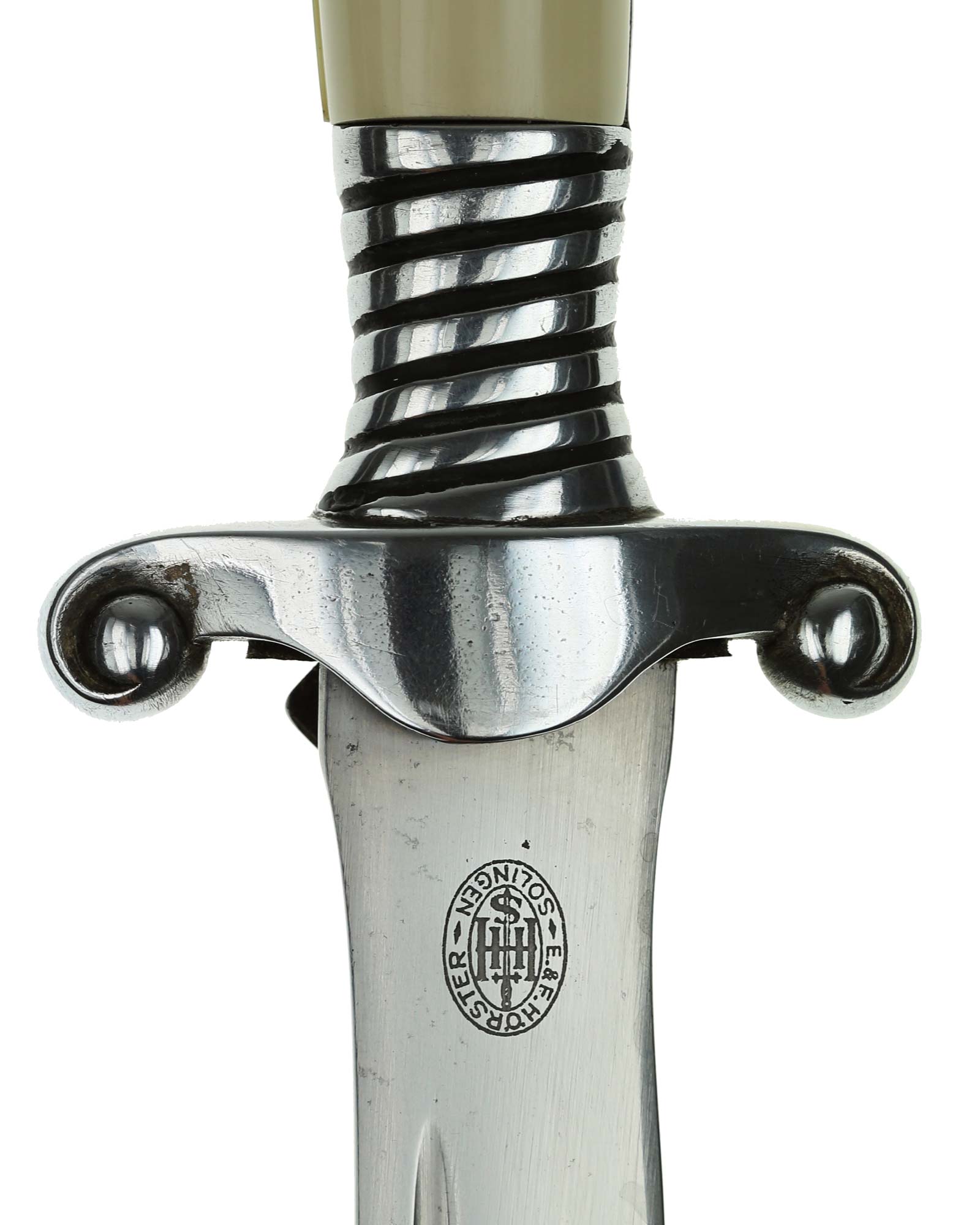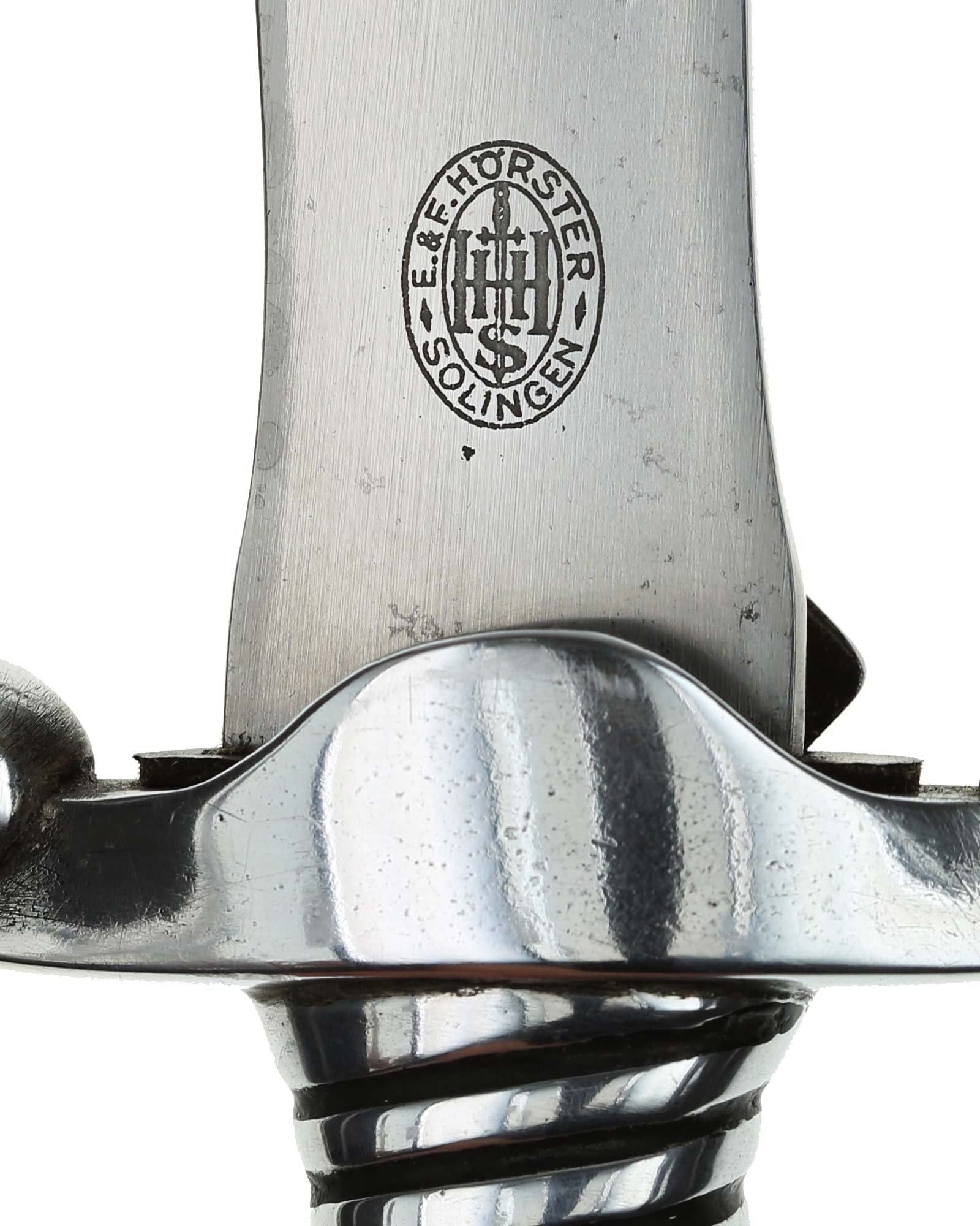 This RAD Officer's Dagger by Hörster is in near mint condition. Model 1937 for Leader. The total length is 39.9 cm. The Hewer has the maker mark on the blade: E. & F. Hörster Solingen.