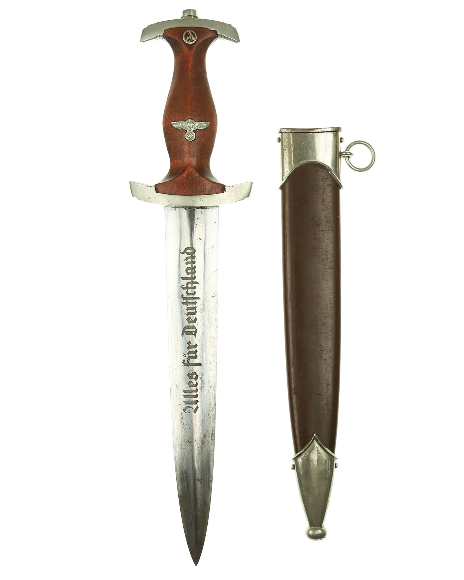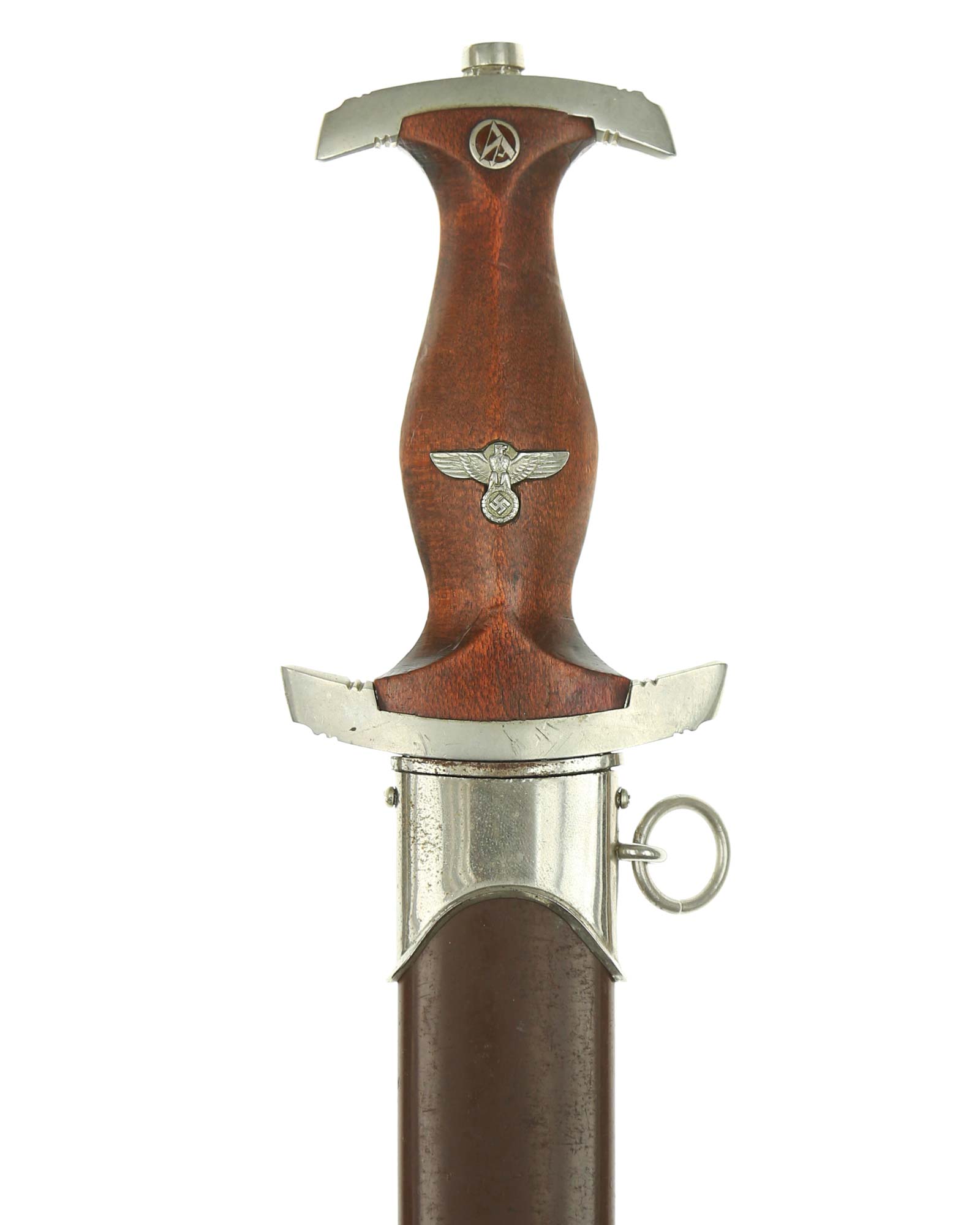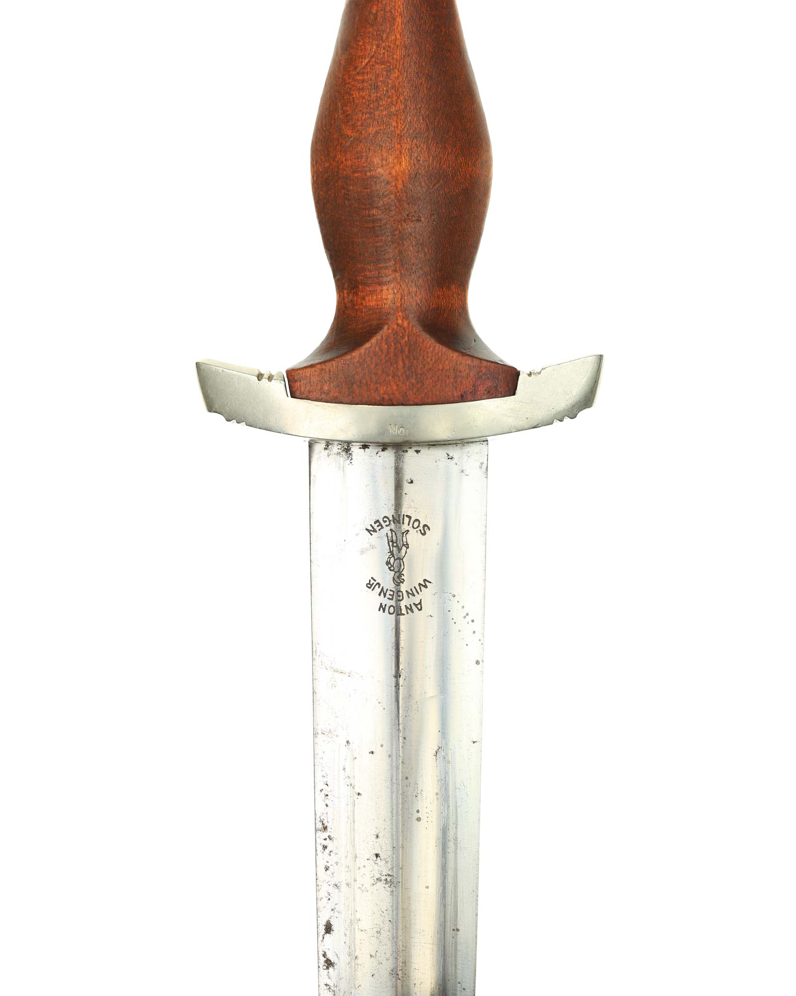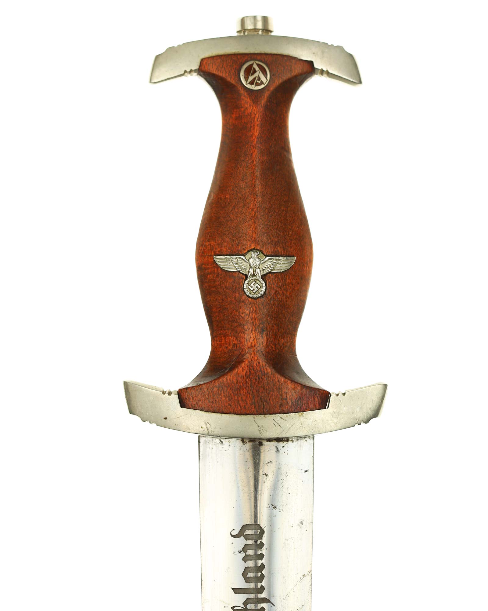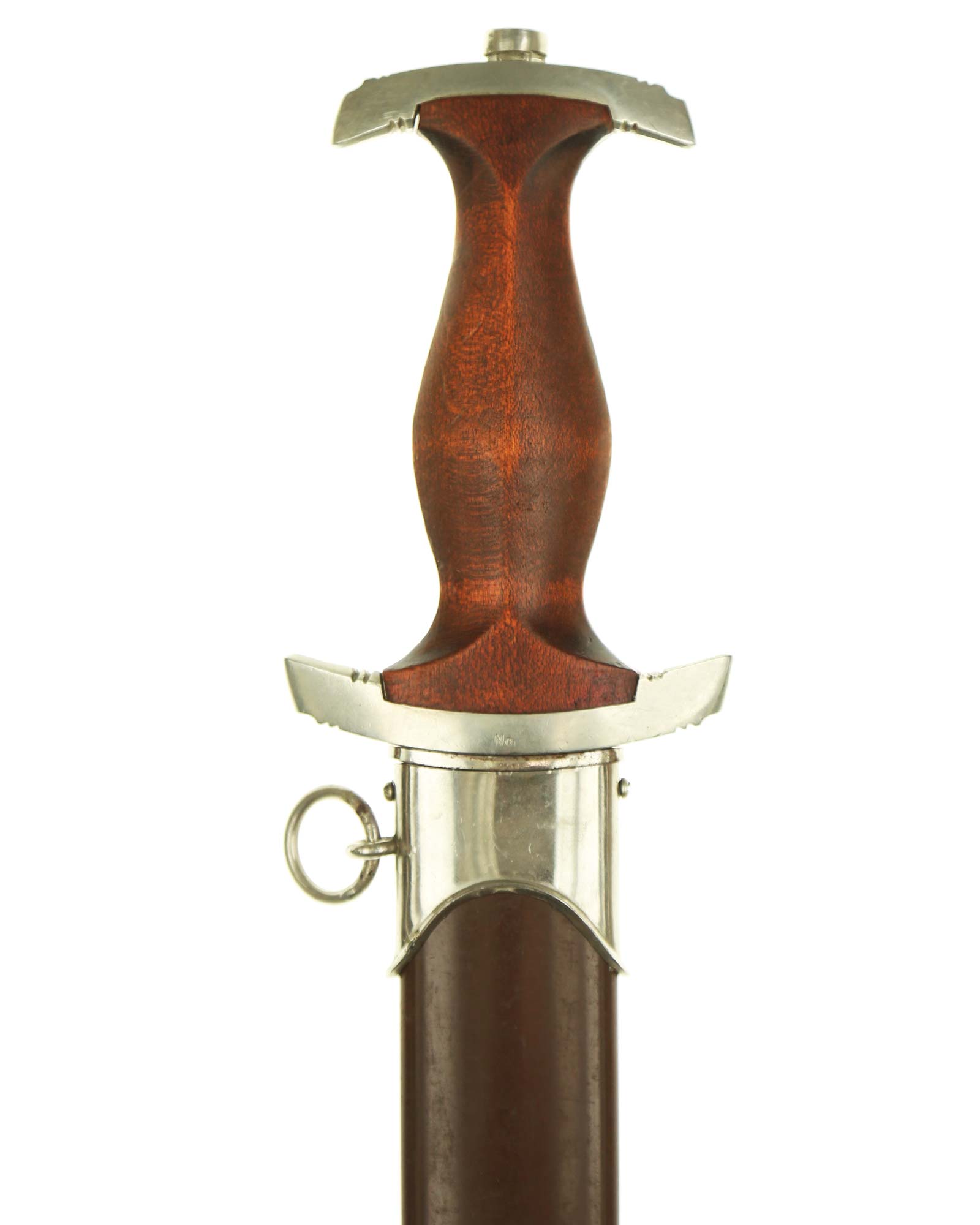 This SA [Sturmabteilung] Wingen Dagger in EXC++ condition. Model 1933. The total length is 38.0 cm. Early Nickel fittings, lower guard with "No" stamp. The Dagger has the maker mark on the blade: Anton Wingen Jr., Solingen.