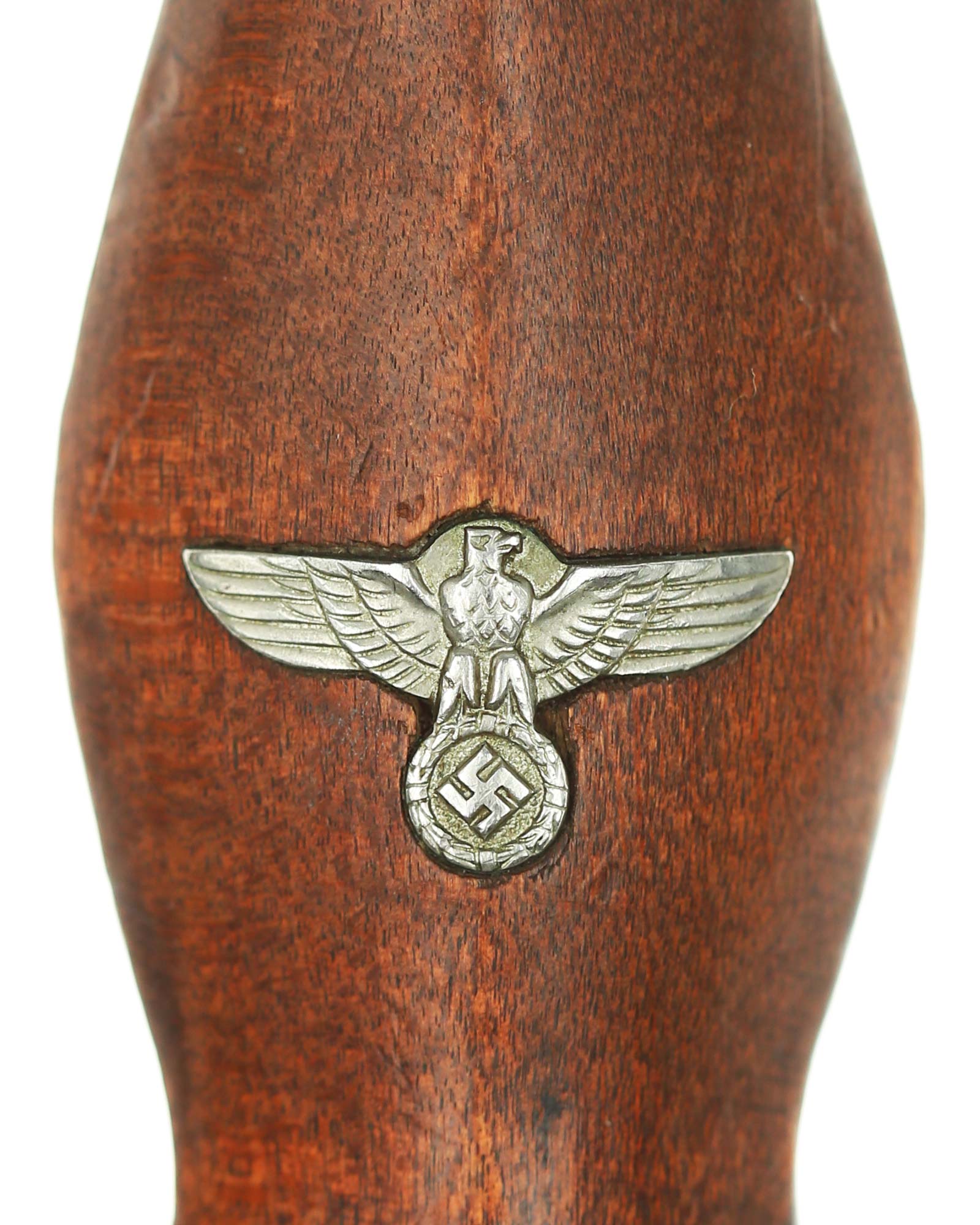 Grip: The grip is a beauty,i t is of High Ridge construction and in perfect condition. The SA runes button is nicely placed and has excellent enamel, while the nickel grip eagle is fully detailed throughout. It is the style with the upward pointing beak. The crossguards have excellent smooth surfaces, with well-defined edges and sharply cut accent grooves. The lower reverse guard is gruppe marked “No”.