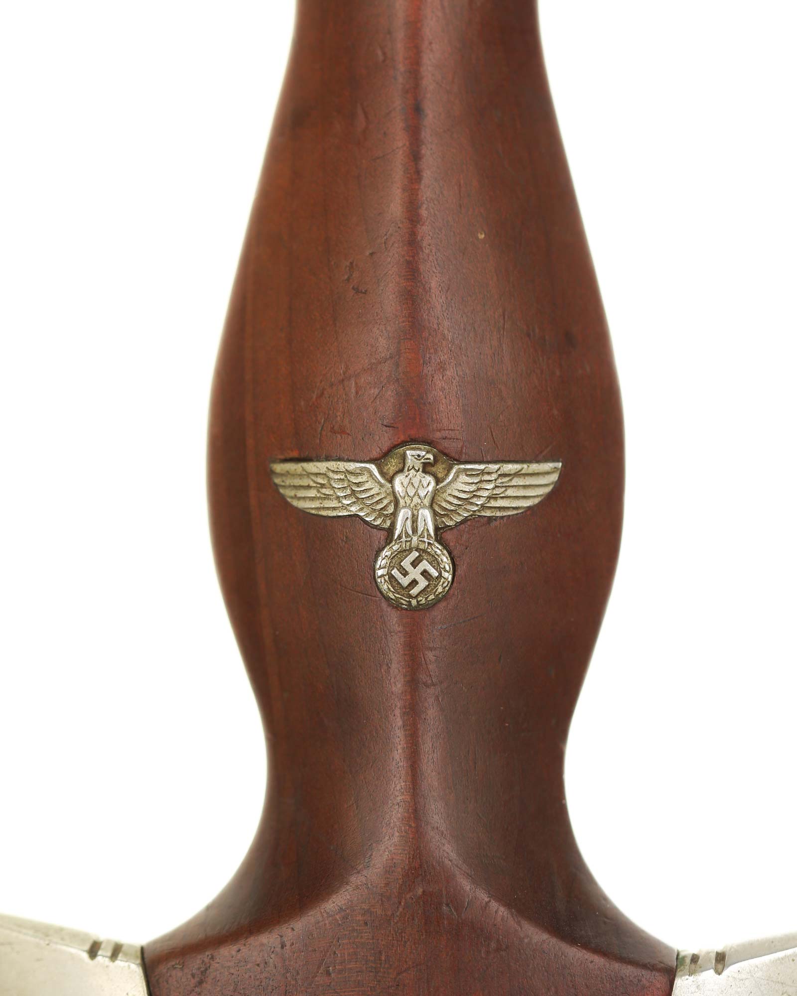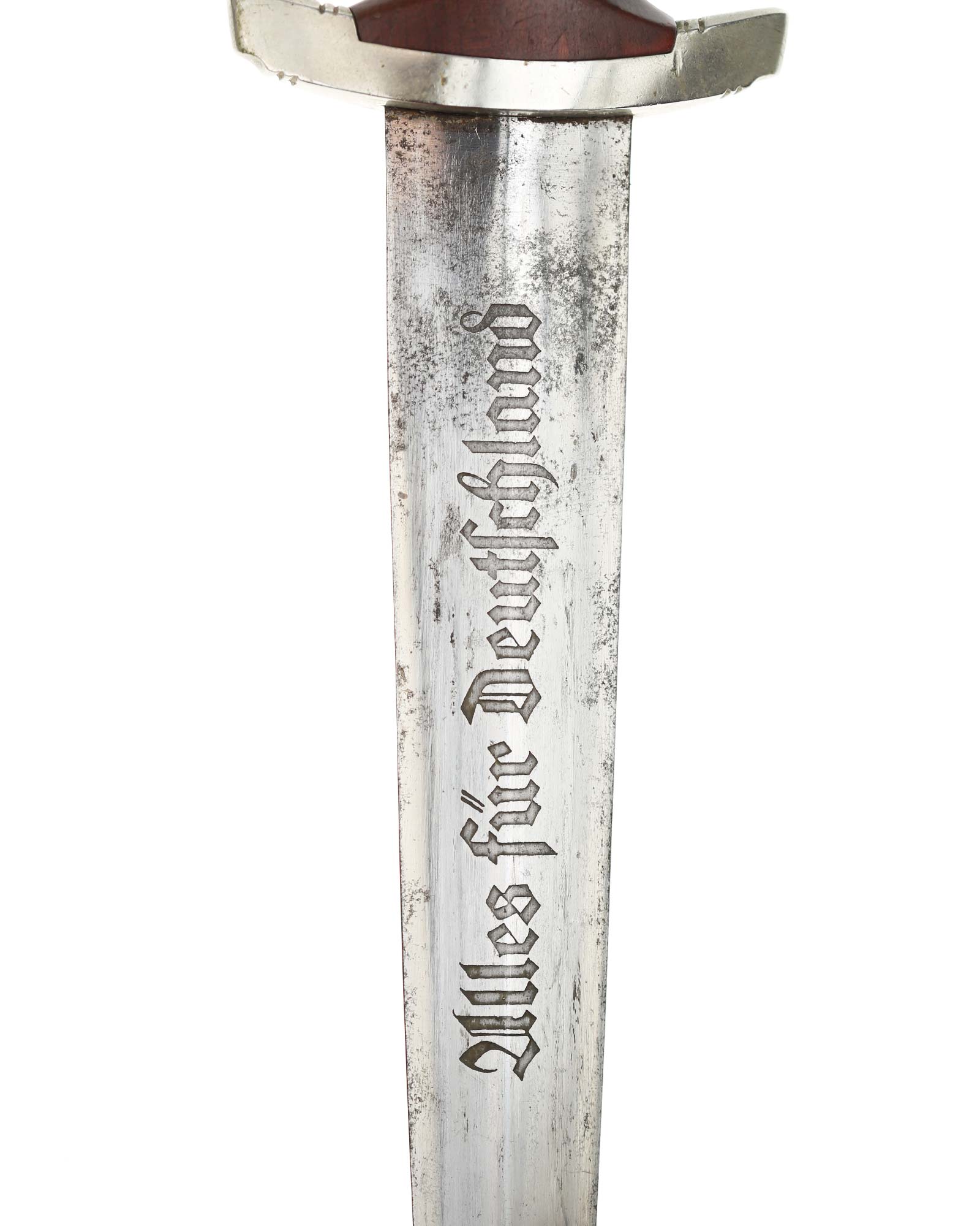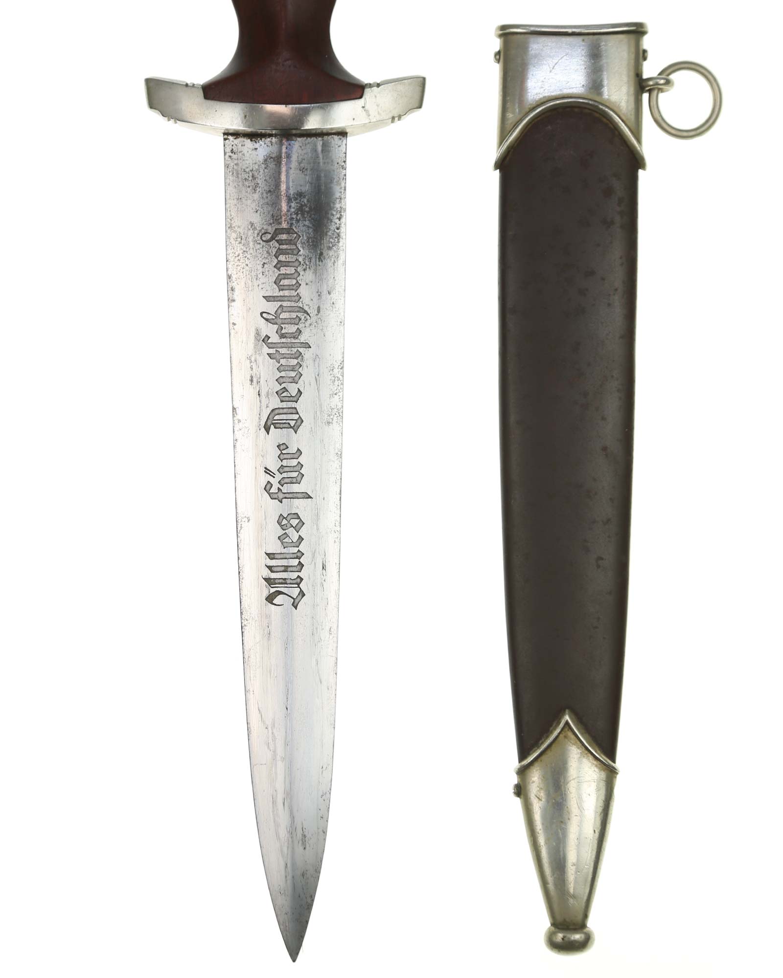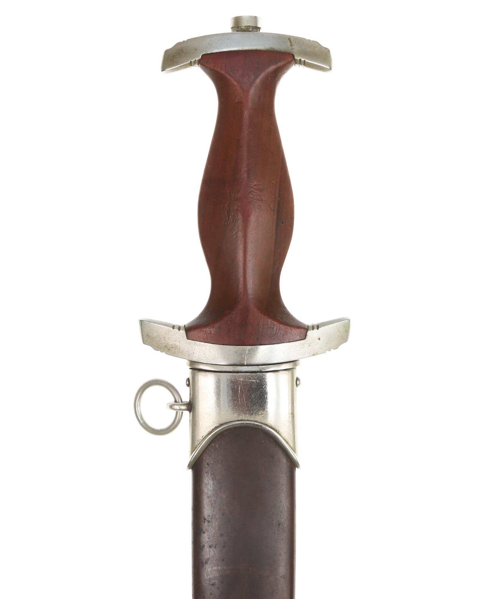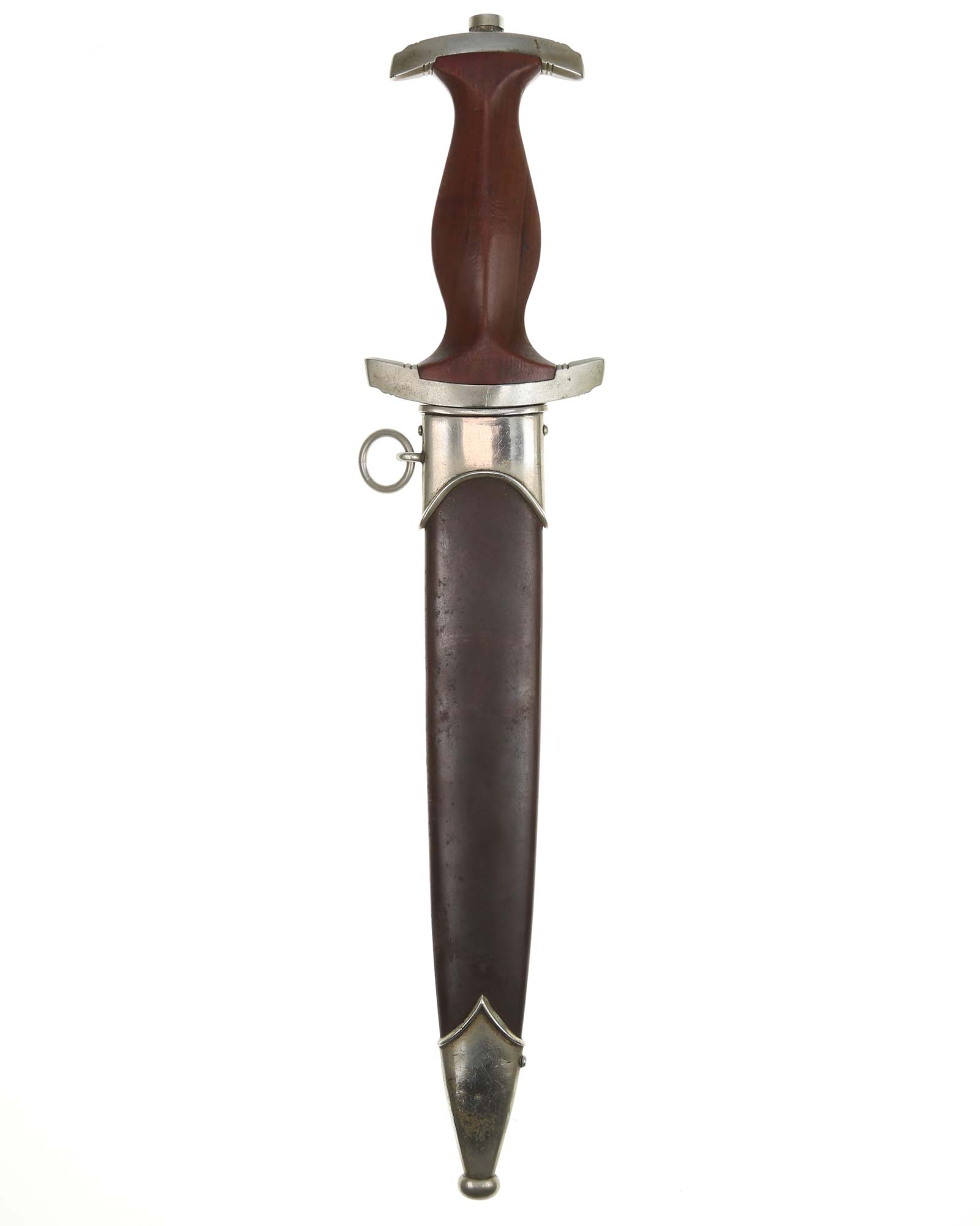 This SA [Sturmabteilung] Dagger in EXC+ condition. Model 1933. The total length is 37.3 cm. Early Nickel fittings, lower guard with «Wm» stamp. The Dagger has the maker mark on the blade: Aug. Merten Solingen.