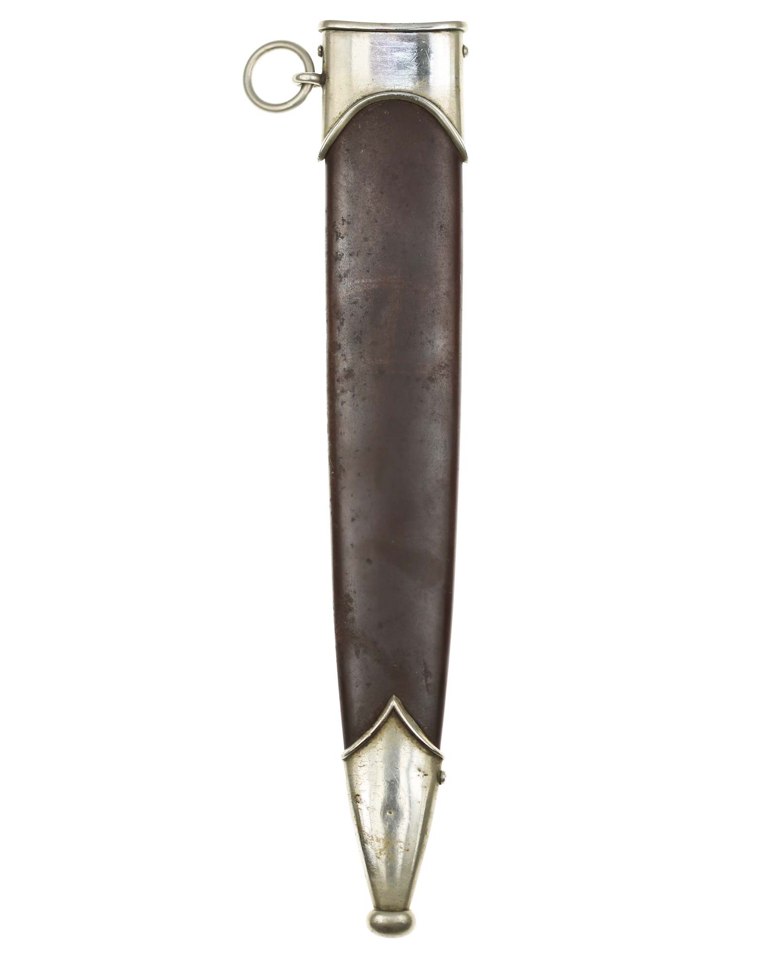 Scabbard: The scabbard shell is straight throughout. The mounts are also choice through to the lower ball. They exactly match the patination of the crossguards, and are retained by four nickel screws.
