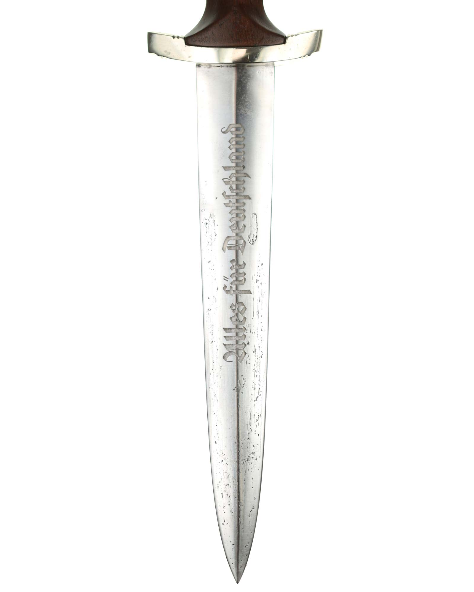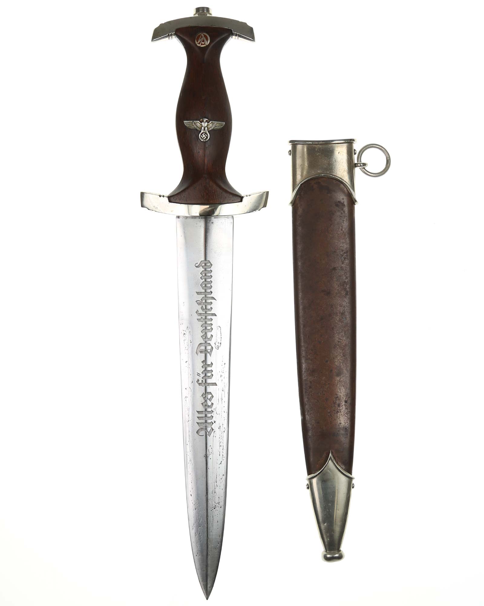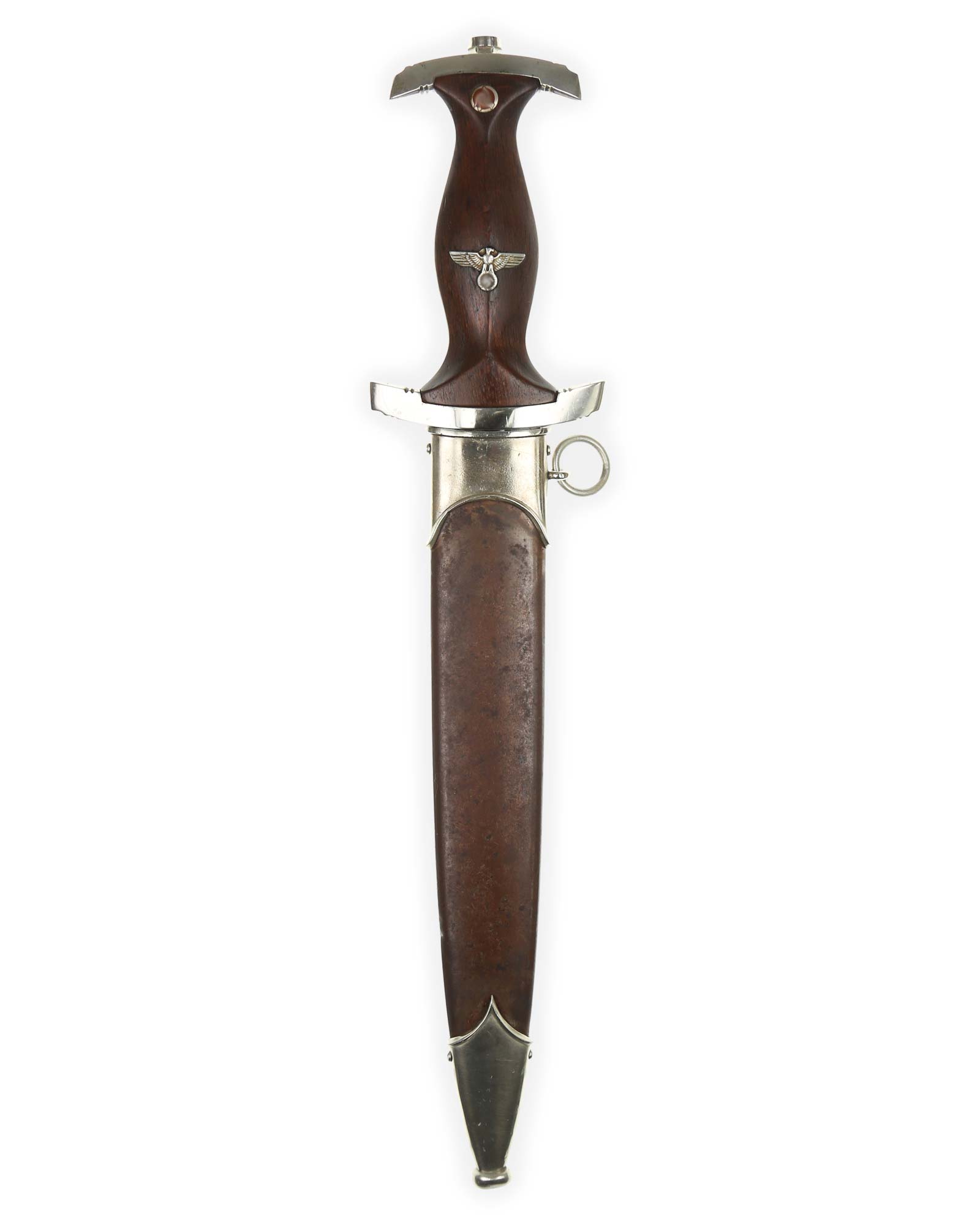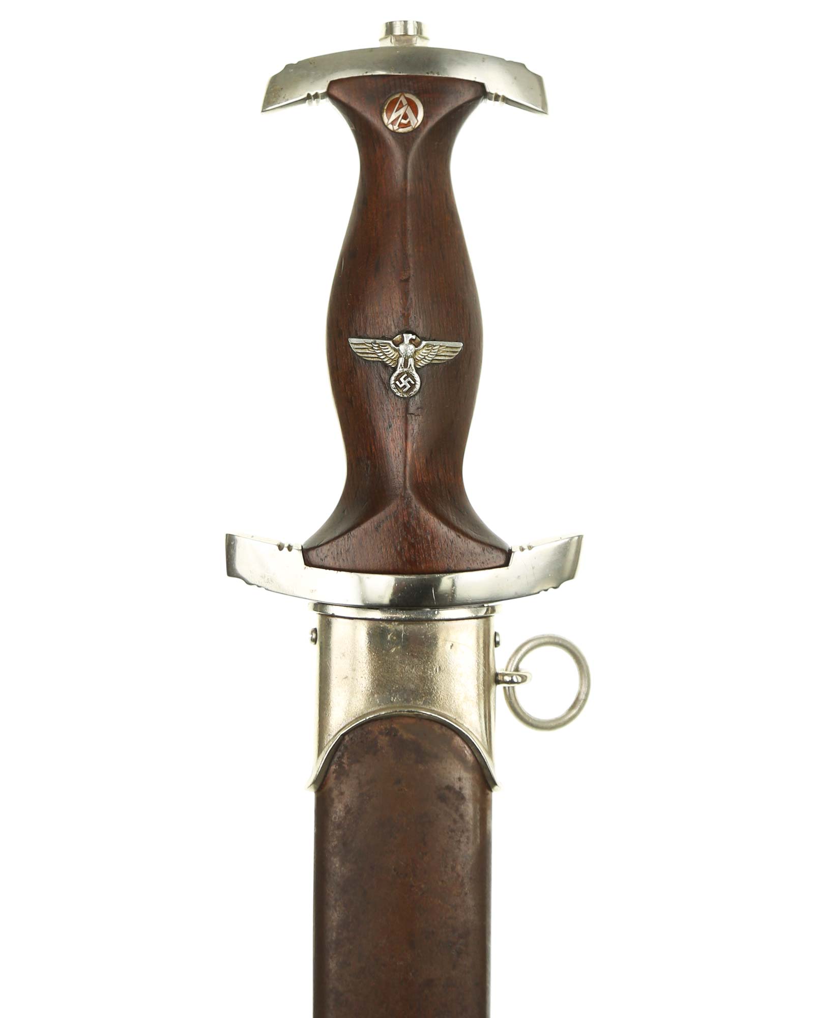 This SA [Sturmabteilung] Dagger in near mint condition. Model 1933. The total length is 37.0 cm. Early Nickel fittings. The Dagger has the maker mark on the blade: Carl Grah Solingen-Ohligs.