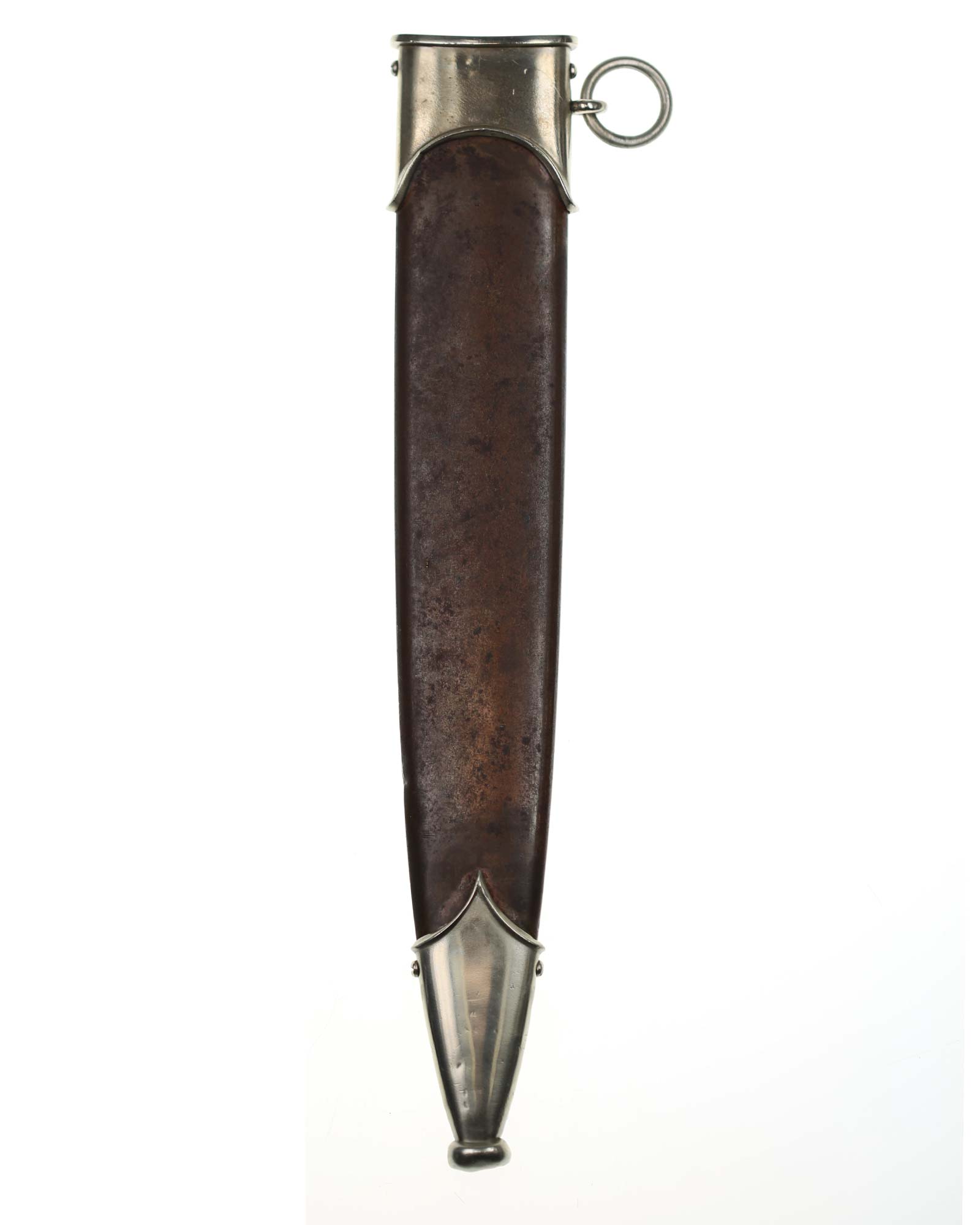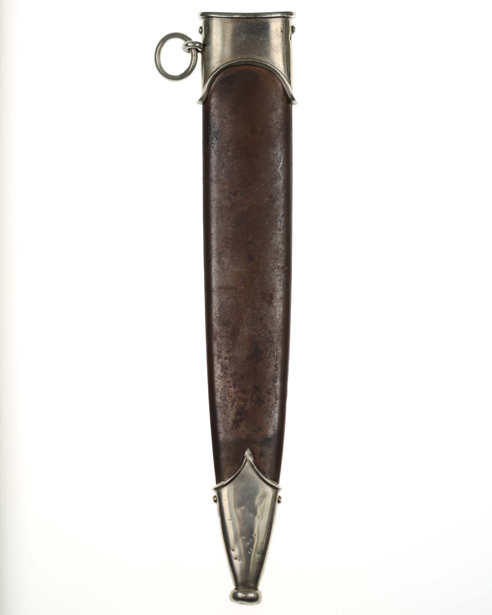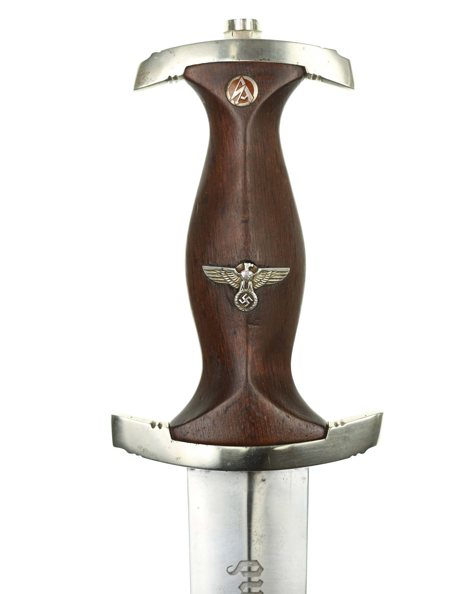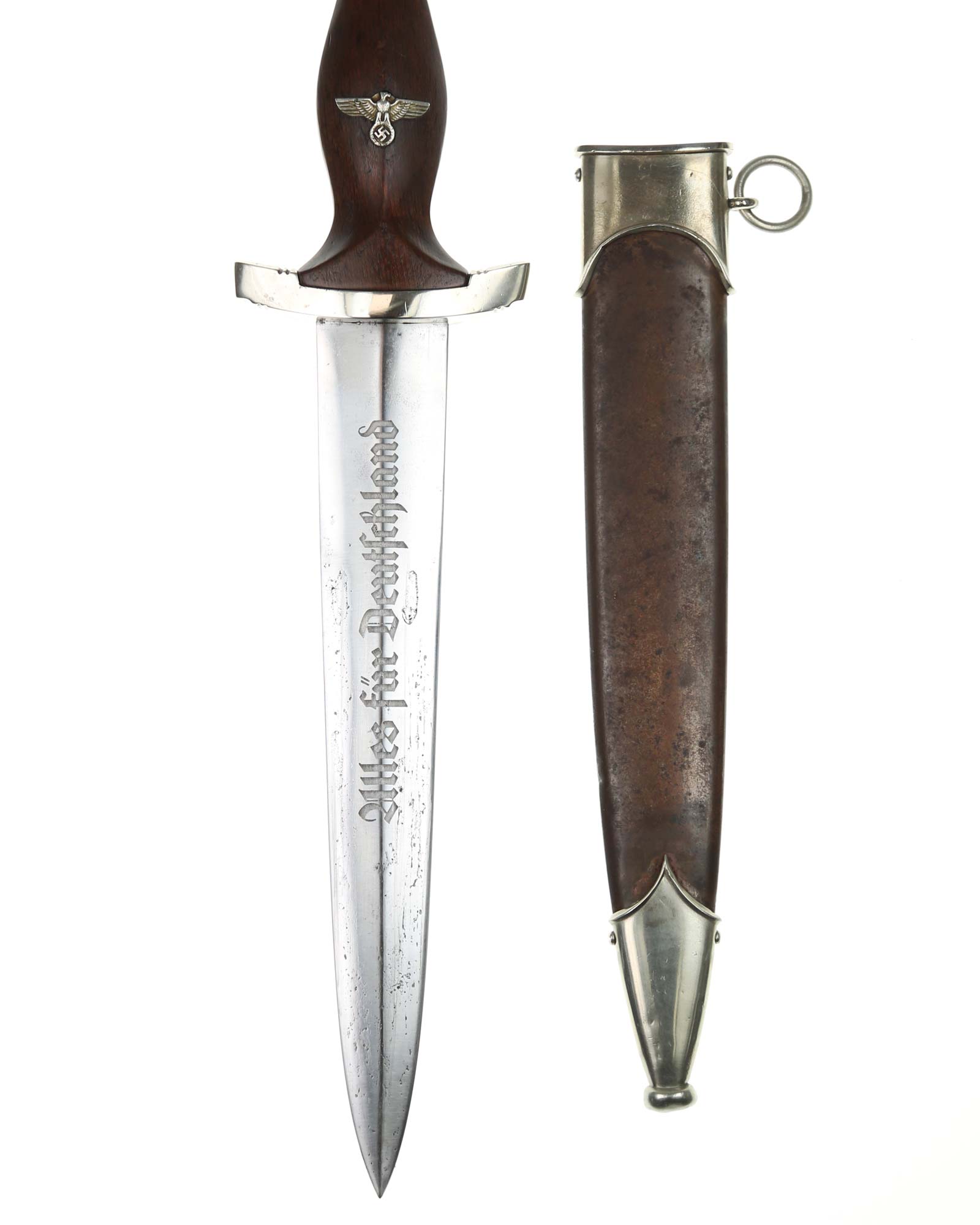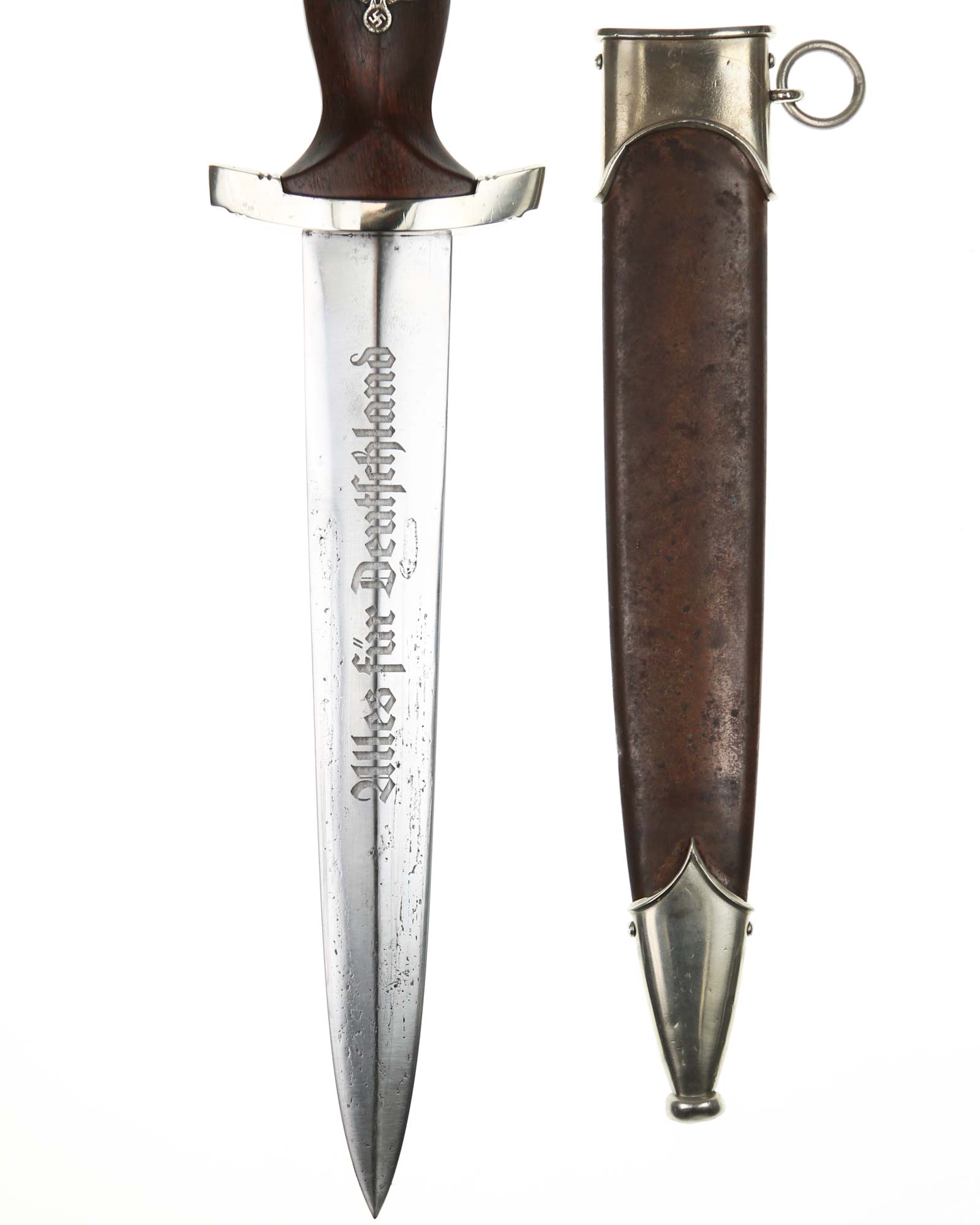 This SA [Sturmabteilung] Dagger in near mint condition. Model 1933. The total length is 37.0 cm. Early Nickel fittings. The Dagger has the maker mark on the blade: Carl Grah Solingen-Ohligs.