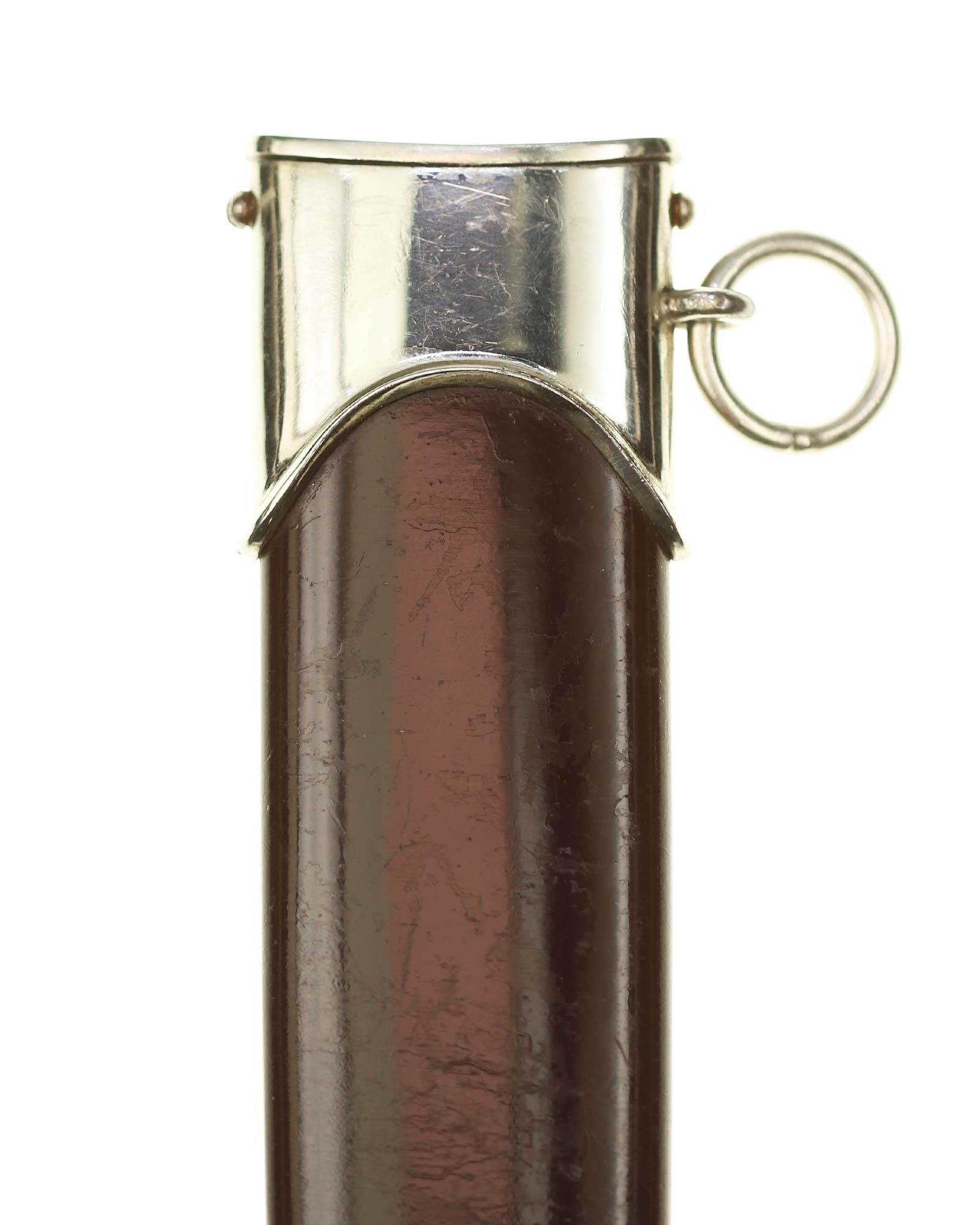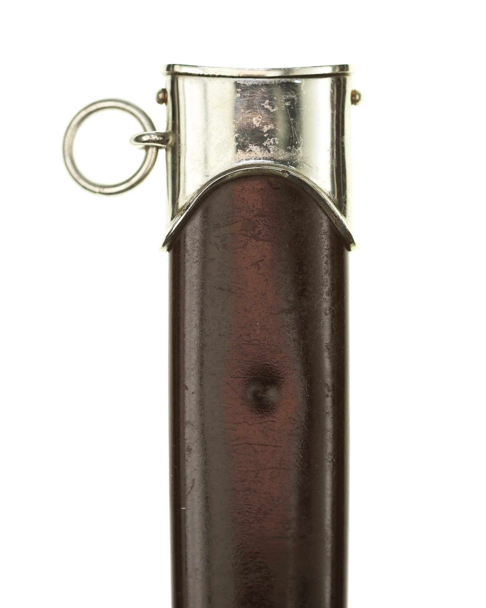 Scabbard: The scabbard shell one of the nicest you’ll see. The factory lacquer also looks to be about 98% intact, having only a few traces of carrying wear on the surfaces. The scabbard mounts are in choice condition through to the lower ball, retained by the four original and nickel screws.